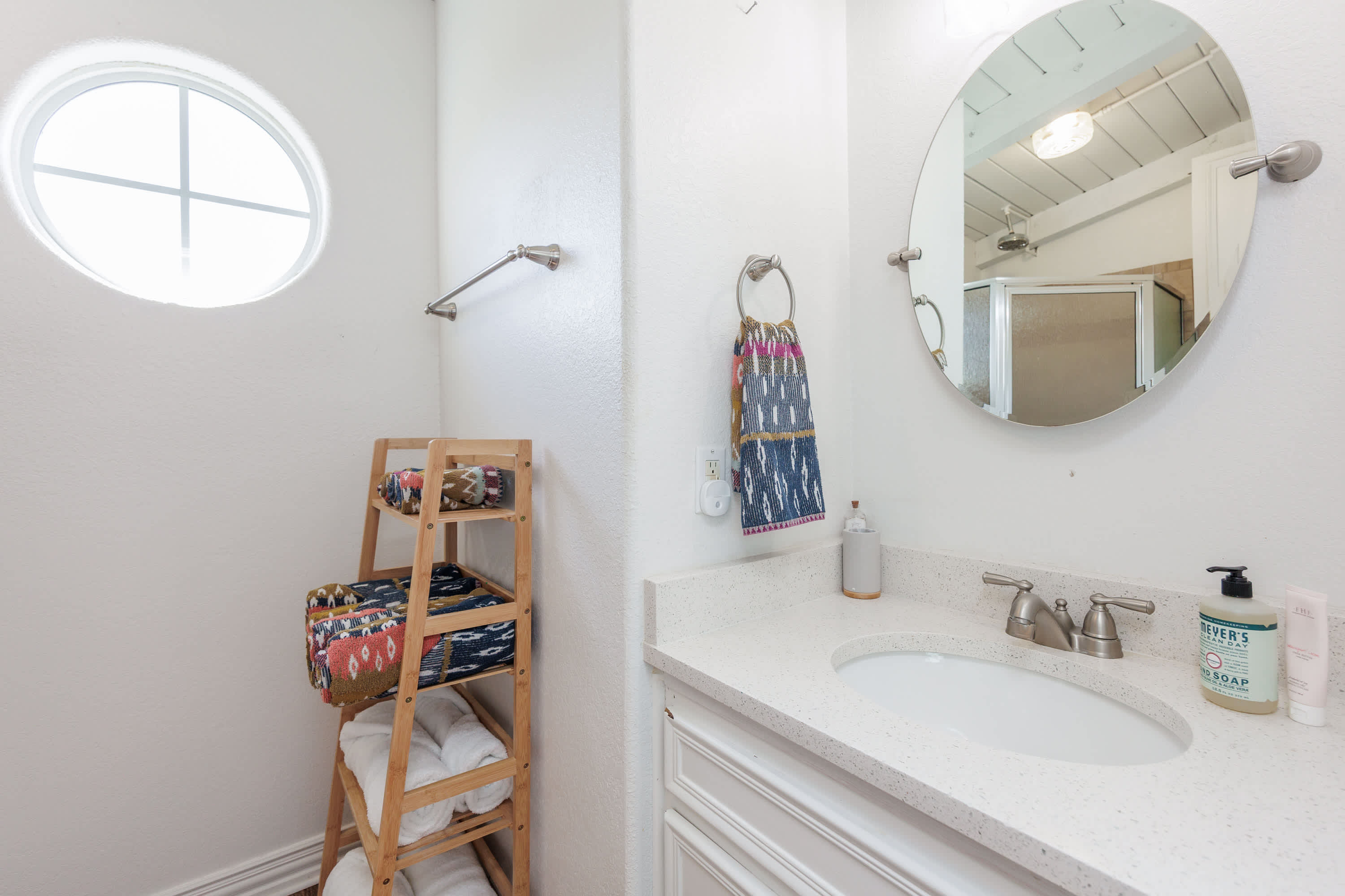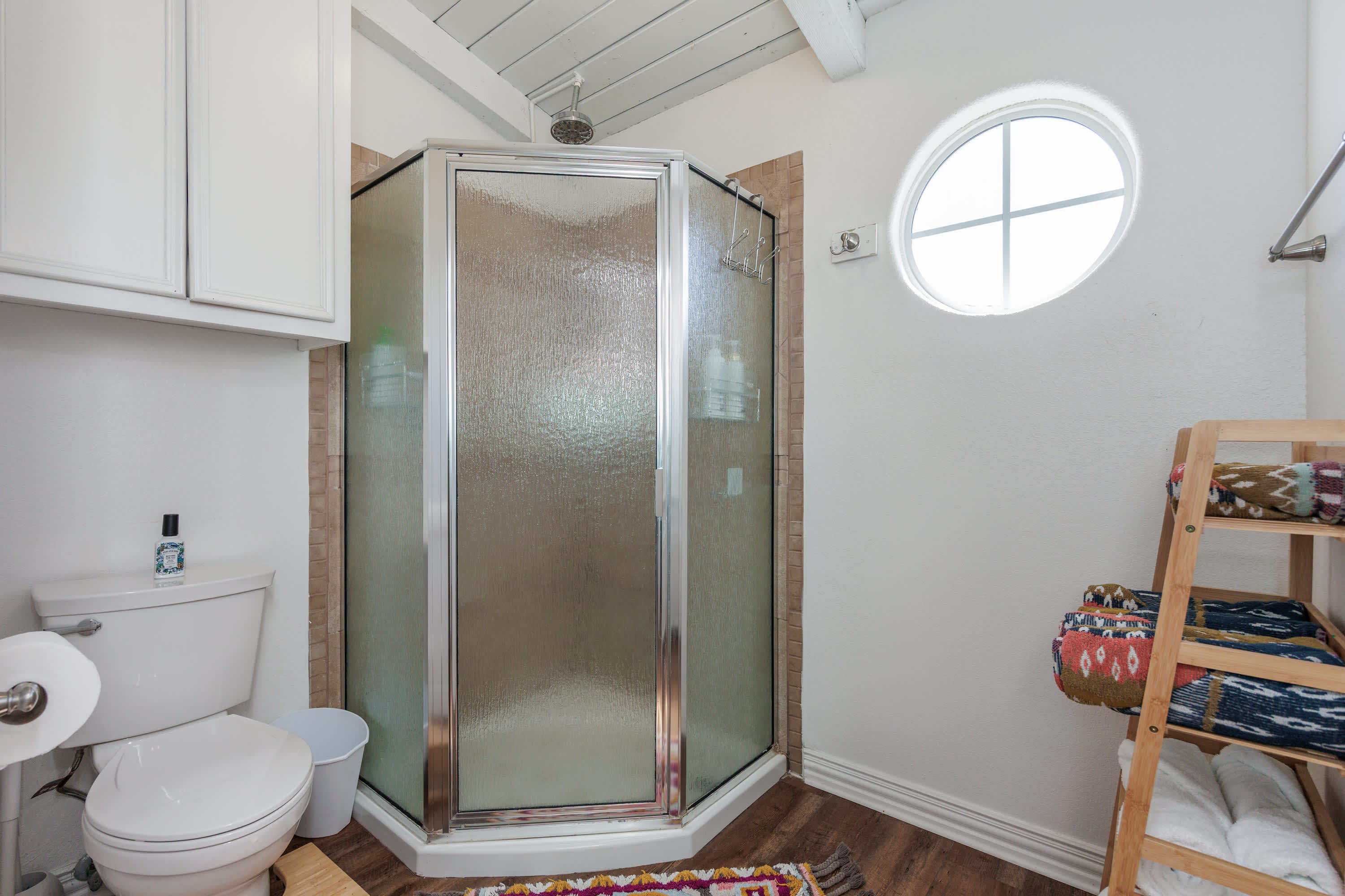 This home also includes a full bathroom with a single vanity and a walk-in shower.