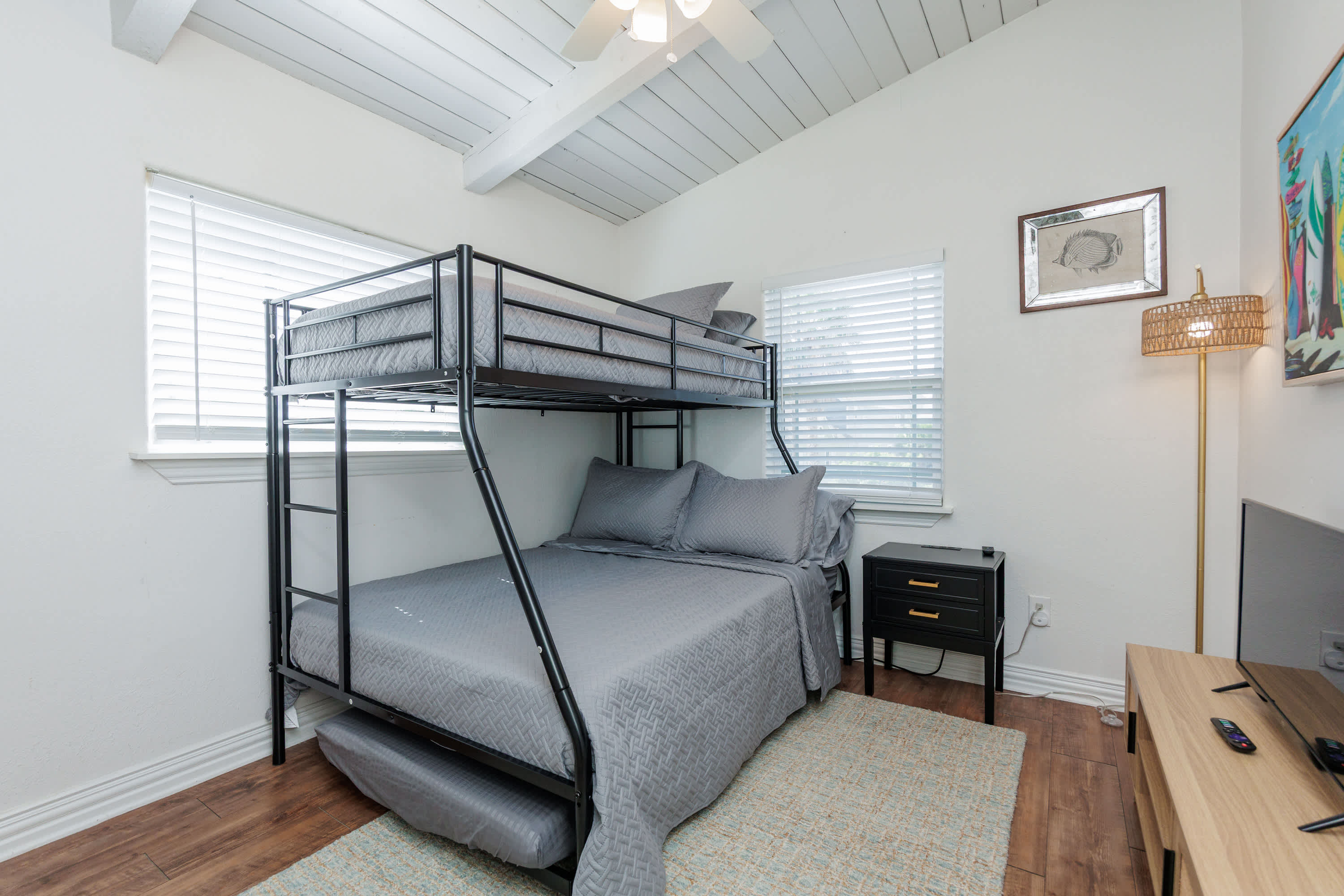 Bedroom #2 includes twin-over-full bunk beds and a twin size trundle bed.