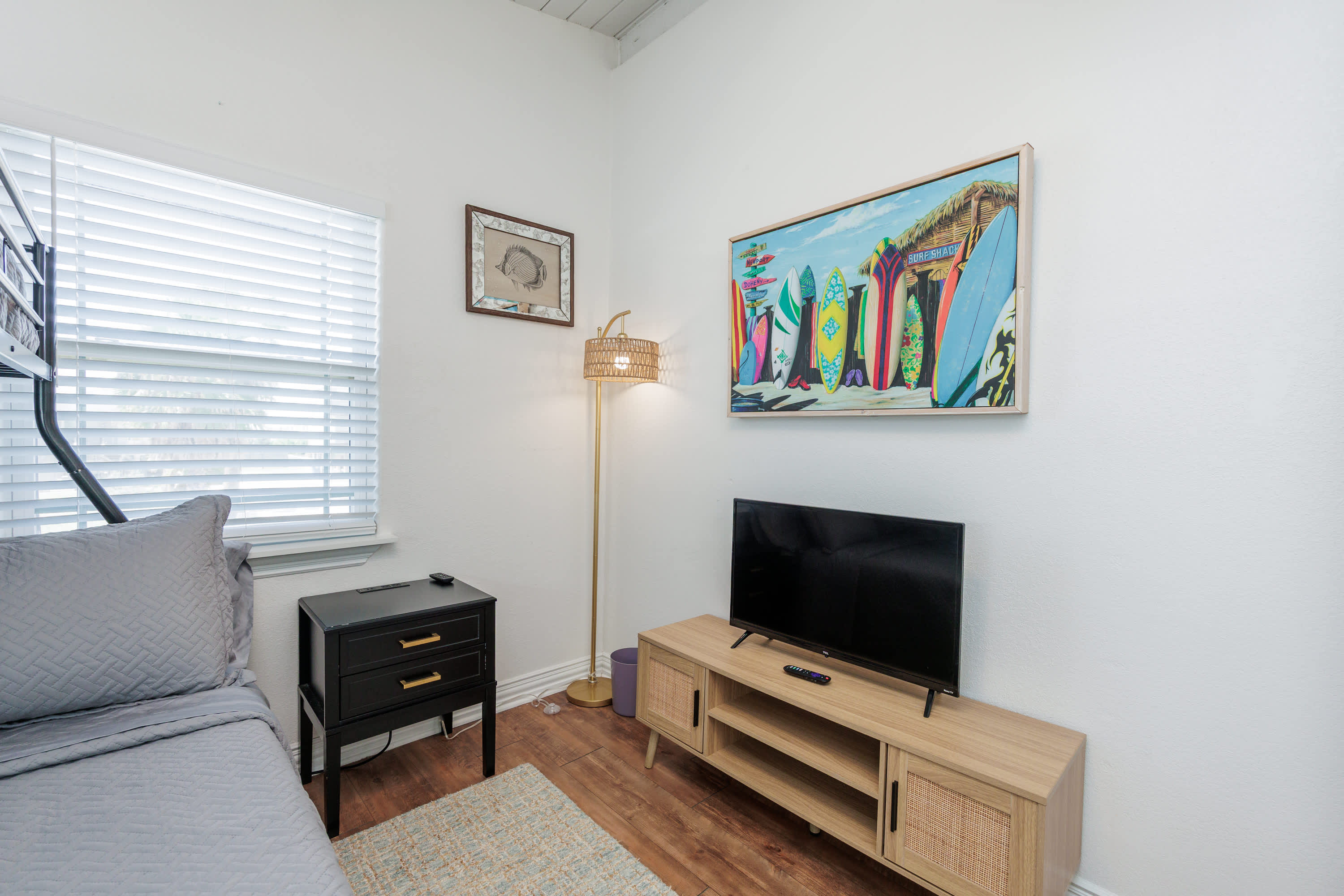 This home comfortably sleeps 6 guests between 2 private bedrooms and a sofa in the living room.