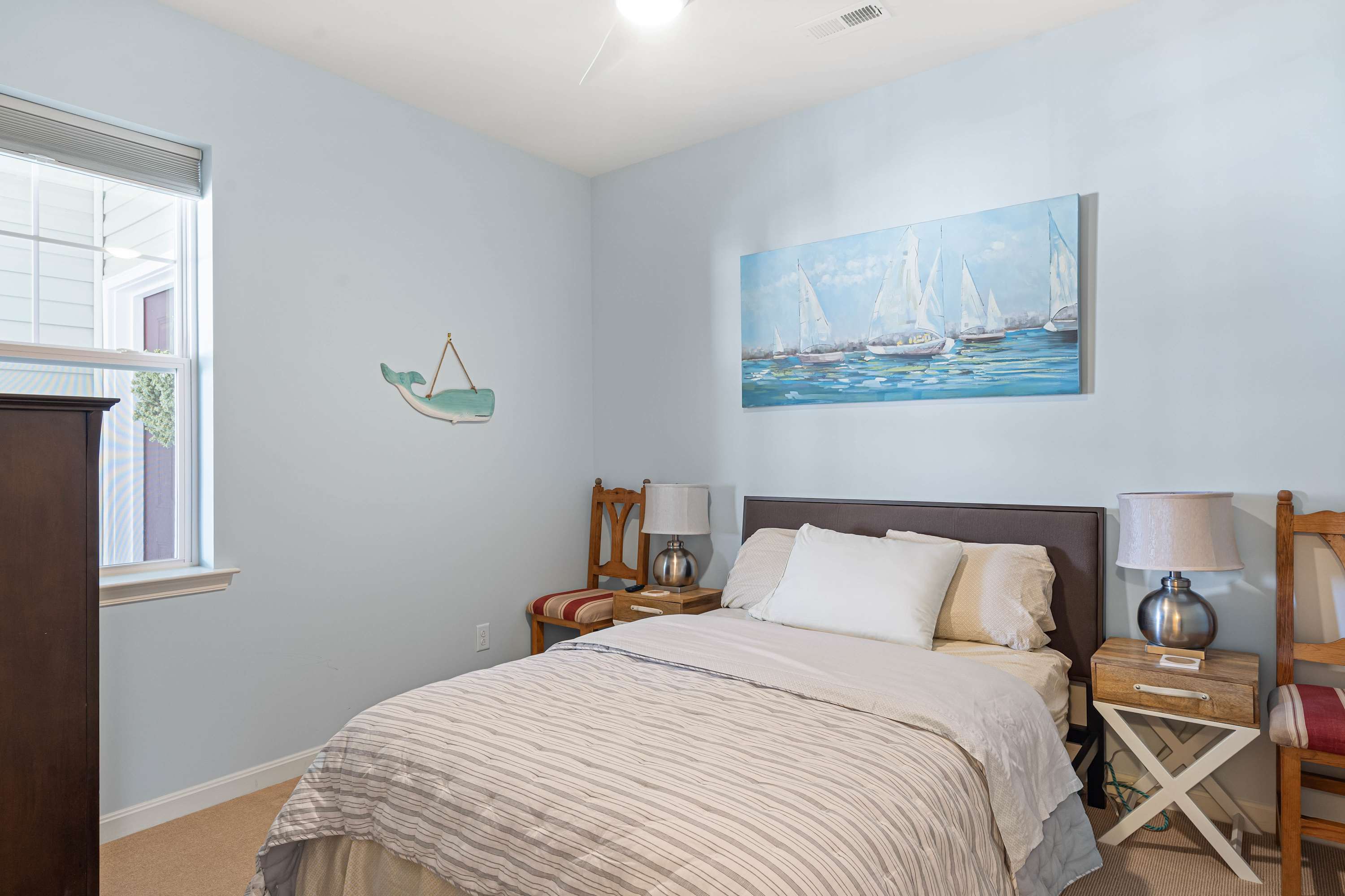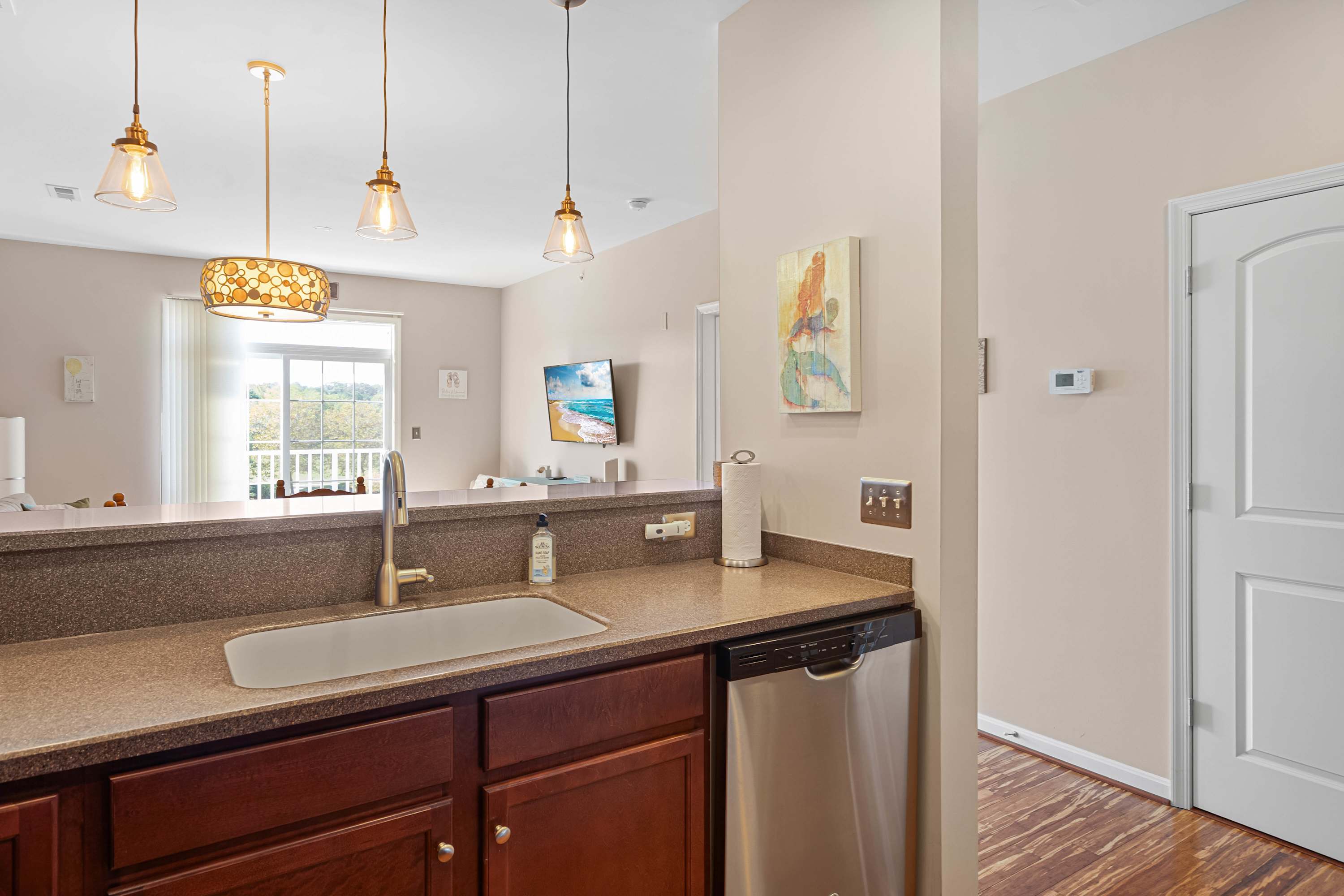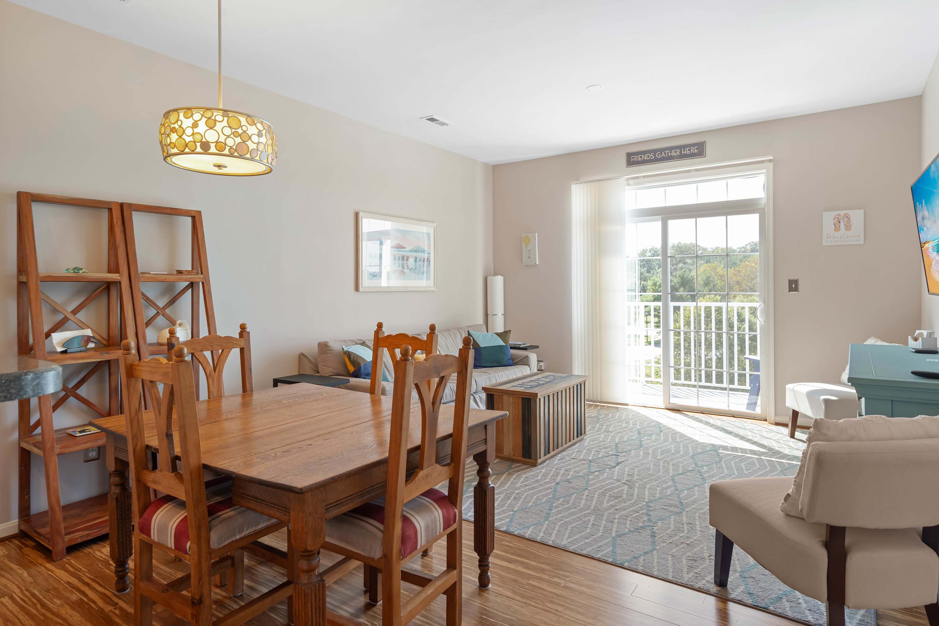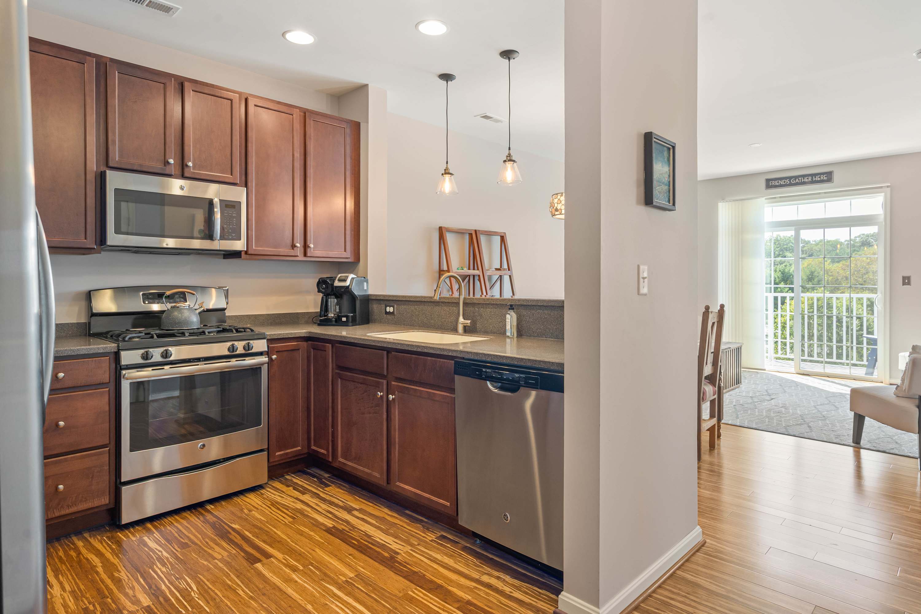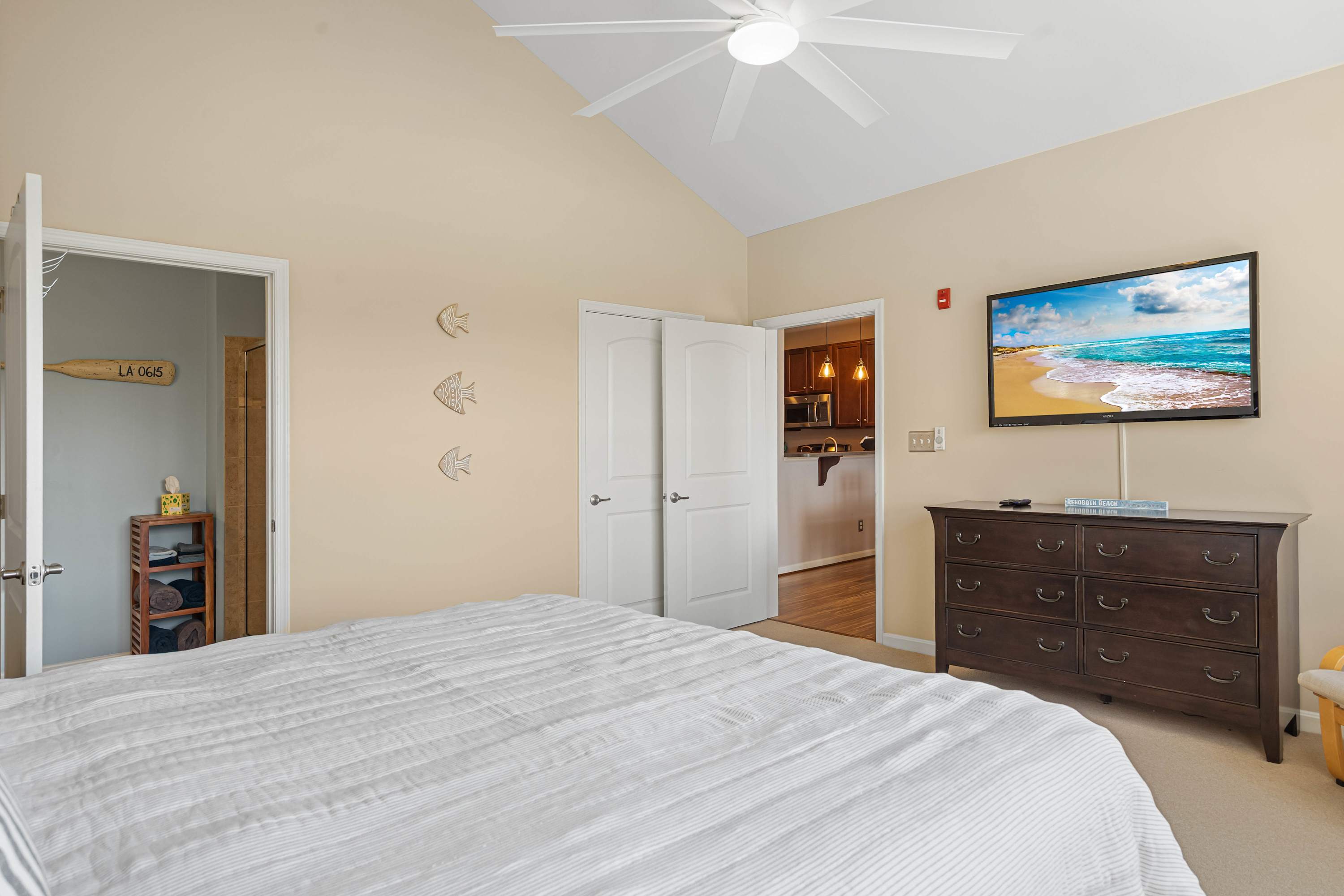 Step inside, and you’re welcomed into a warm, open layout that’s designed for both comfort and connection. The kitchen boasts sleek stainless steel appliances, and a Keurig and drip coffee maker—ideal for morning coffee or casual bites. Just steps away, the dining area with a table for four flows seamlessly into the living room, where a cozy couch and two chairs invite you to gather around the wall-mounted smart TV. Large sliding doors open onto a private deck, creating the perfect space to unwind outdoors and soak up the fresh coastal air. Grande at Canal 14 combines the ease of resort living with the charm of a beach retreat—making it the perfect base for your Rehoboth getaway.