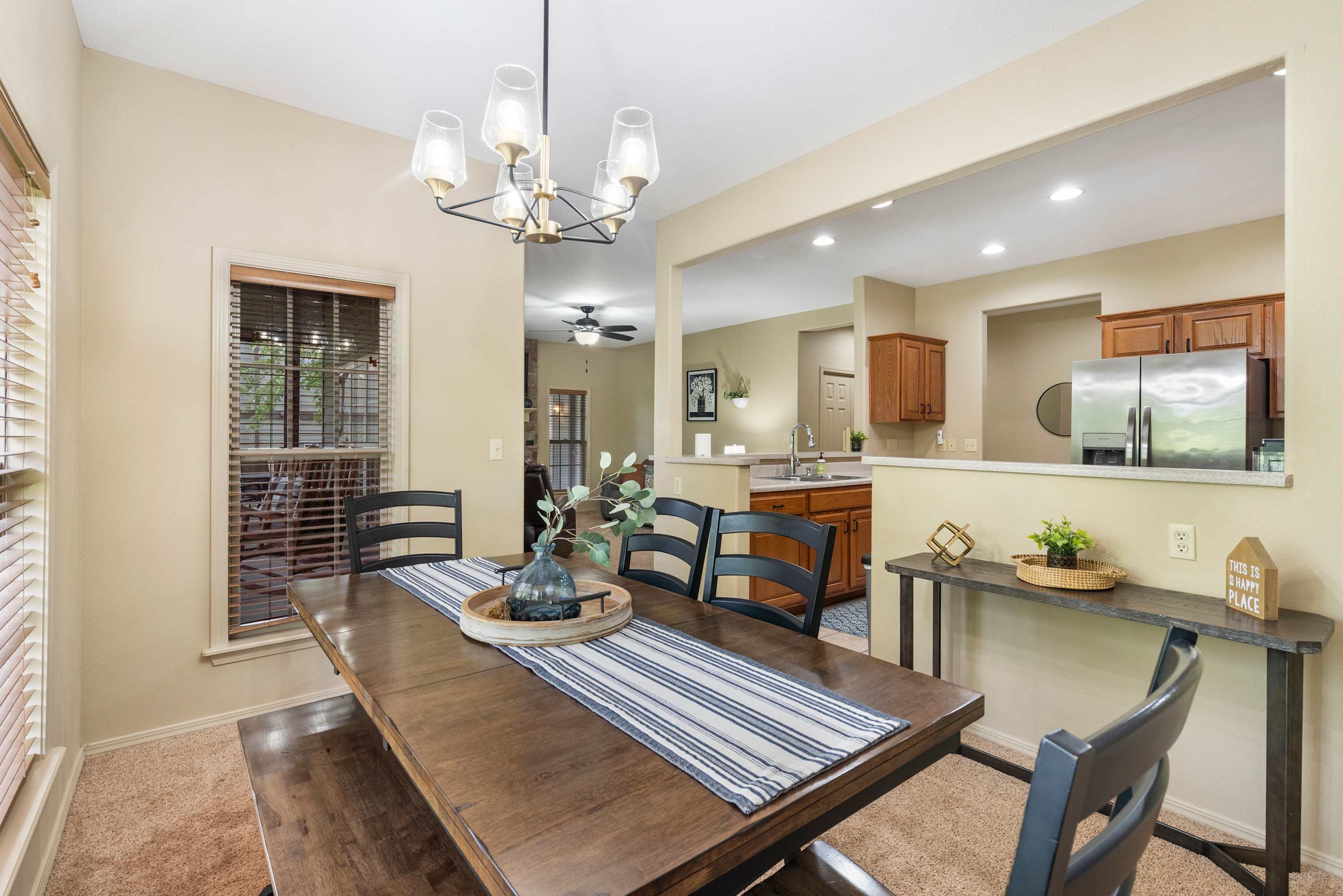 After a day of travel, step inside your retreat and settle into the cozy living room, where a plush couch, two recliners, a smart TV, and a decorative fireplace create the perfect place to unwind. The kitchen is fully equipped with both drip and Keurig coffee makers, stainless appliances, and counter seating for four, while the dining table for six invites you to share meals and laughter together. Just beyond, the screened-in patio is a true highlight—gather around the table for six, sip morning coffee in the rocking chairs, and enjoy the fresh Ozark air without leaving the comfort of your home.