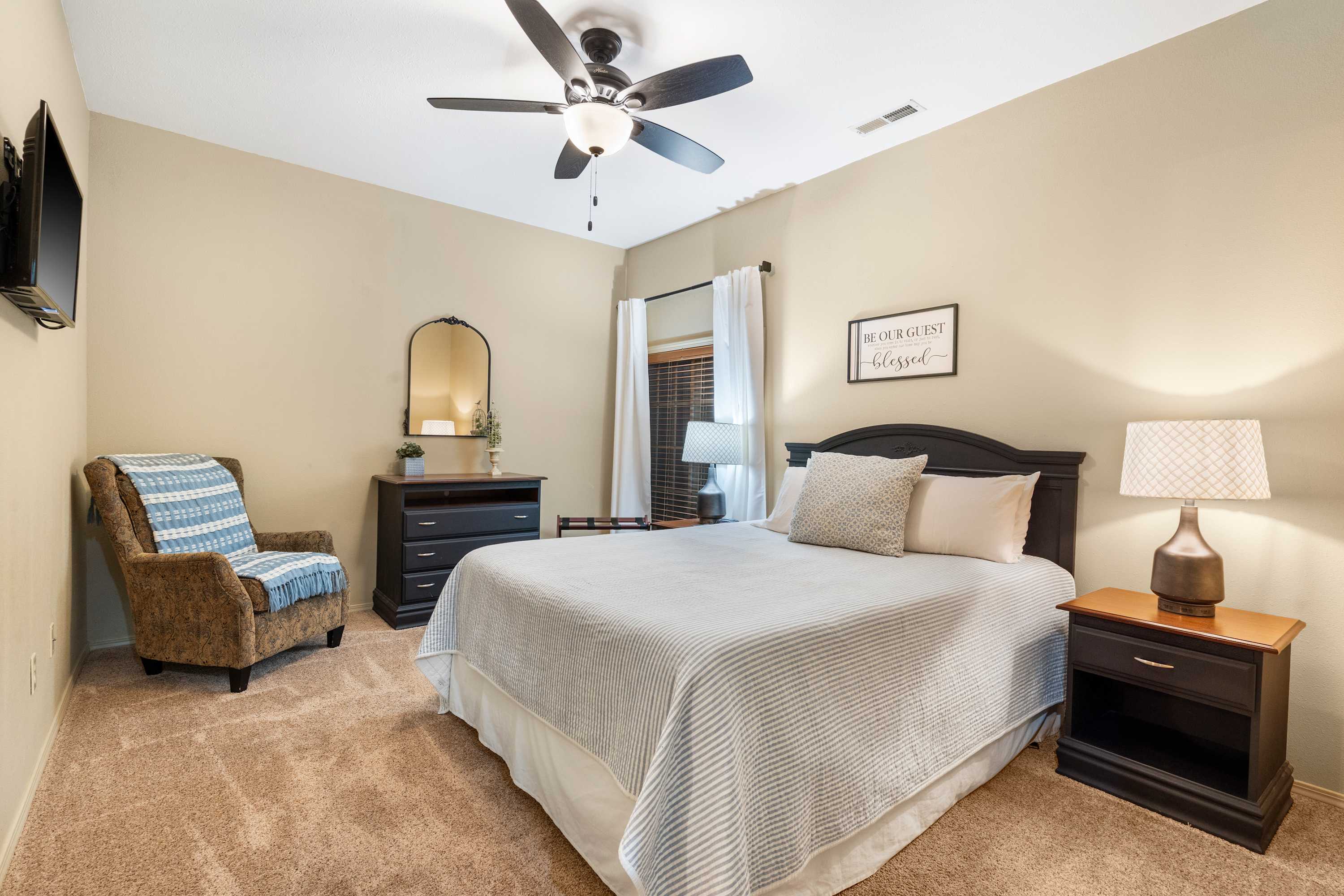 This home comfortably sleeps 6 guests between 2 private bedrooms and a queen-size sleeper sofa in the living room.