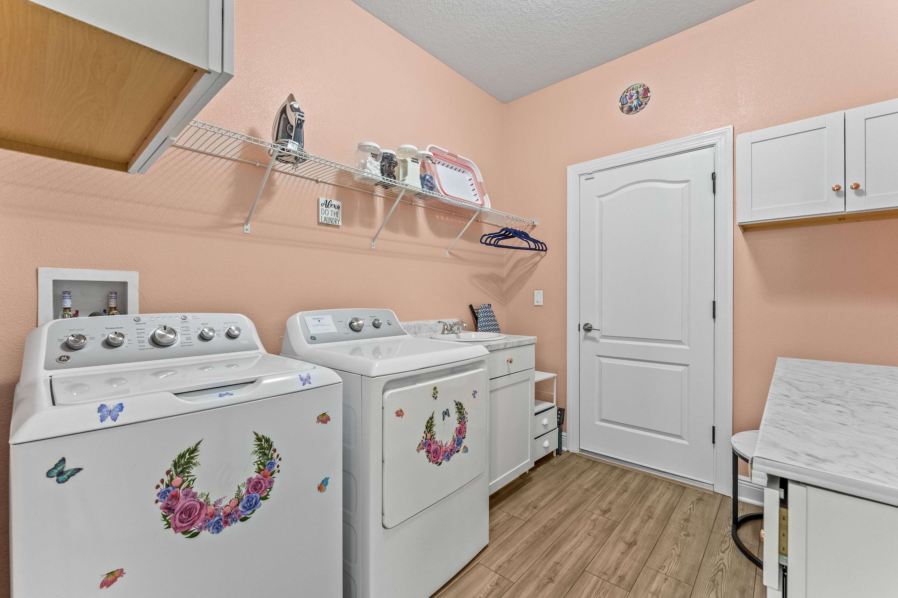 • Washer and dryer in home.