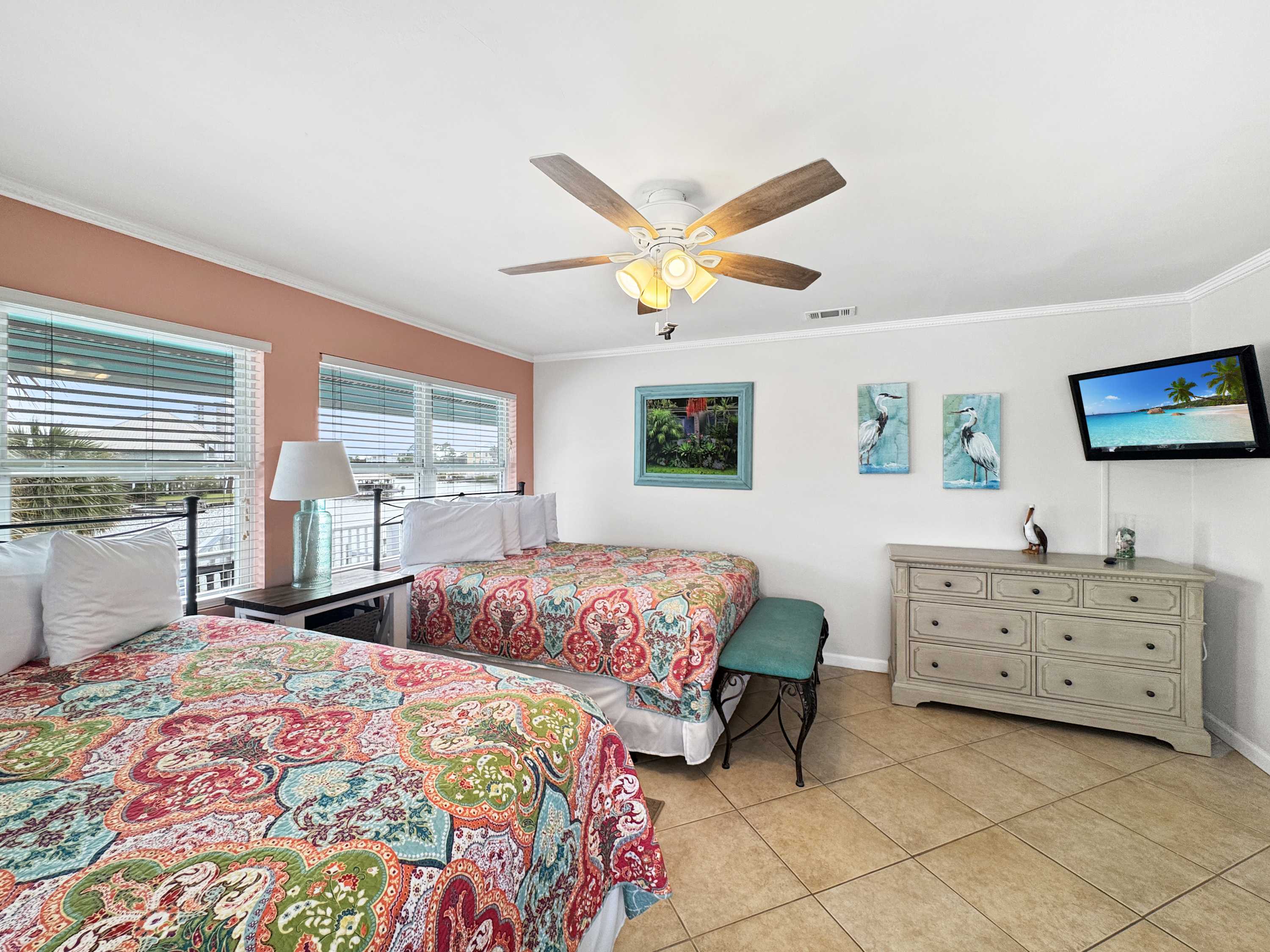 Bedroom #2 includes 2 queen size beds and a smart TV.