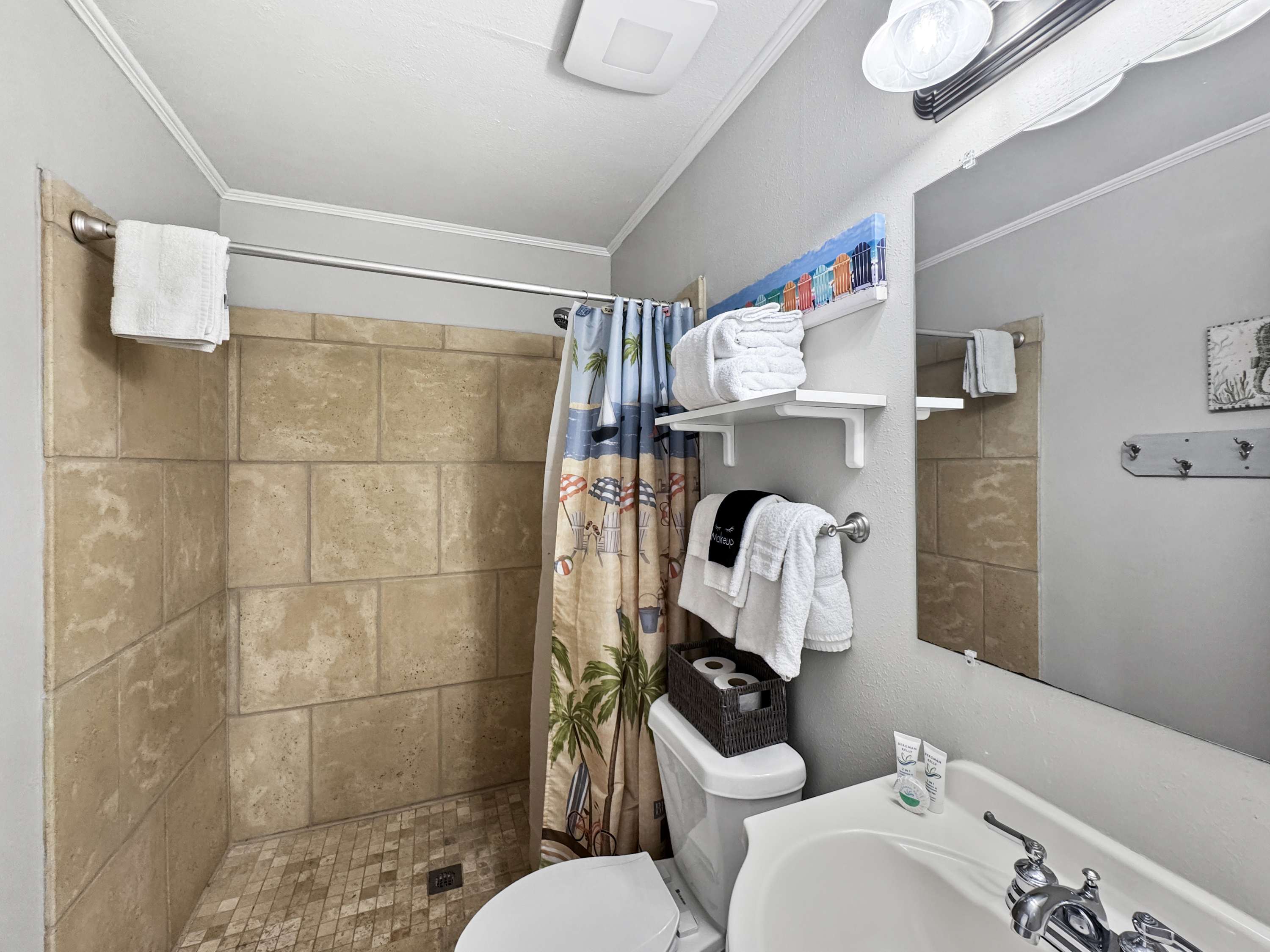 The home also includes an additional full bathroom with a single vanity and a walk-in shower.