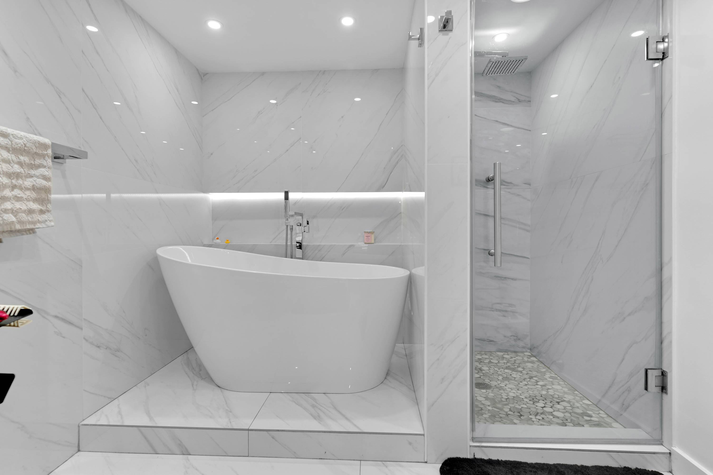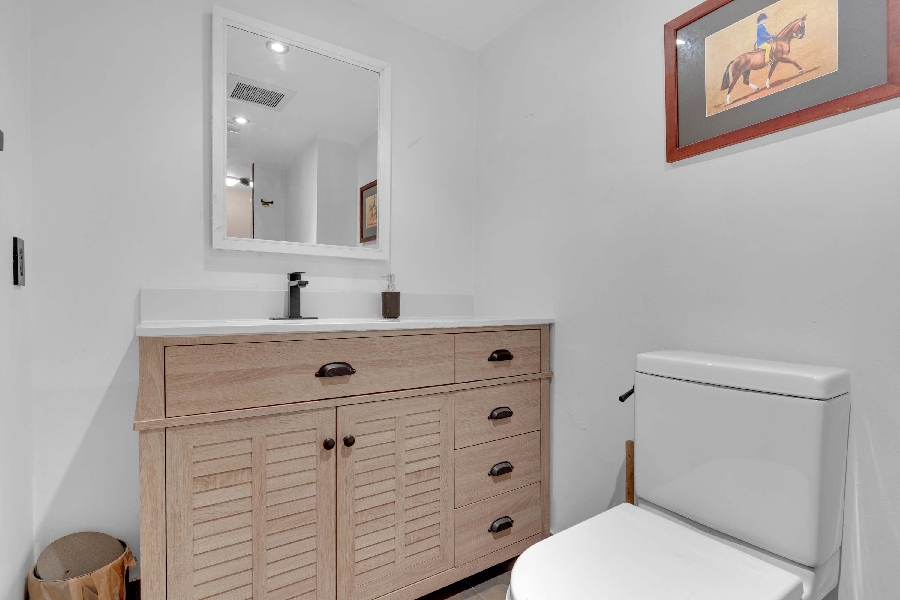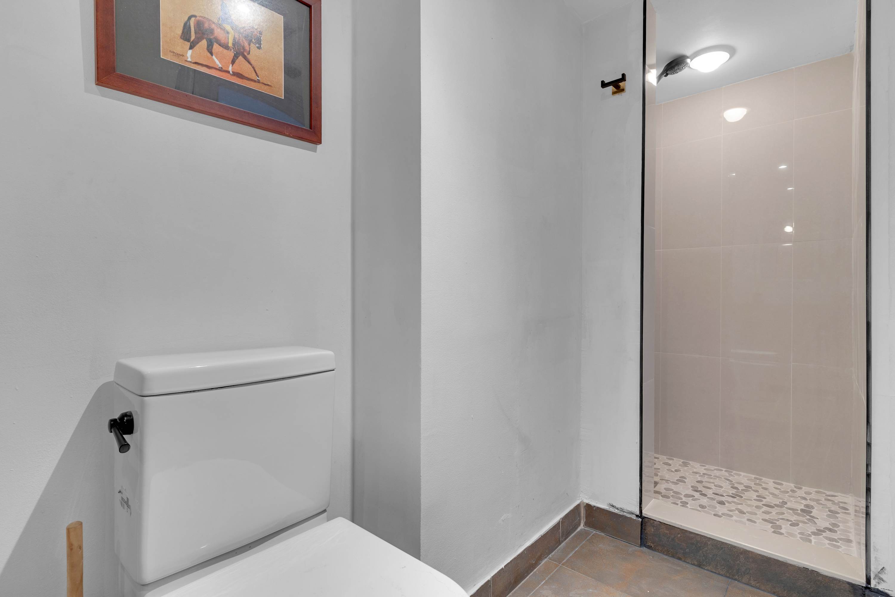 This home also includes an additional guest bathroom with a single vanity and a walk-in shower.
