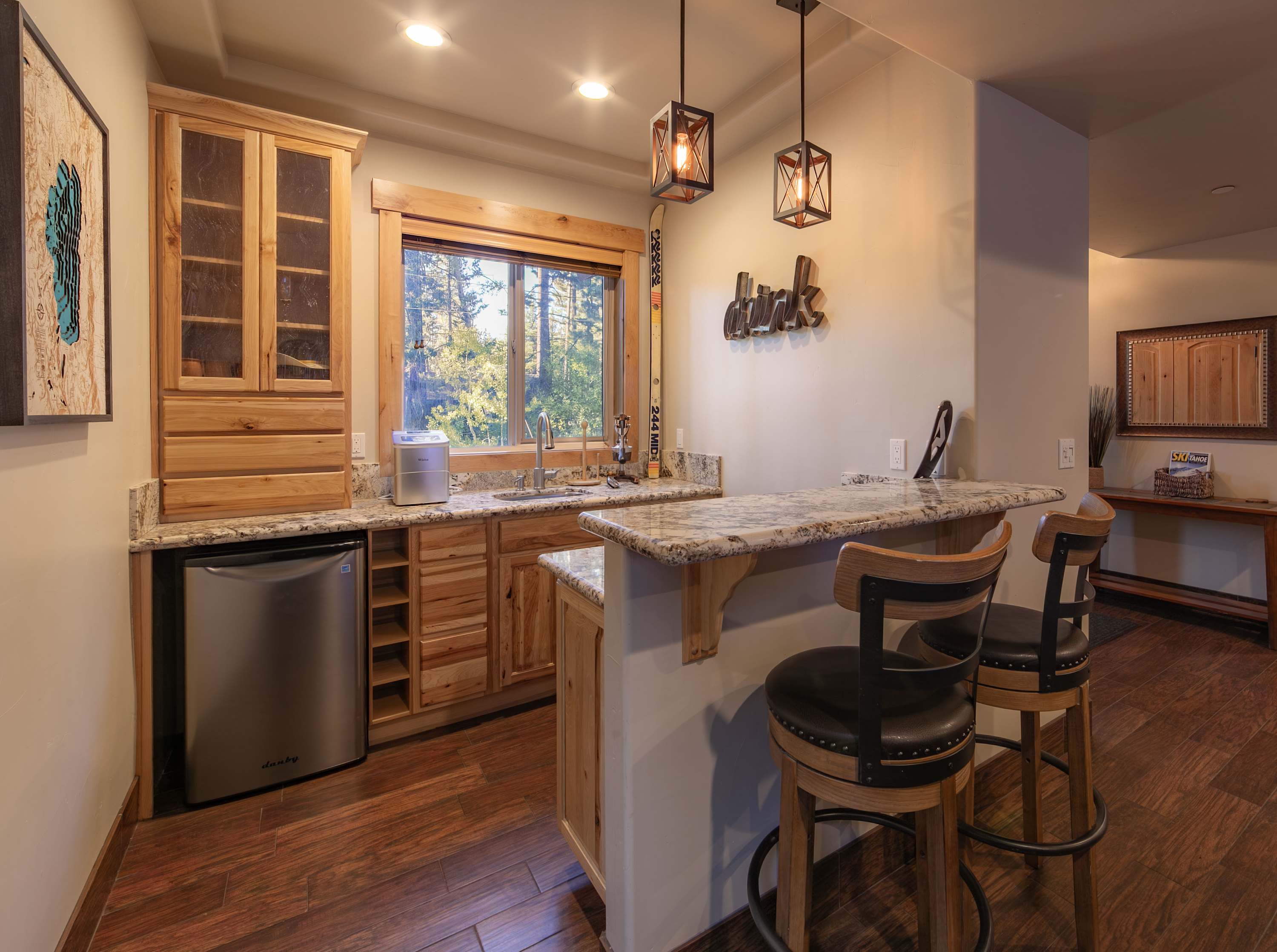 After a day on the slopes or lake, step out onto the back deck to unwind in the bubbling hot tub beneath the stars, or fire up the grill on the additional patio and dine outdoors at the table for six. Every detail of this home invites you to relax, reconnect, and make unforgettable Tahoe memories.