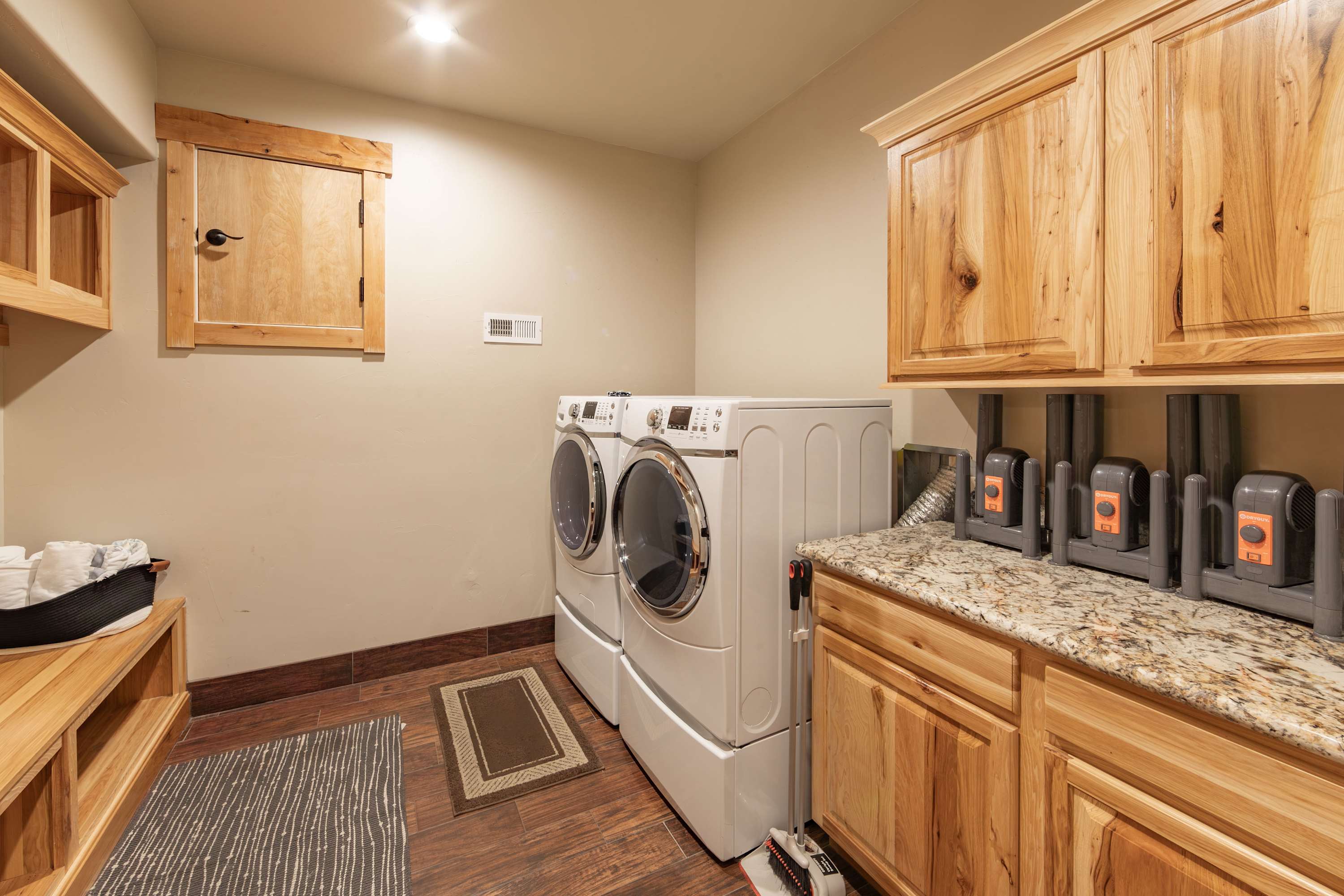 • Washer and dryer in home.