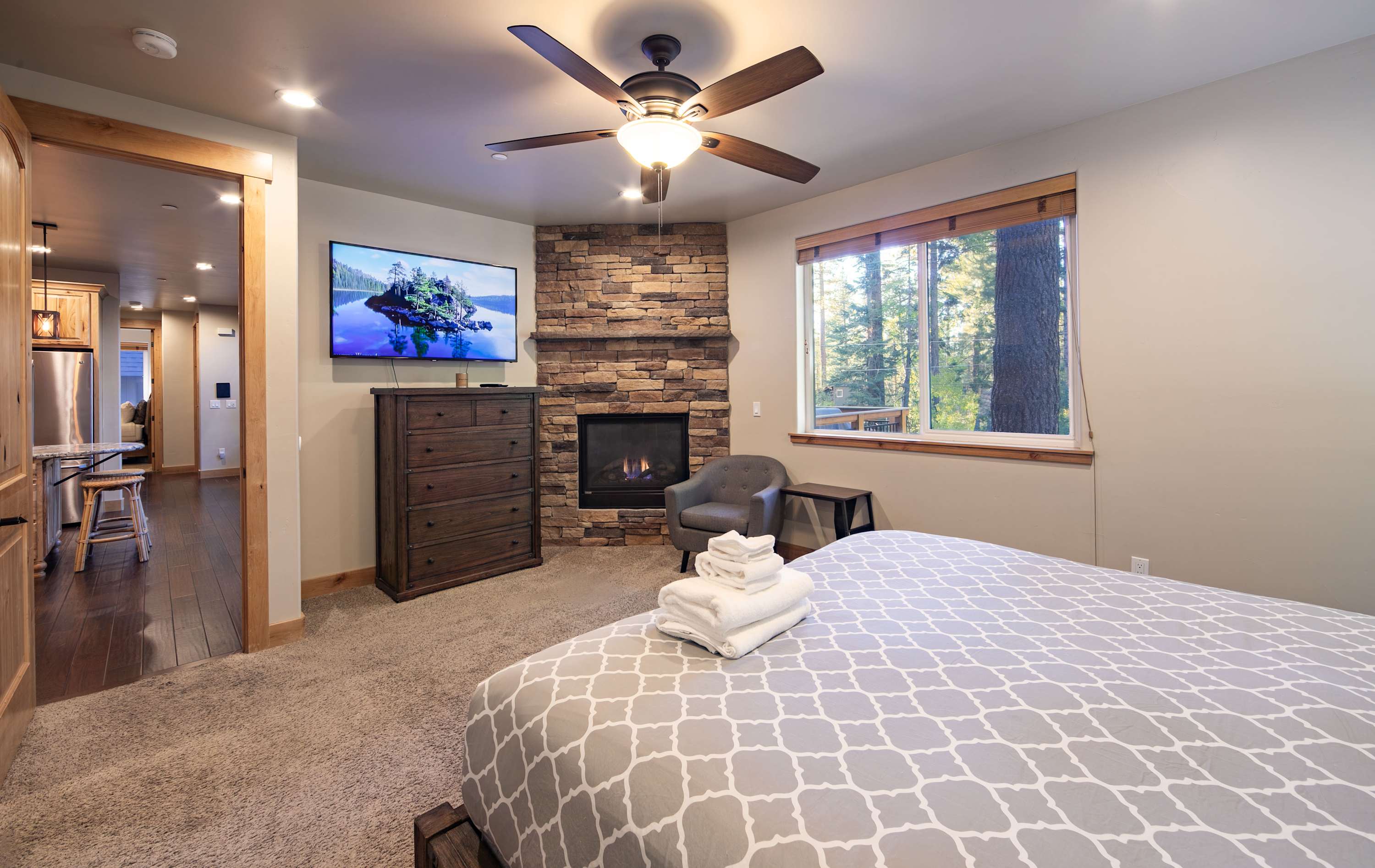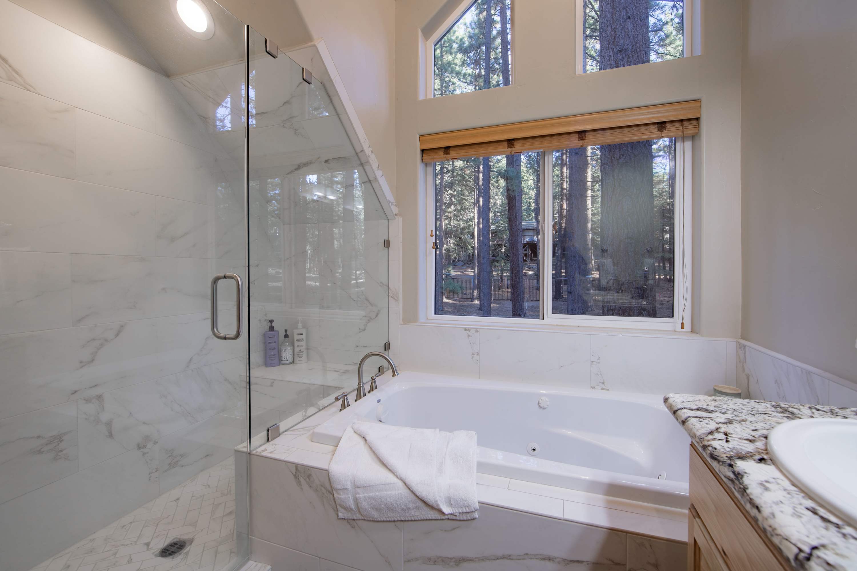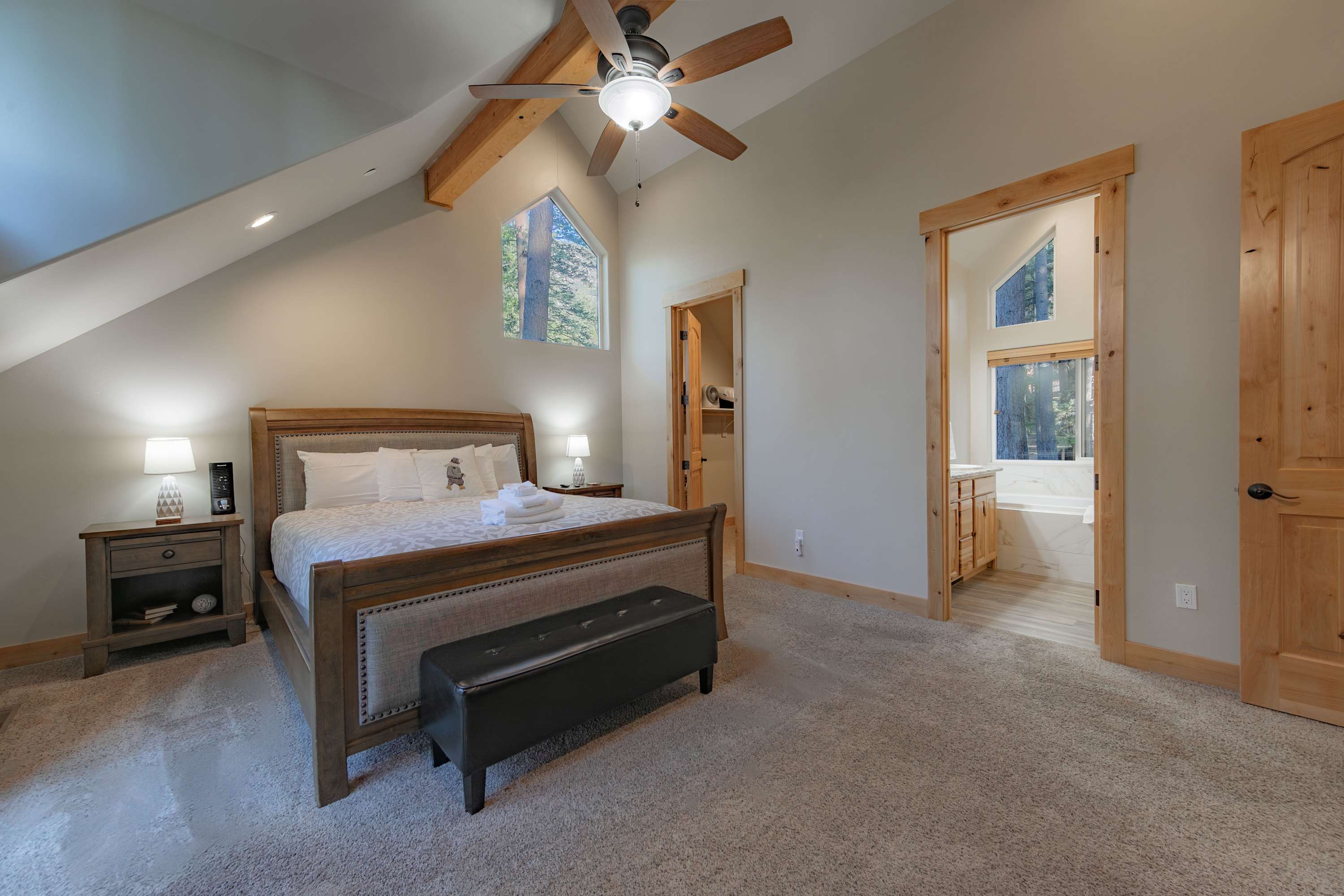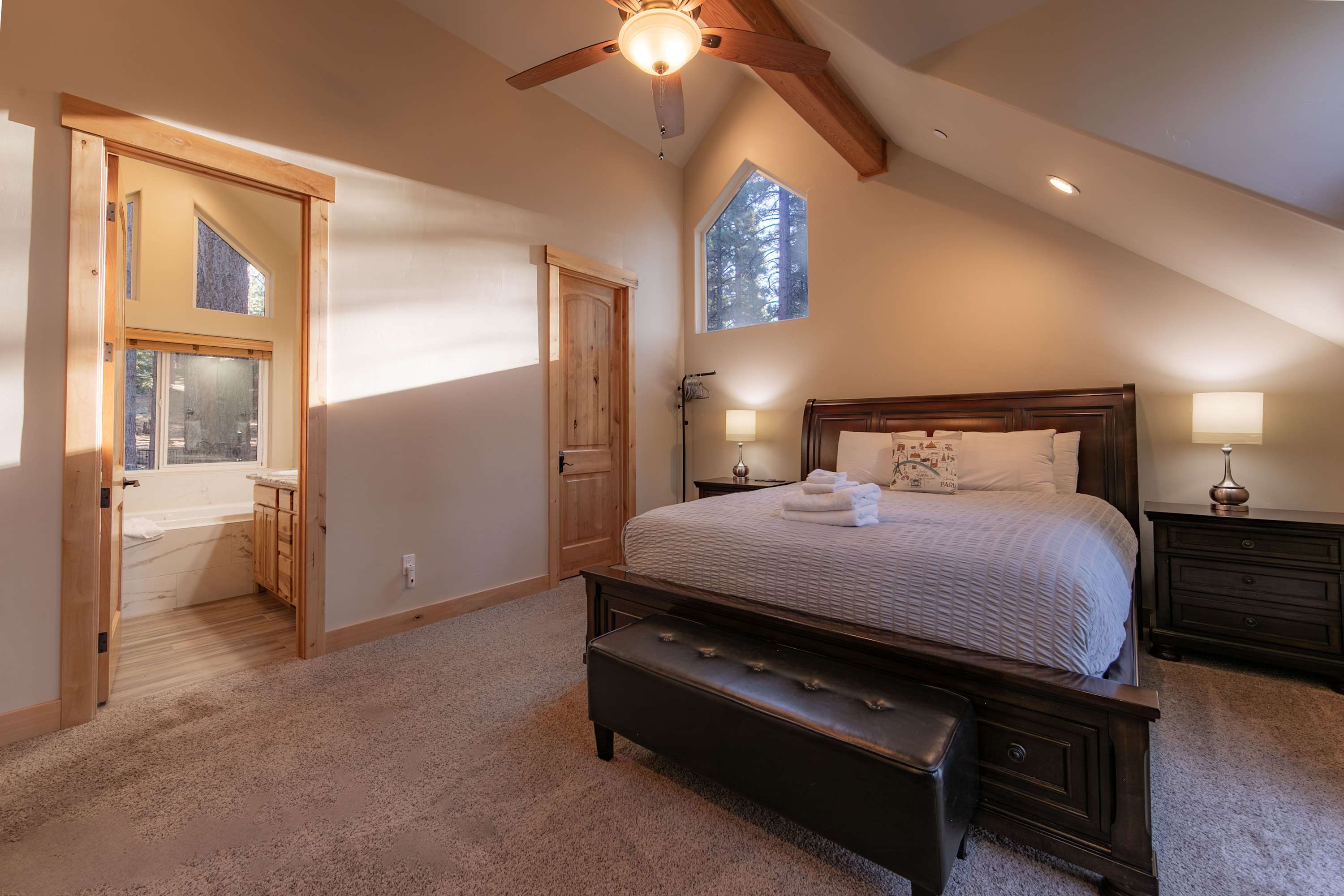 Although this stay puts you in the heart of Tahoe ski country, there is a wide spread of activities to enjoy year-round in the surrounding areas. Miles of both paved and dirt trails for hiking and biking of all levels are nearby. Head out to popular beaches or find a private cove with unforgettable swimming. From boating and water sports to fishing and kayaking, there’s no shortage of activities on the water. When you’re not hitting the slopes or exploring the lake, Tahoe’s entertainment scene is waiting to impress. Local art galleries, shopping boutiques, live entertainment, iconic food spots, and bustling nightlife fill the vibrant communities that surround the lake.