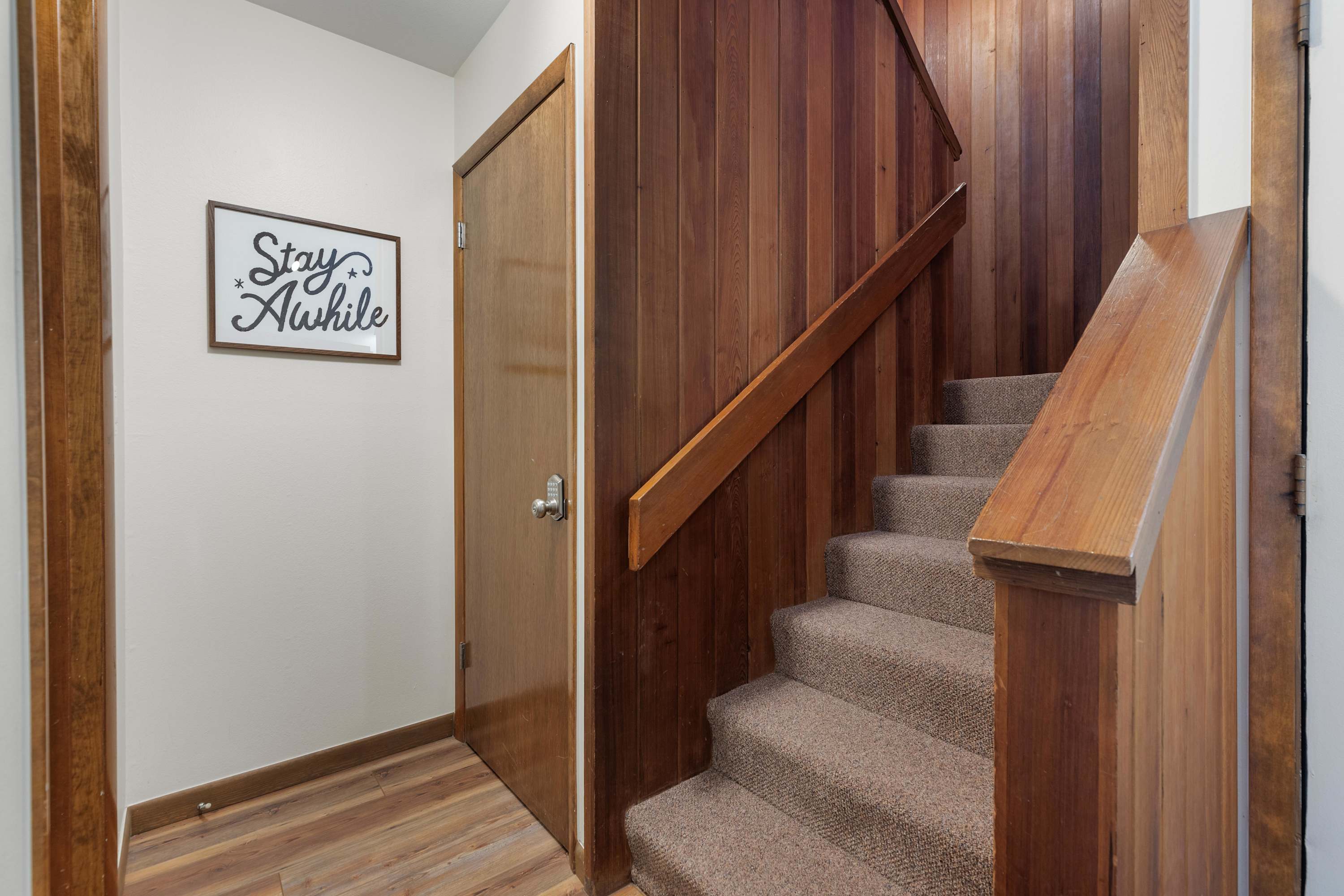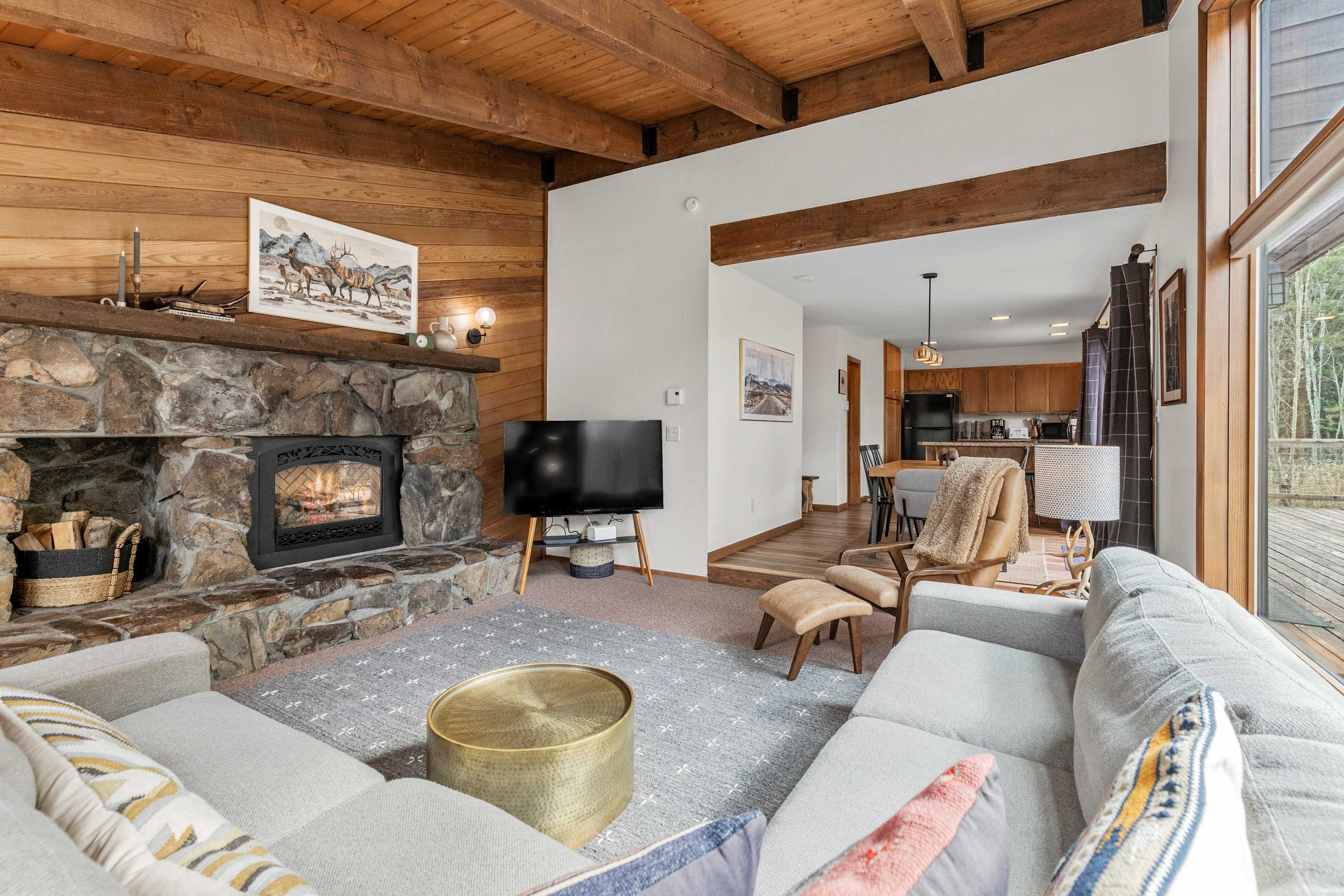 Settle into a comfortable, family-friendly mountain retreat with room for everyone to relax. Upstairs, all three bedrooms feature vaulted ceilings for an airy feel, and the primary suite includes an ensuite bathroom with a tub.