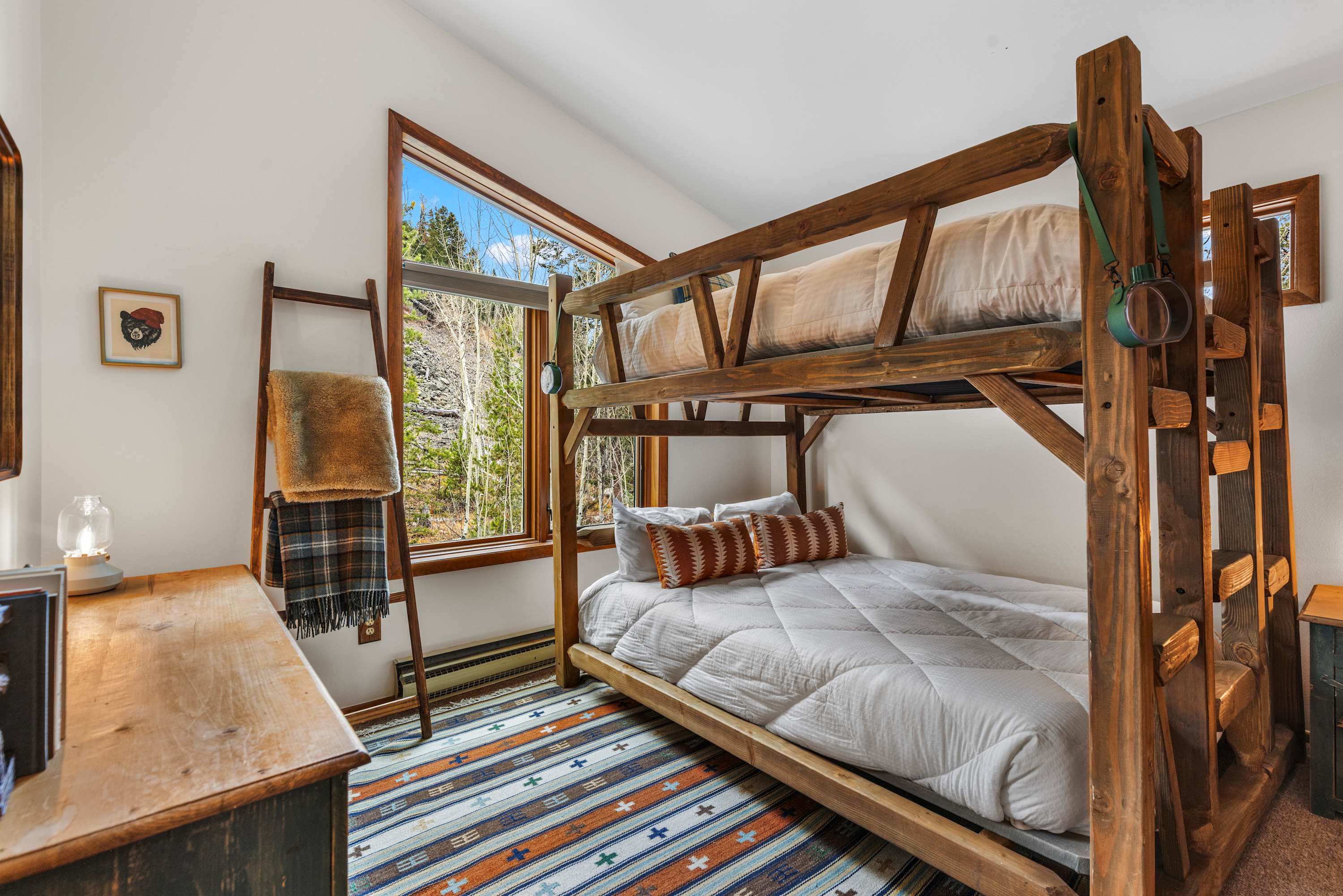 • Bedroom 3 (Upstairs): Two queen beds in a bunk configuration.