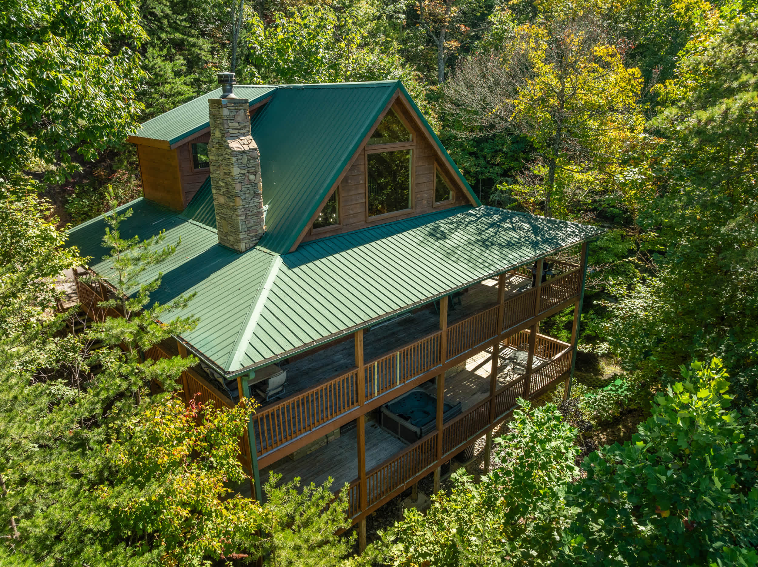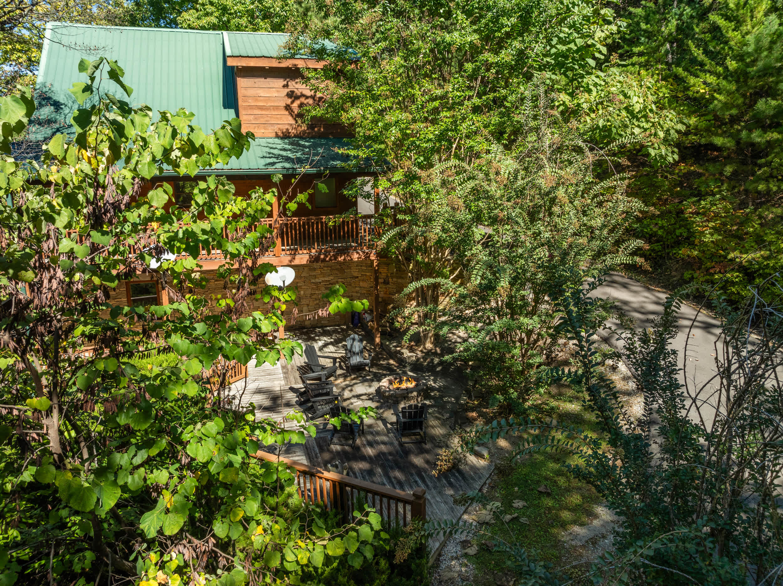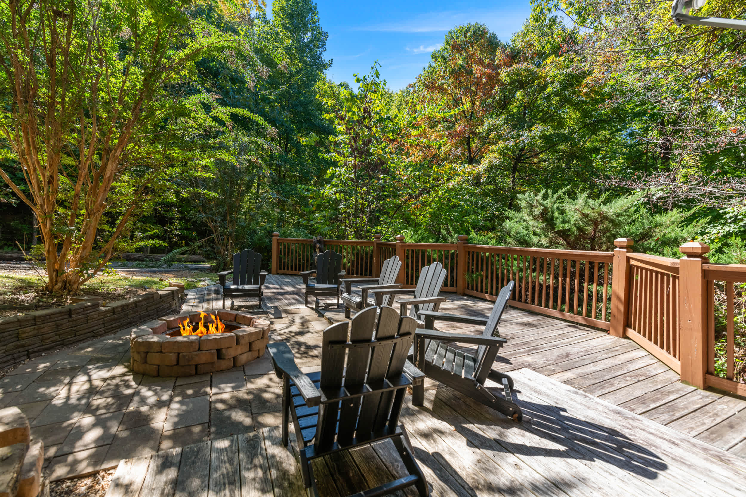 • Outdoor amenities: Multi-level decks with ceiling fans, outdoor dining, gas grill, fire pit, and private hot tub.