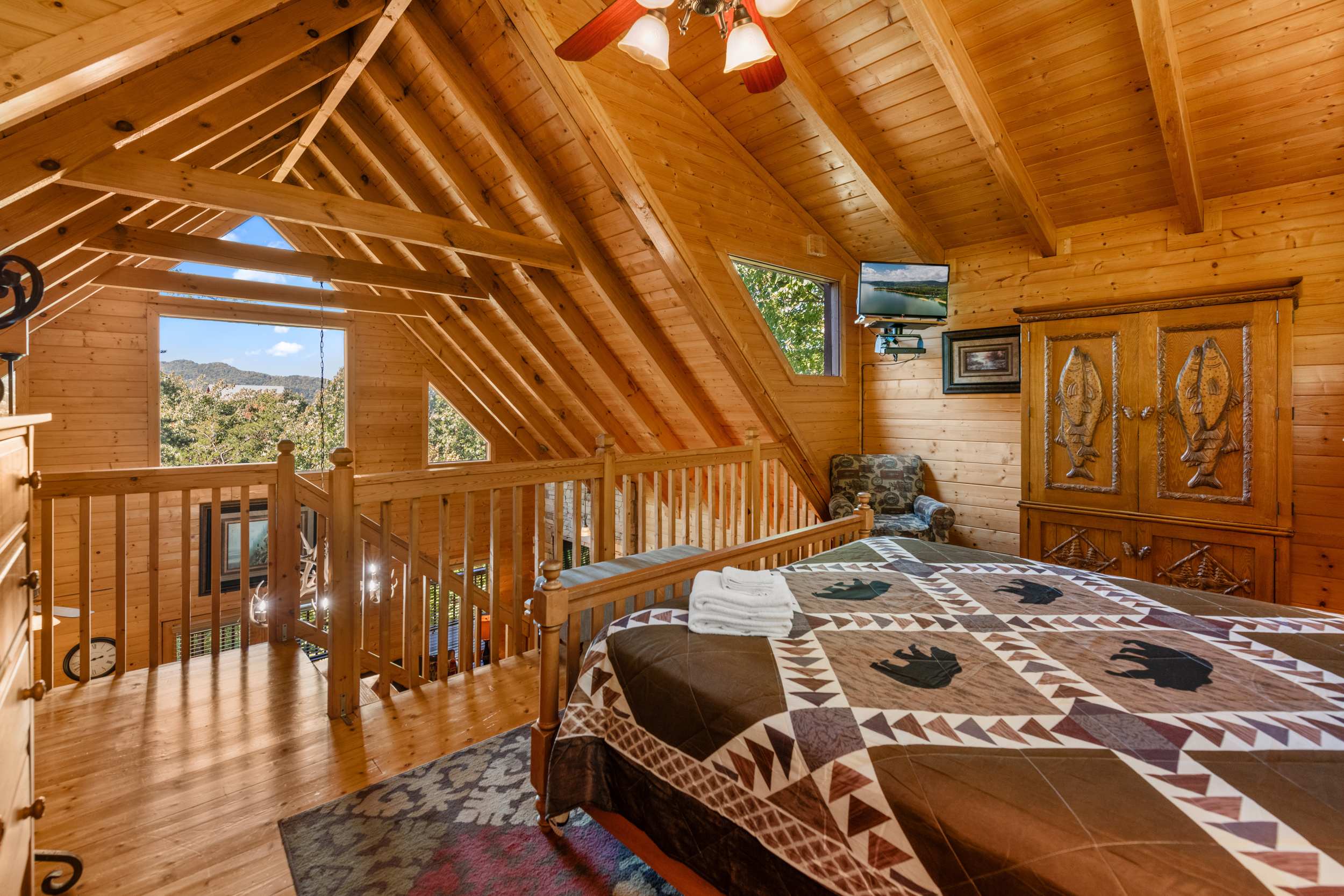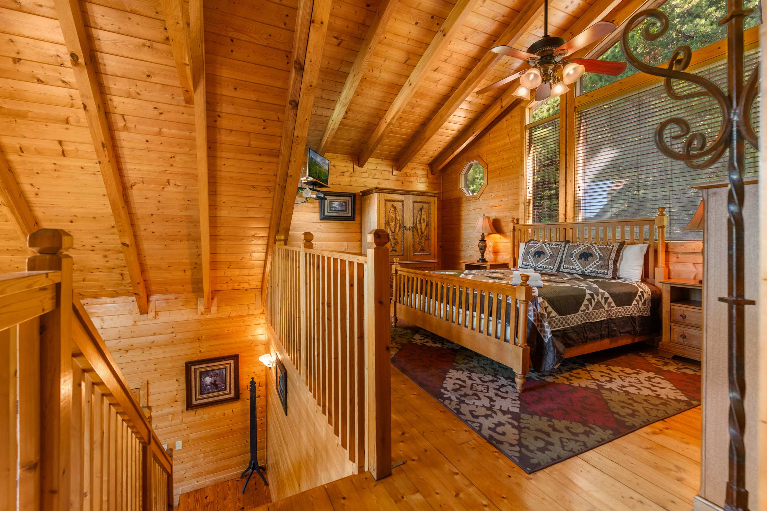 • Loft Bedroom: King bed, smart TV, ensuite bathroom with standing shower