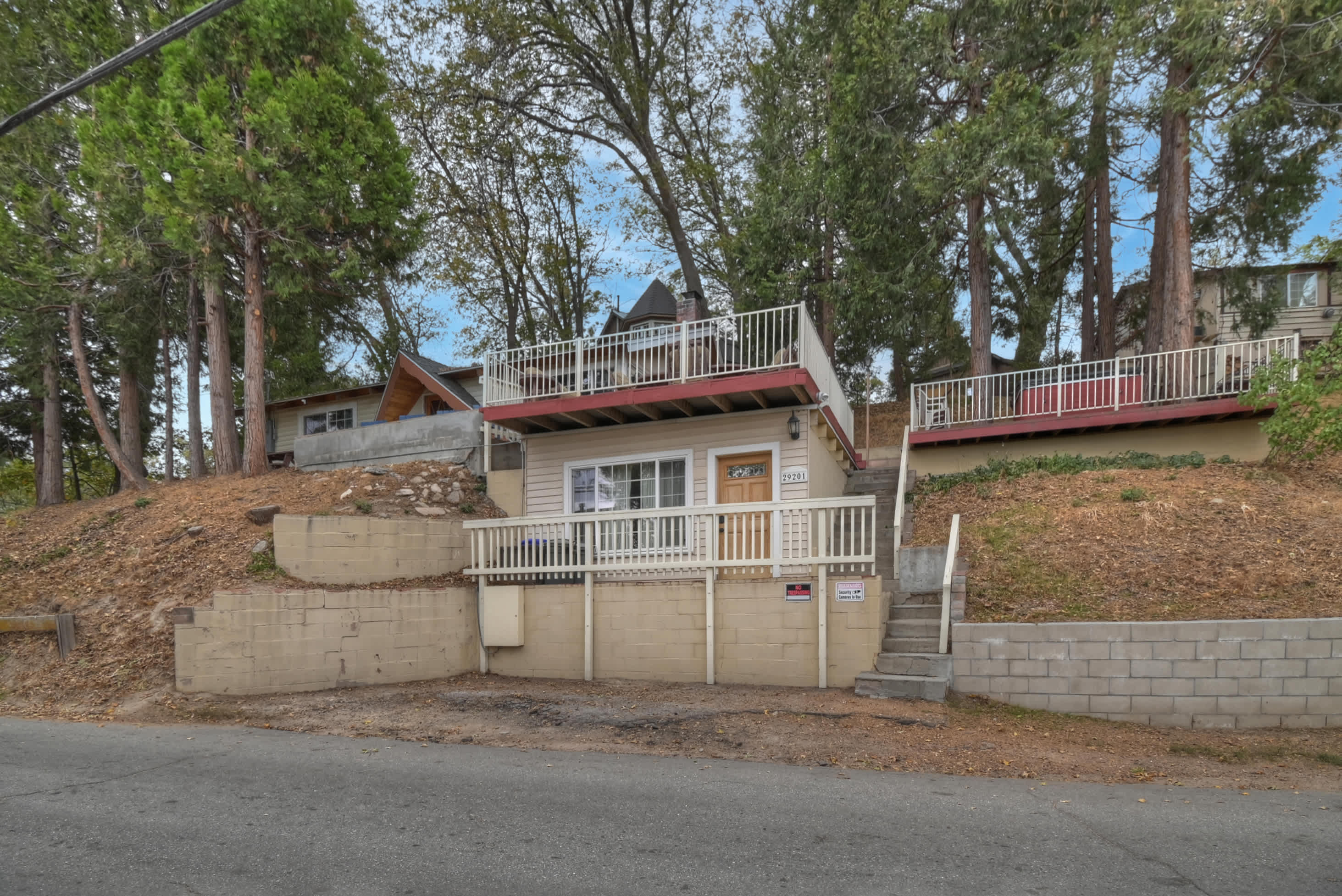 - Parking: Keep in mind that you are in a residential neighborhood and parking rules strictly apply. Your rental has a maximum of 2 spaces. San Bernardino County does NOT ALLOW STREET PARKING so please park next to the retaining wall and park parallel. You will be towed at your expense and incur a fine if you block the street. Park only in the driveway, there is no public overnight parking so plan accordingly. During the winter months (November through April), Caltrans requires all vehicles to carry chains. It is especially helpful to have 4WD or AWD as you may need it to access the property.