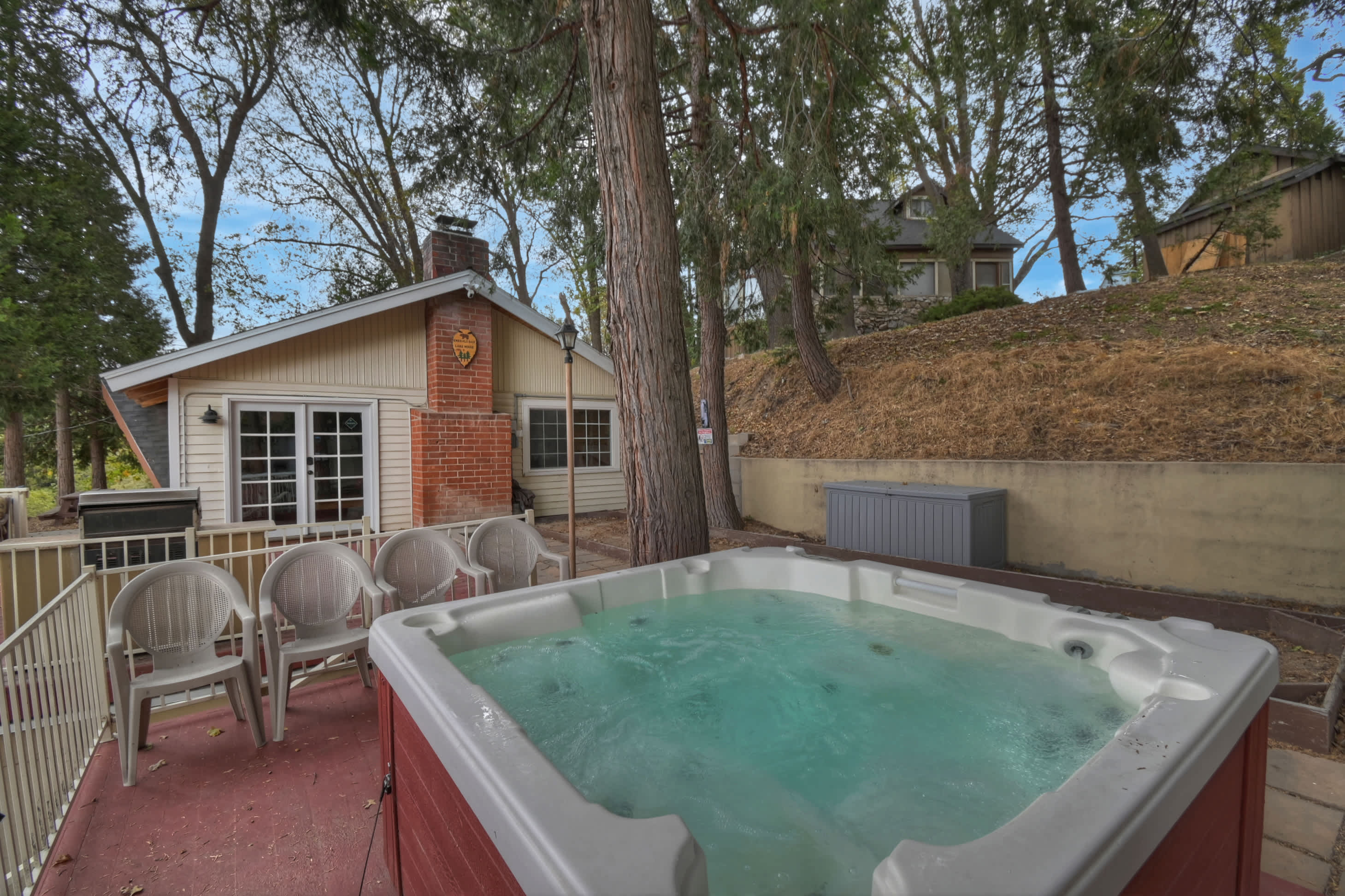 Downstairs, the fun continues in the game room featuring a smart TV, a foosball table, and a pool table -- a perfect hangout for kids or late-night games. Outside, the expansive patio invites you to relax in the private hot tub, fire up the grill, or dine al fresco while taking in the spectacular mountain and lake views. Whether you’re here for a family getaway or a quiet mountain retreat, Emerald Arrowhead Haus promises relaxation, adventure, and unforgettable moments.