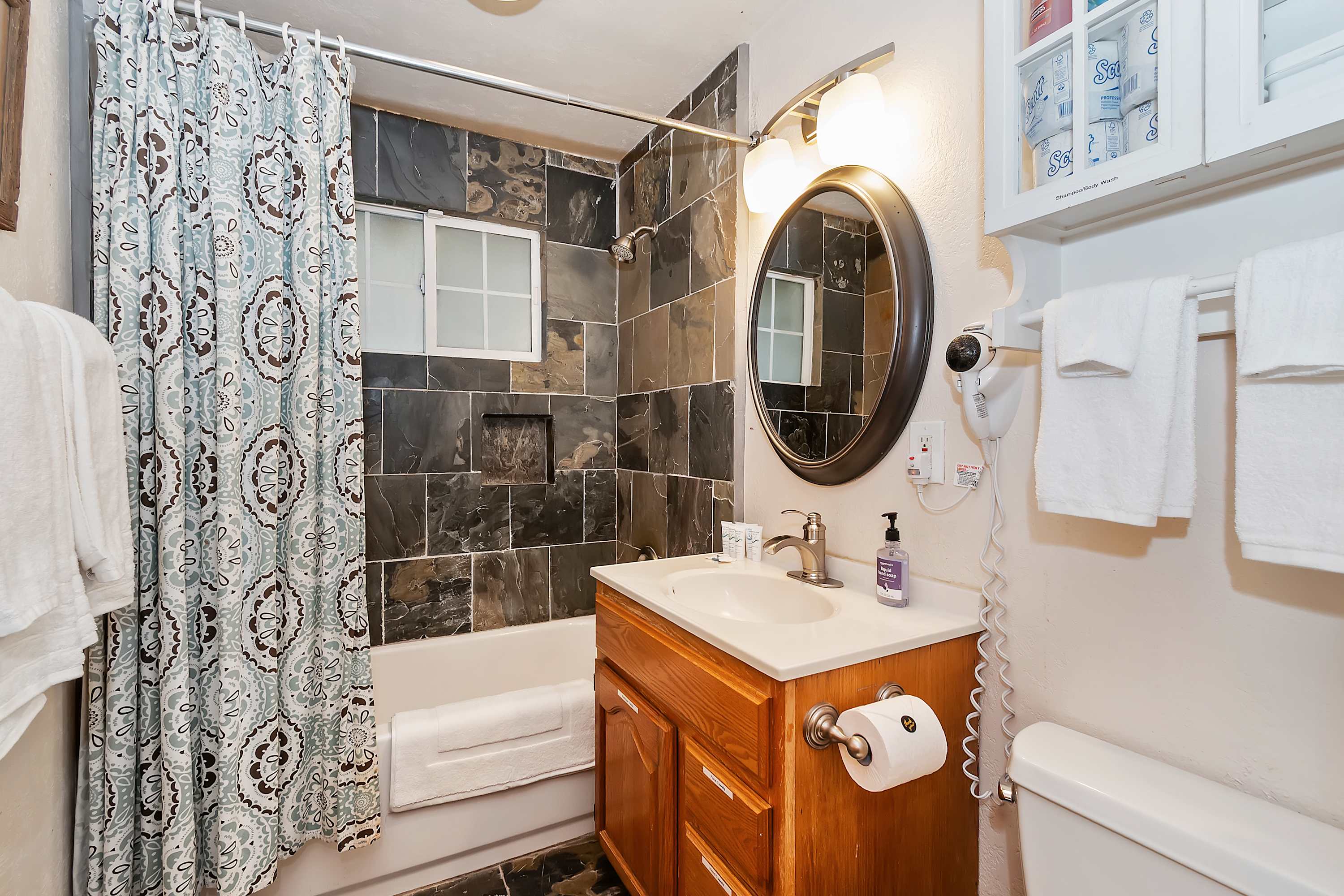 The home also includes a full guest bathroom with a single vanity and a shower/tub combo.