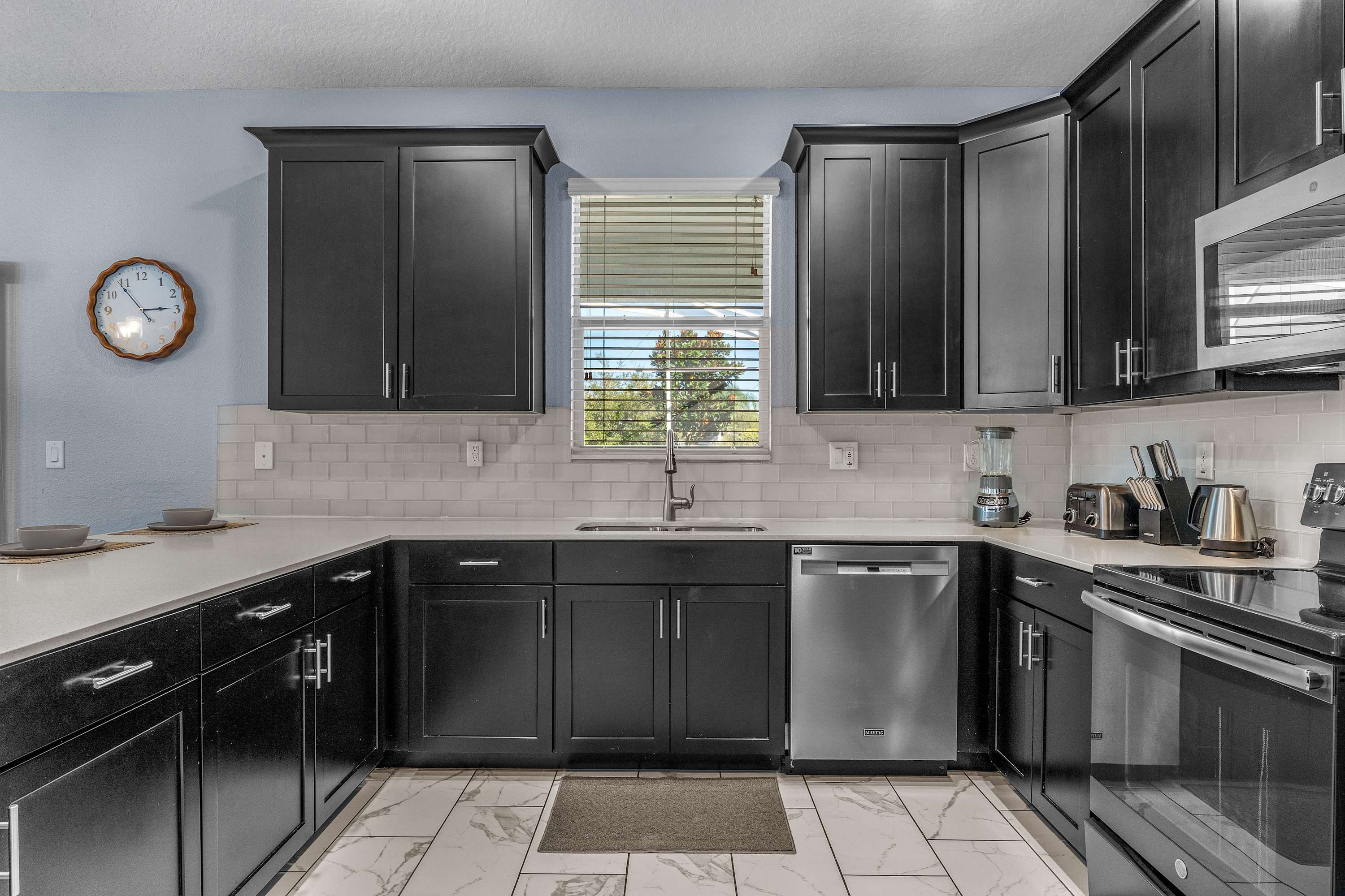 Step inside and discover comfort and elegance at every turn. The living room invites you to sink into a plush couch with three recliners or relax on one of the two reclining loveseats while watching your favorite shows on the Smart TV with cable. The spacious kitchen impresses with dark wood cabinetry, gleaming white quartz countertops, and stainless steel appliances. Brew your morning coffee just the way you like with the drip and on-demand combo maker, then gather around the counter seating for four. The dining table for eight, with its rustic industrial metal design, sets the stage for memorable meals and conversation.