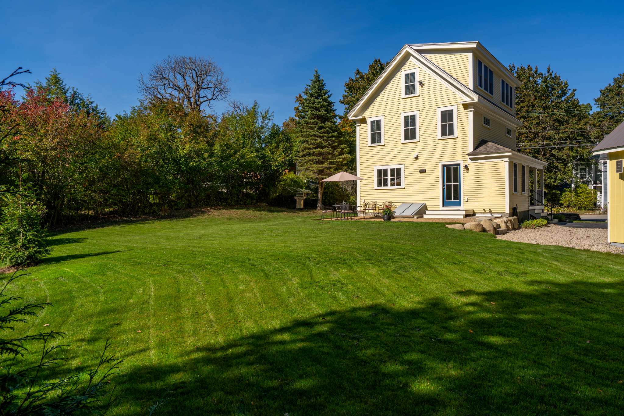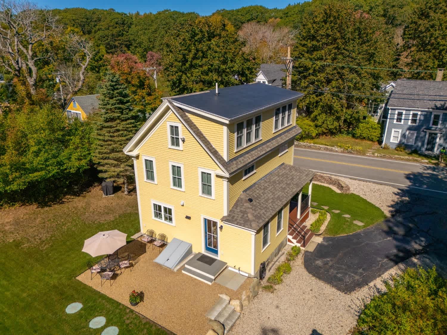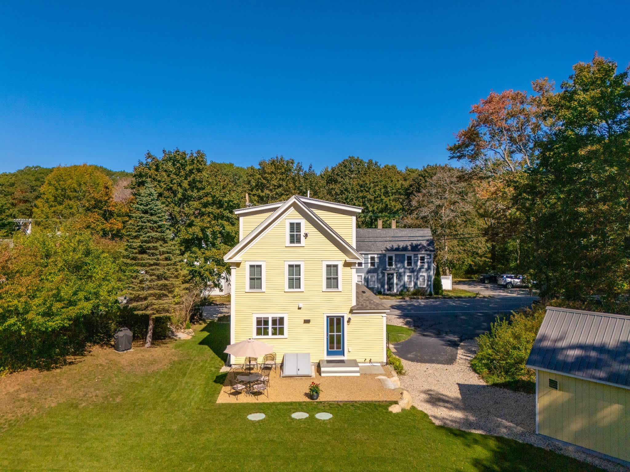 When you arrive, you’ll feel right at ease in the cozy living room, where a smart TV, comfortable couch, and two armchairs invite you to relax after a day of seaside adventures. A small desk in the corner offers a quiet spot to catch up on work or write postcards home. The eat-in kitchen features sleek stainless steel appliances and granite countertops, perfectly blending modern convenience with classic style. Enjoy meals together at the dining table for six before heading outdoors to make the most of Maine’s fresh air—fire up the grill, dine at the table for six under the umbrella, or unwind in the spacious backyard surrounded by nature.