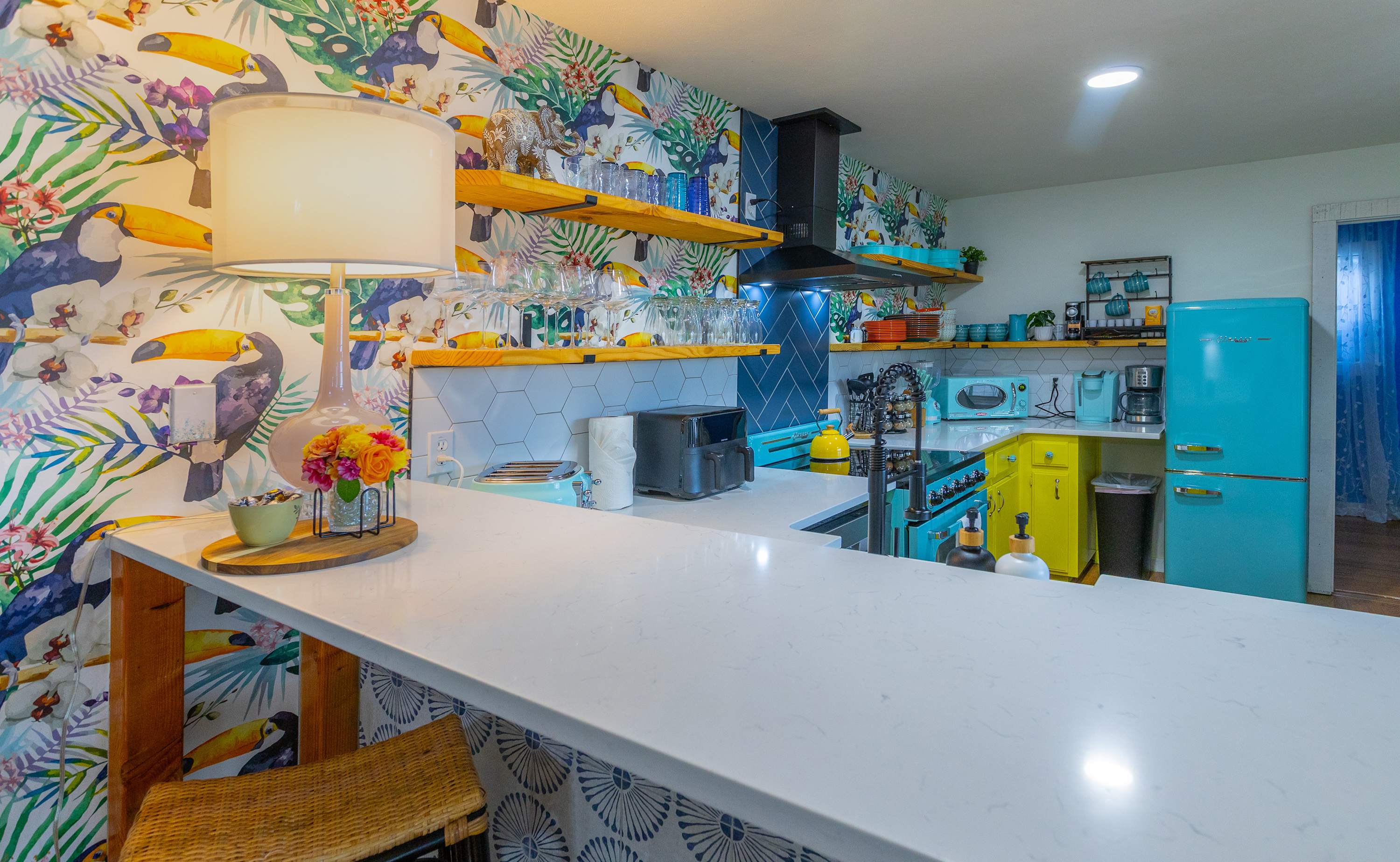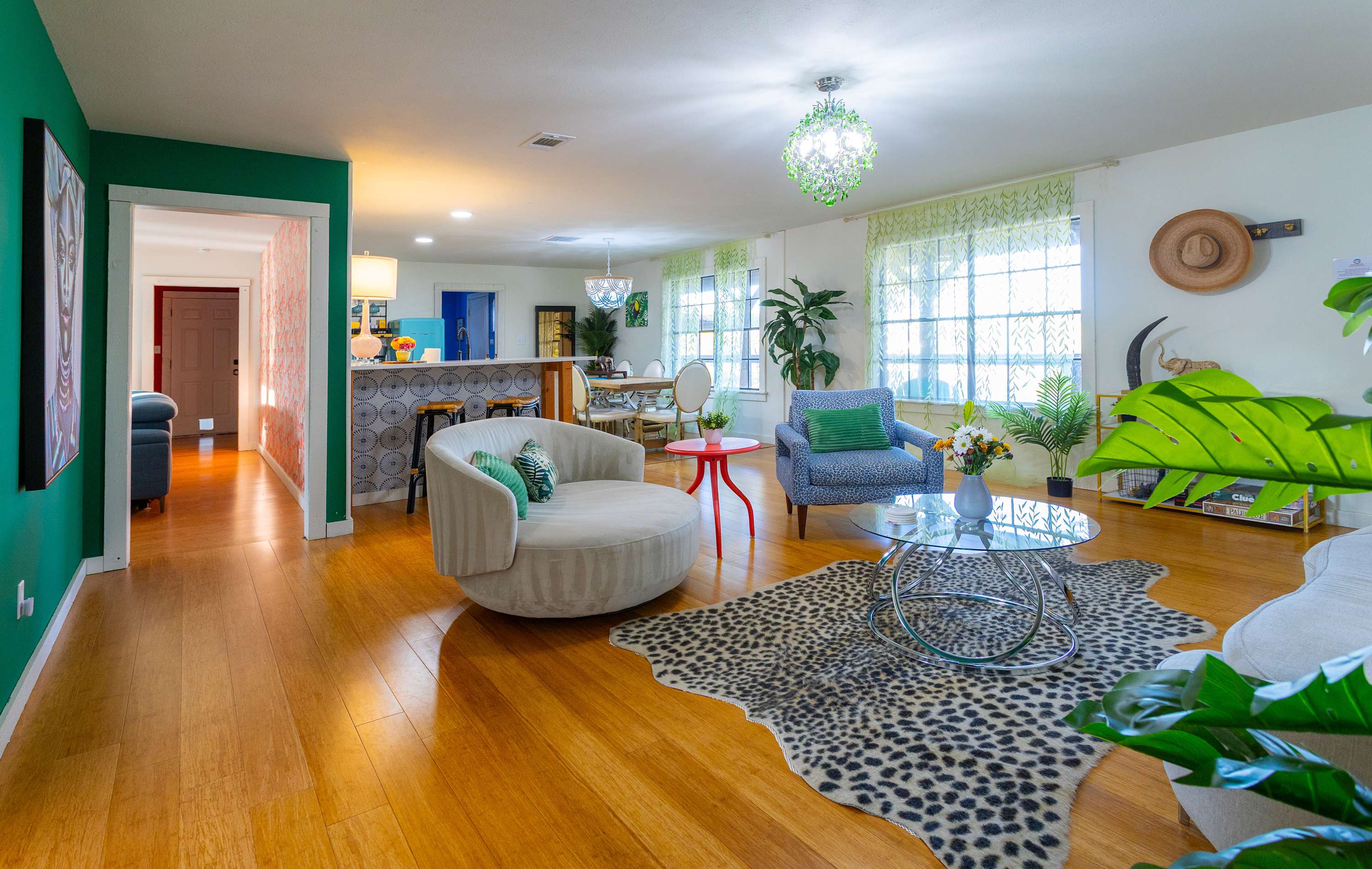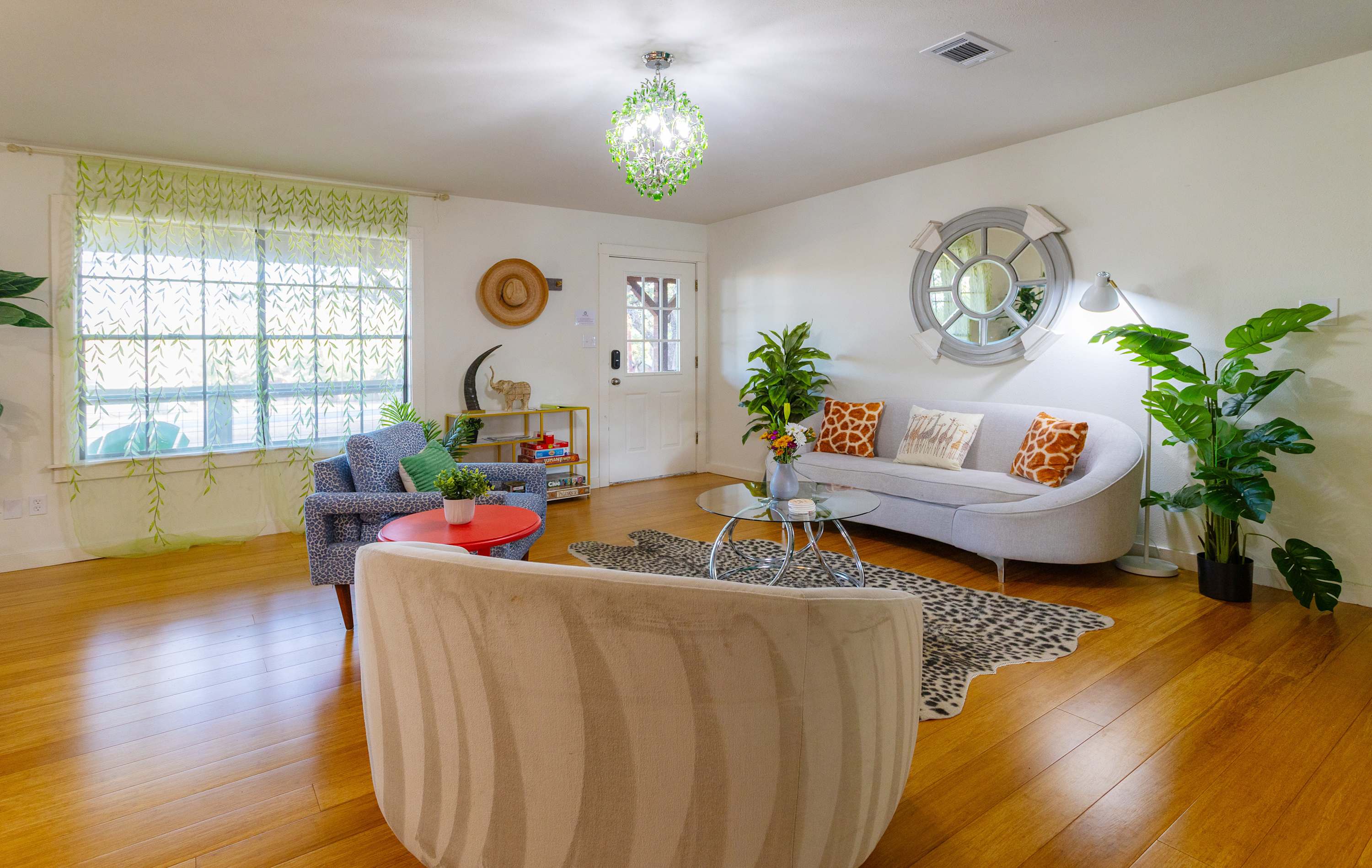 Escape to Jungle Haven, a tropical-inspired retreat nestled in the heart of Johnson City, where the charm of the Texas Hill Country meets laid-back luxury. Just minutes from local wineries, scenic trails, and the famous Johnson City Christmas lights, this cozy getaway invites you to unwind and explore. Spend your days wine tasting, hiking, or visiting nearby Fredericksburg—then return to your private paradise for evenings filled with warmth and laughter.