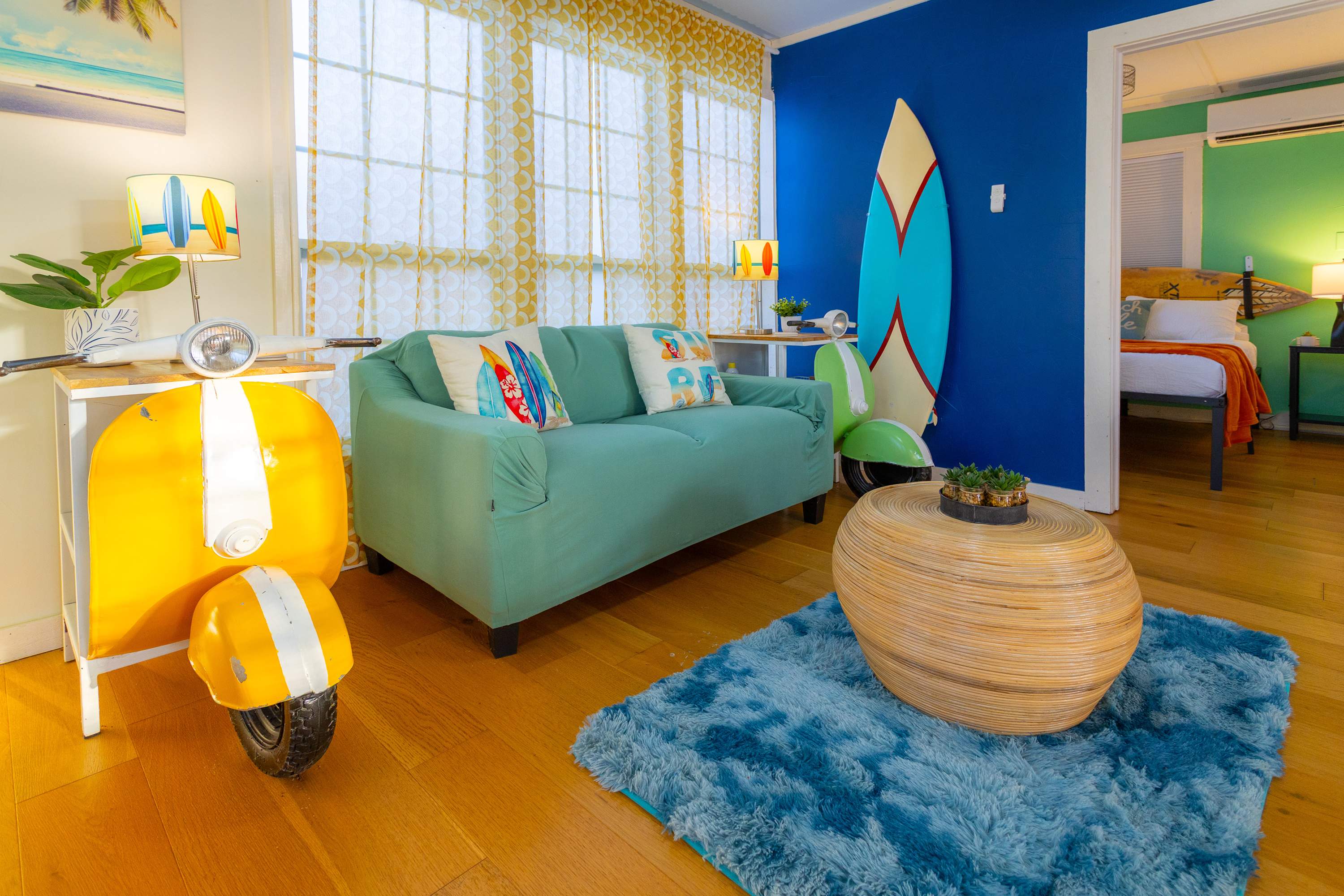 Bedroom #5 is in the second building, Surfin’ Safari, and includes a queen size bed.