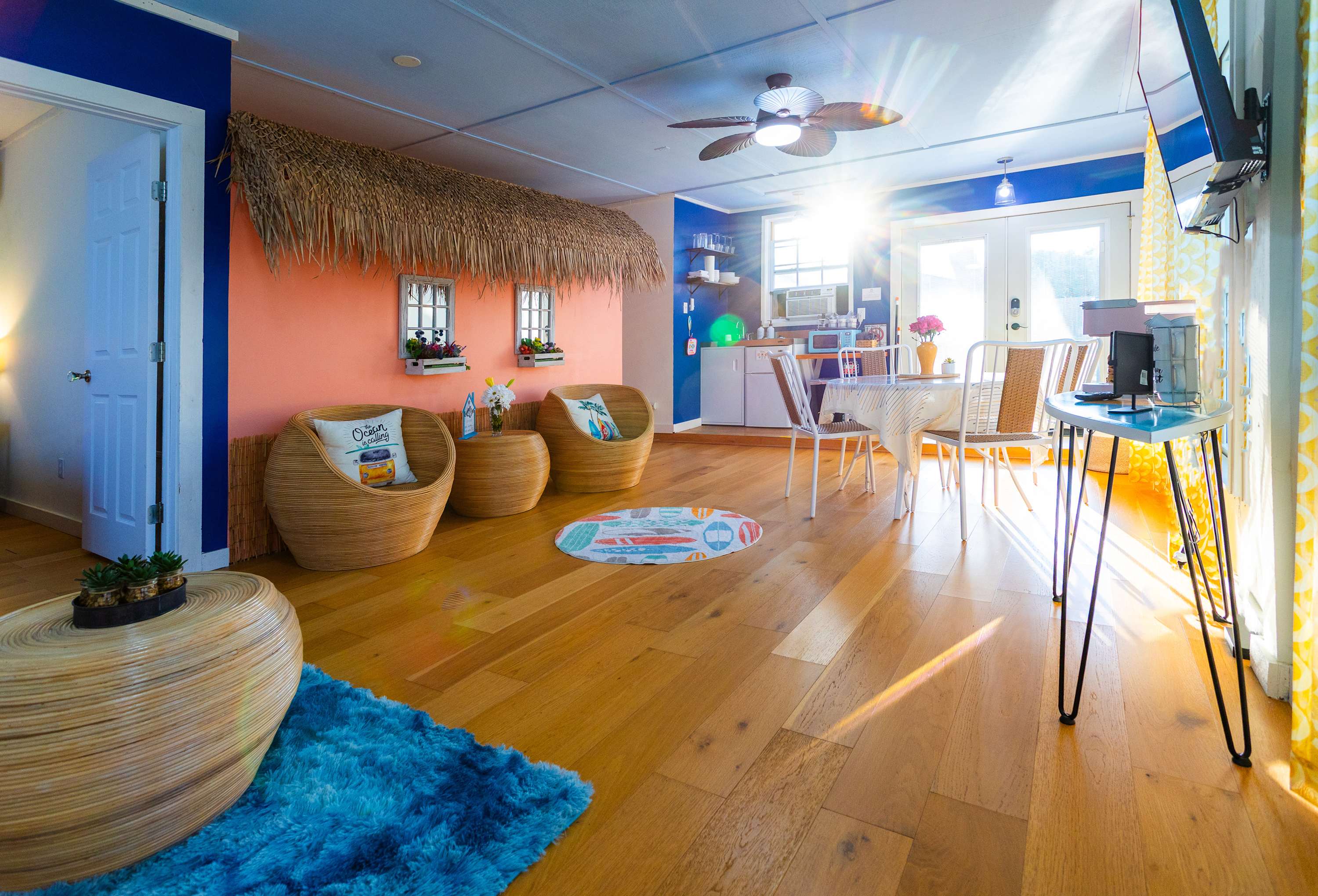 • This property has two buildings, the main house and Surfin’ Safari. You can access the smaller building through the back yard of the main house or through its’ own gate. The second building also has its’ own driveway.