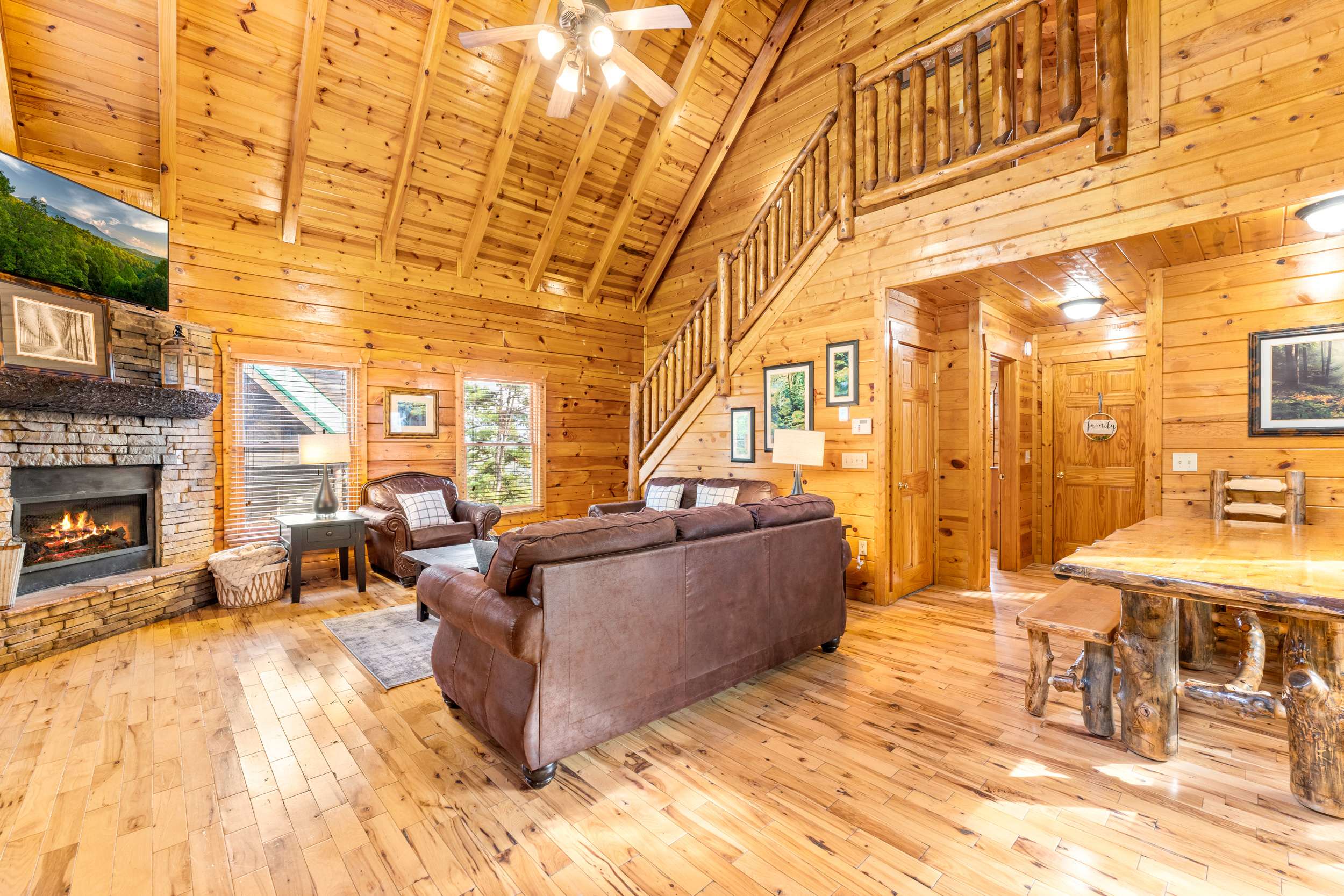 Designed for easy mountain getaways, this multi-level home offers comfortable sleeping space for up to 8, two full bathrooms, and plenty of places to unwind. Spend evenings soaking in the private hot tub, grilling on the deck, or gathering in the game room for friendly competition. A seasonal gas fireplace adds a cozy touch during cooler months, and Smart TVs in each sleeping space make winding down simple. You’ll also find a laptop-friendly workspace if you need to check in with the office. Outside, multiple decks and balconies offer fresh air and seating, while the paved driveway provides convenient parking right in front of the house.