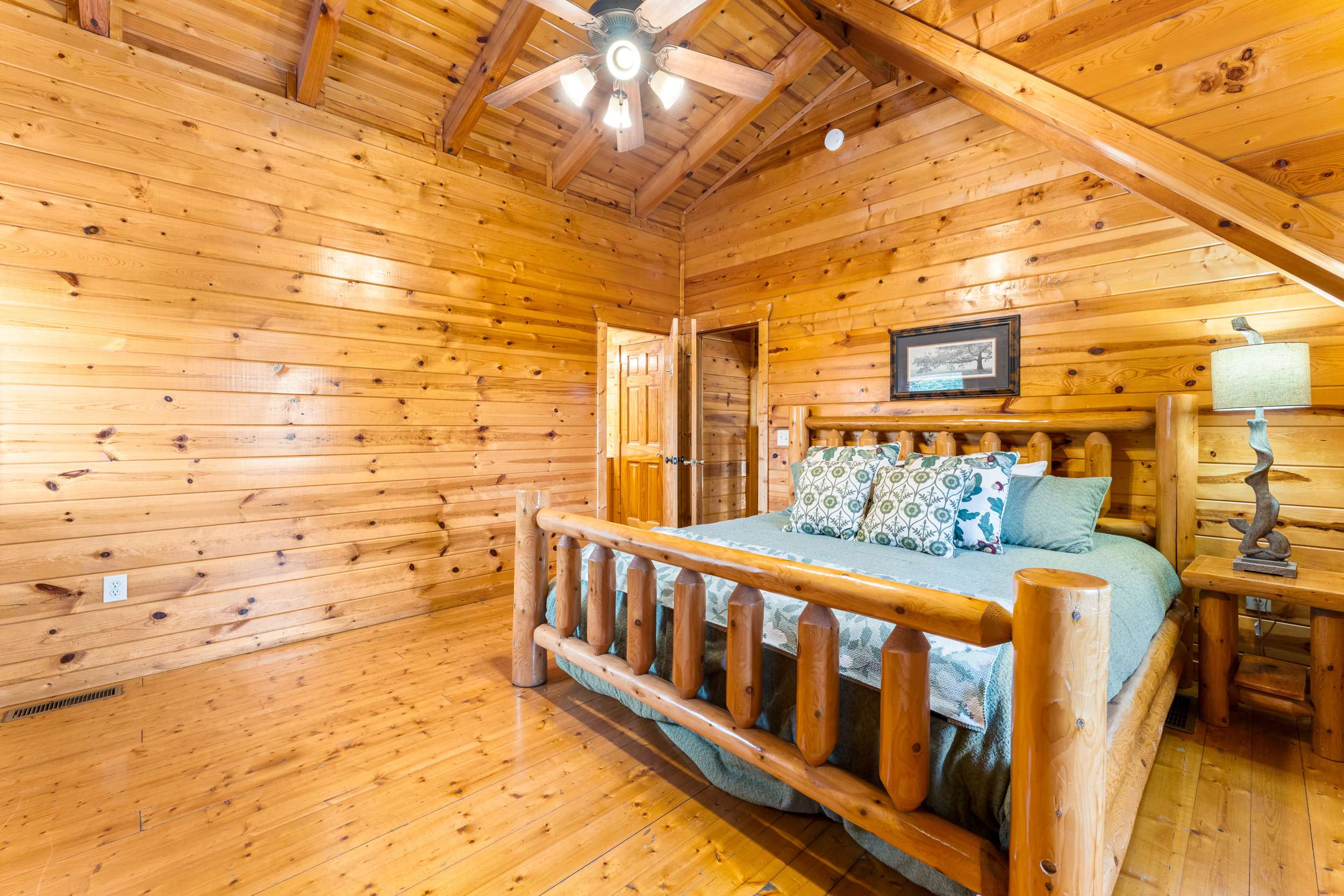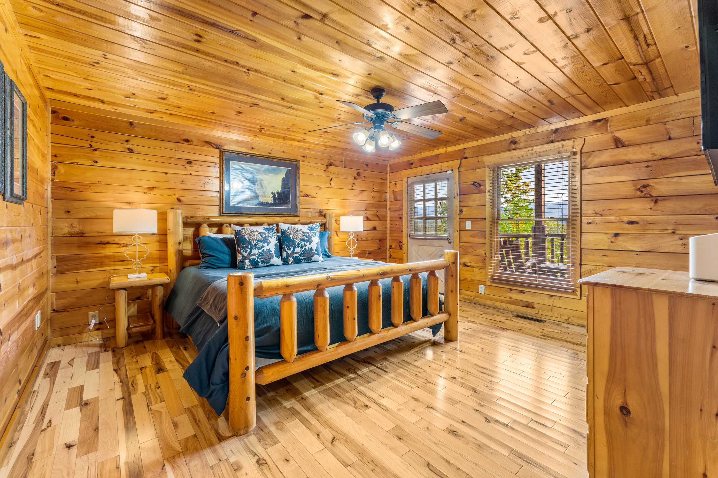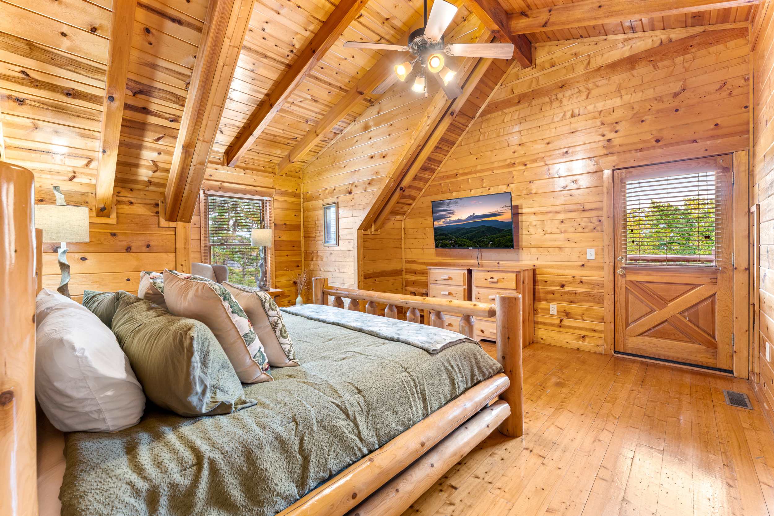 • Bedroom 2 (Upper Level): King bed, Smart TV, balcony, ensuite bath
