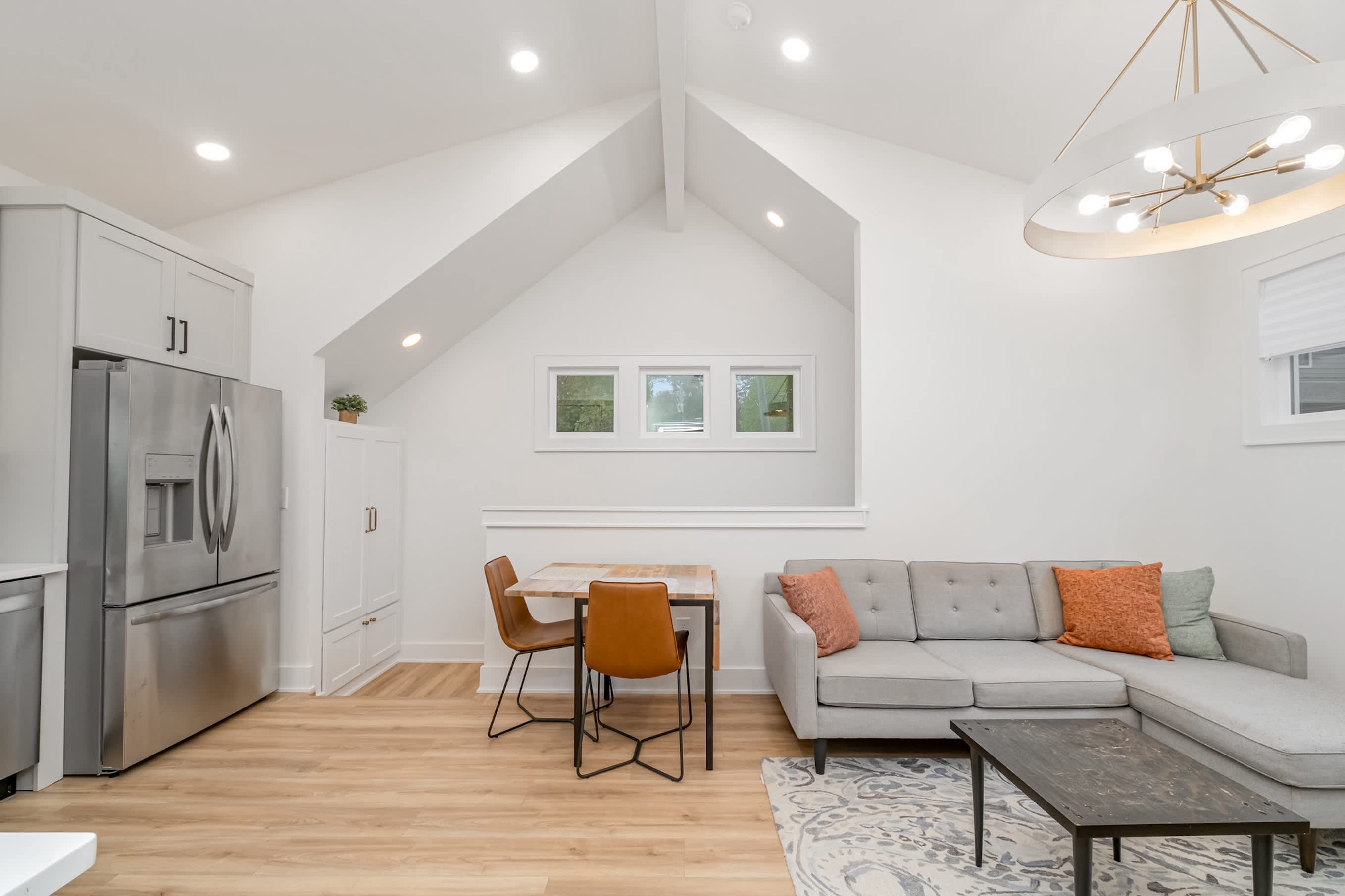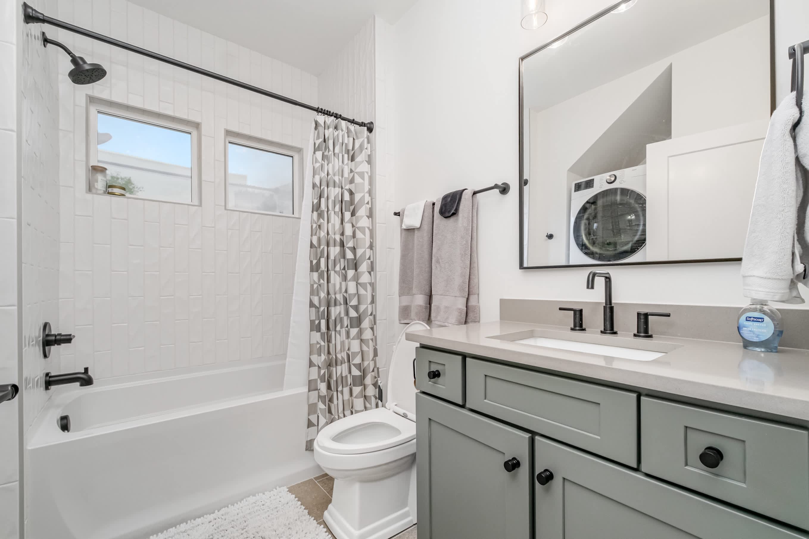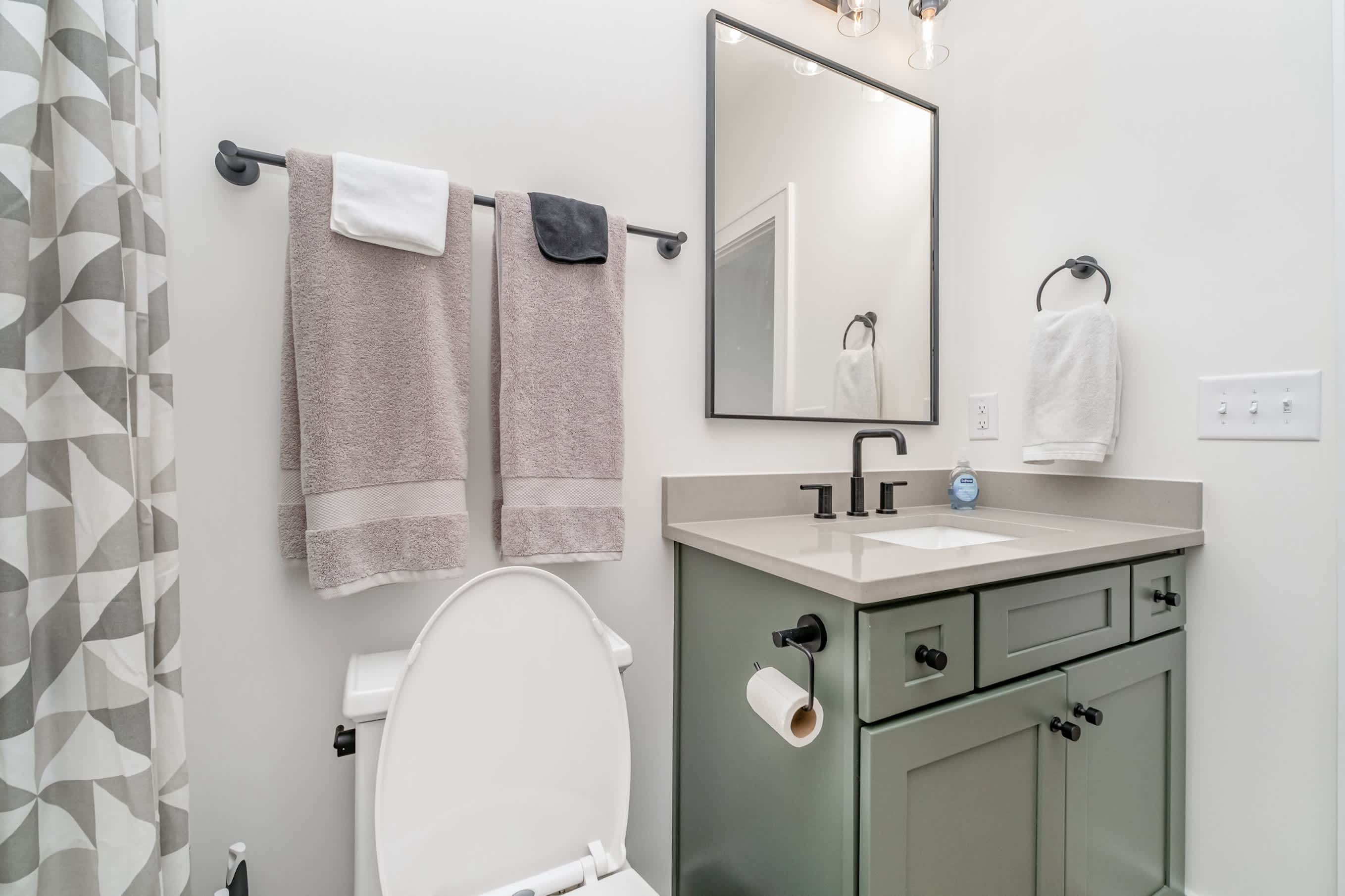 Relax in the main living area, catch up on emails at the laptop-friendly workspace, and stay connected with WiFi. A private washer and dryer make longer stays a breeze. Family-friendly touches like a high chair and pack ’n play are available if you’re traveling with a little one. When it’s time to turn in, the bedroom offers a queen bed and an ensuite bathroom with a shower/tub combo.