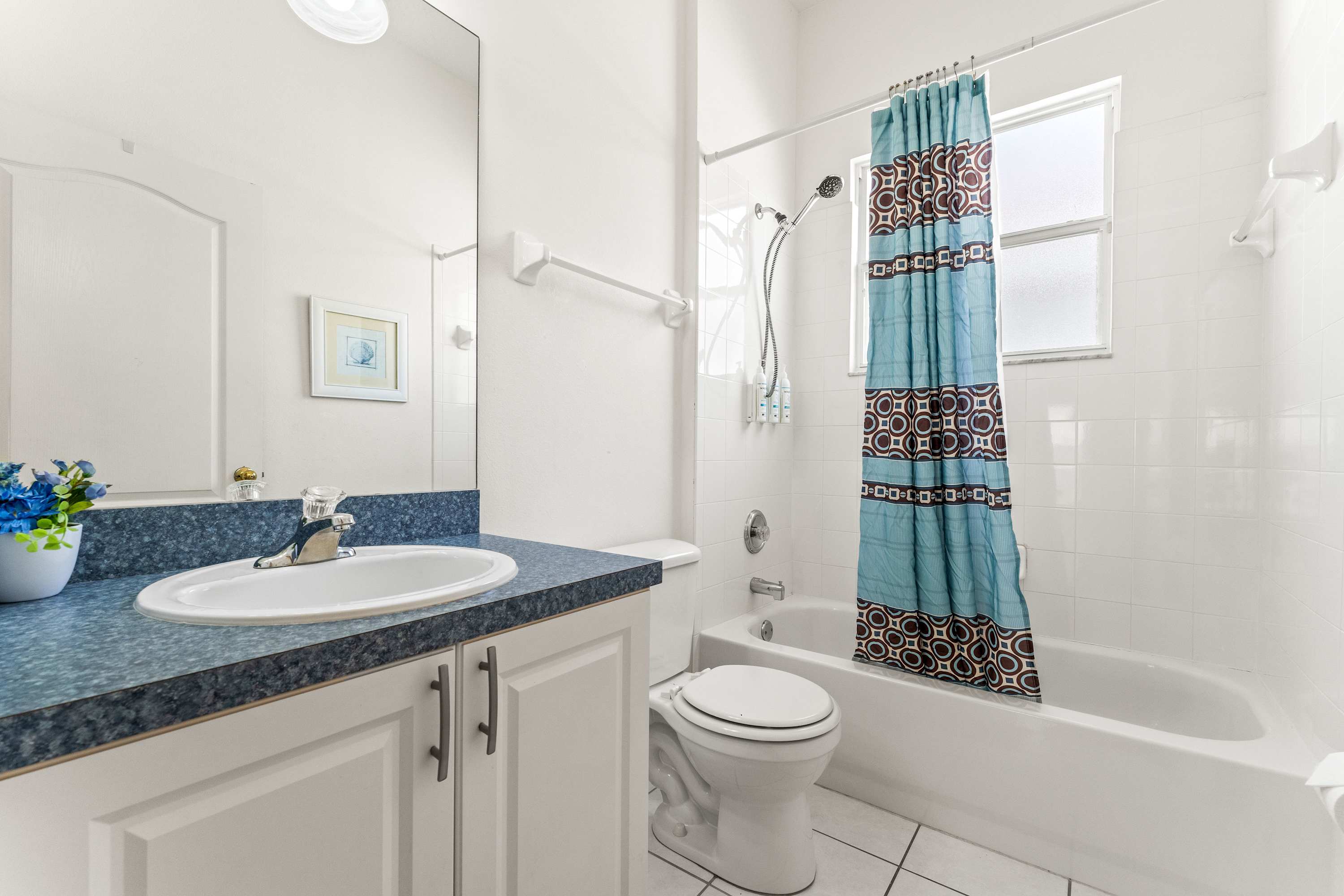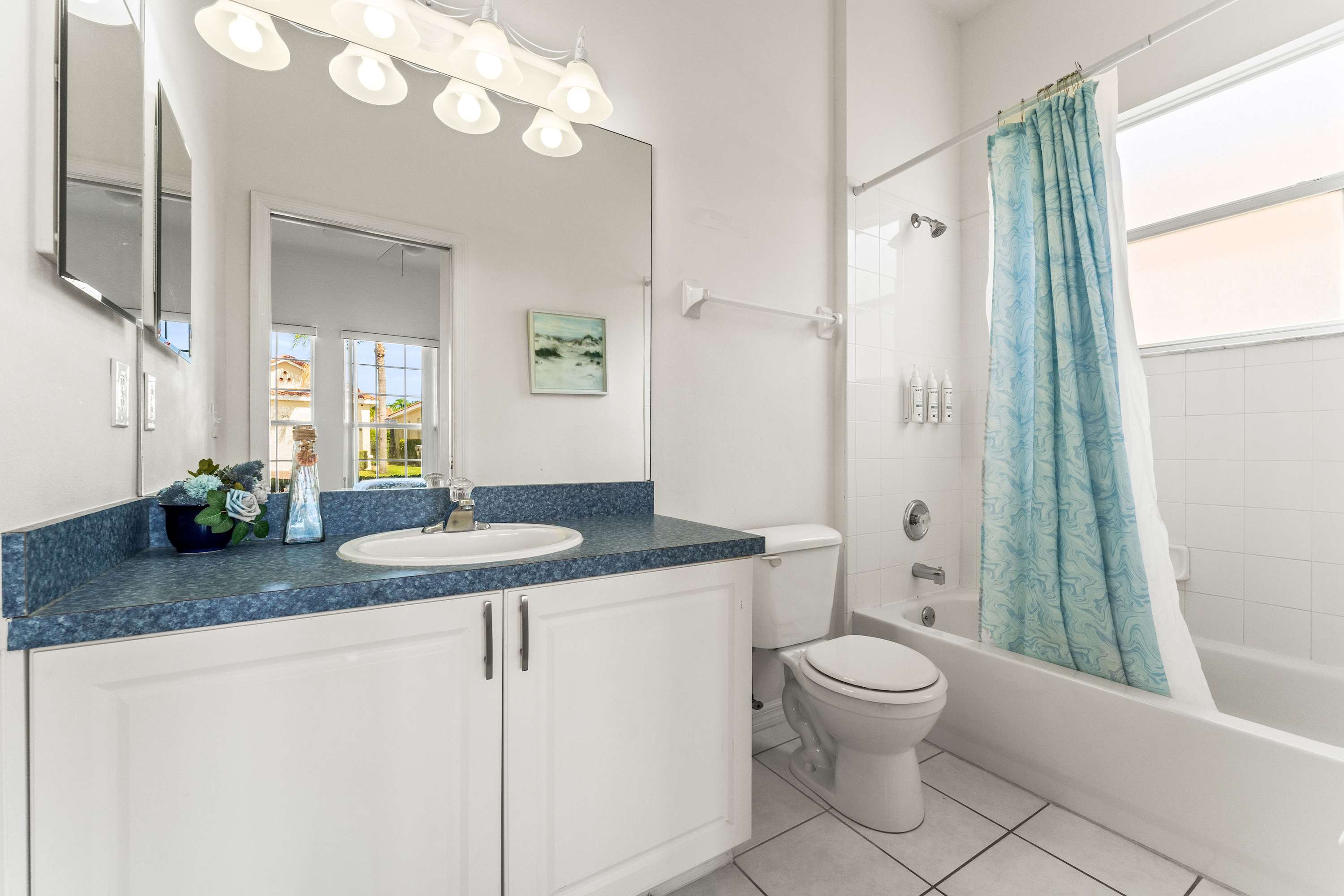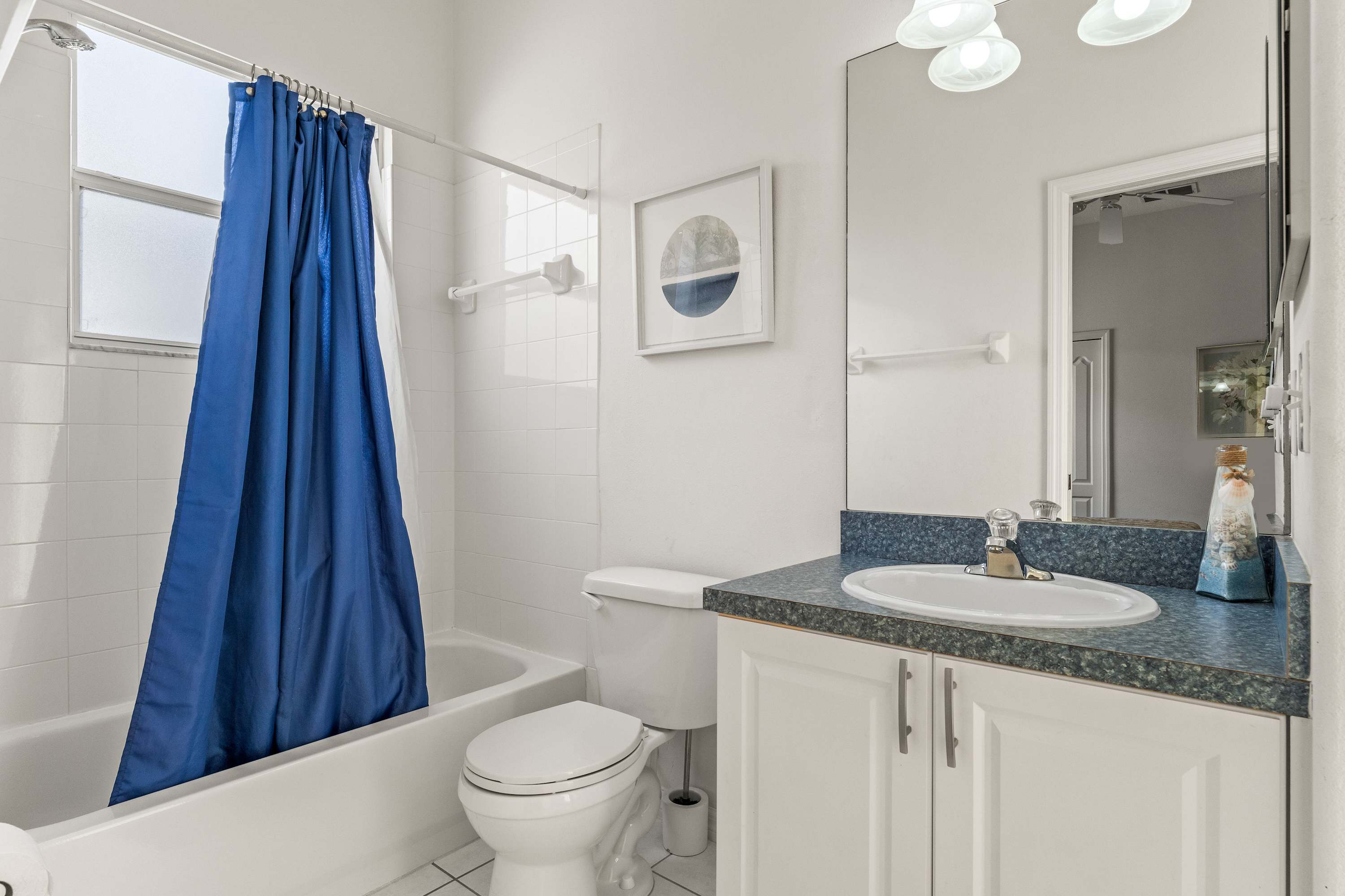 This home also includes an additional full guest bathroom with a single vanity and a shower/tub combo.