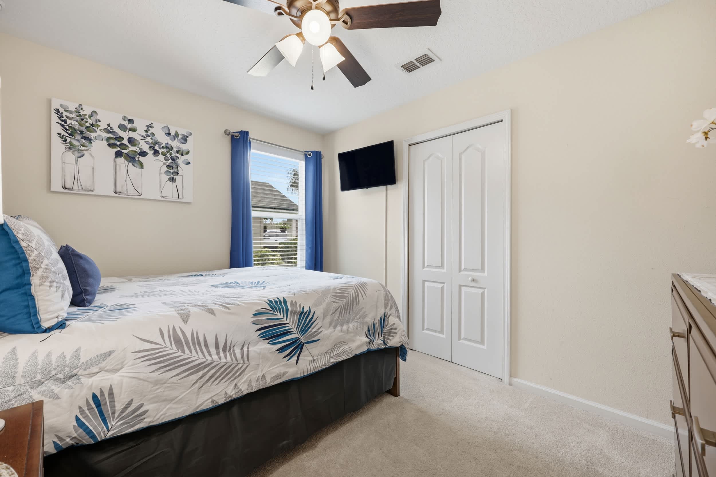 Bedroom #3 includes a queen size bed and a smart TV.