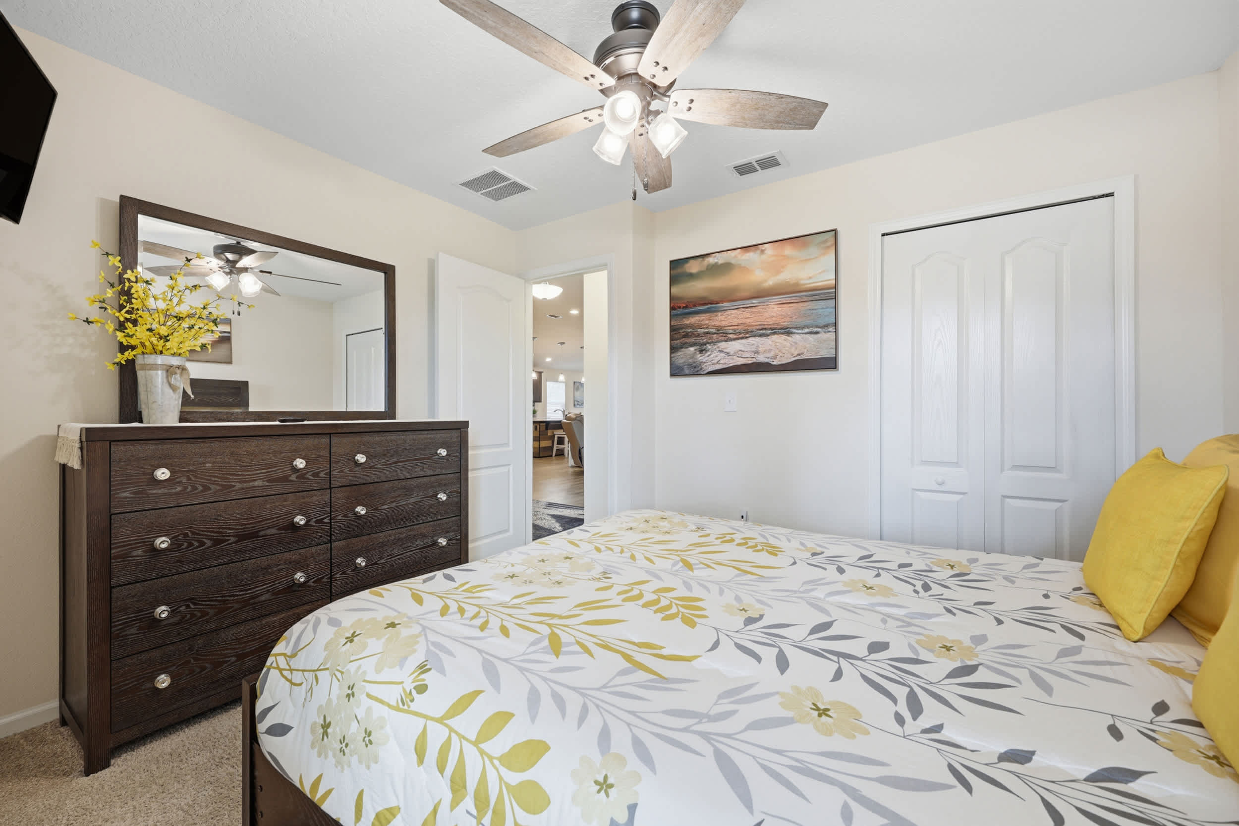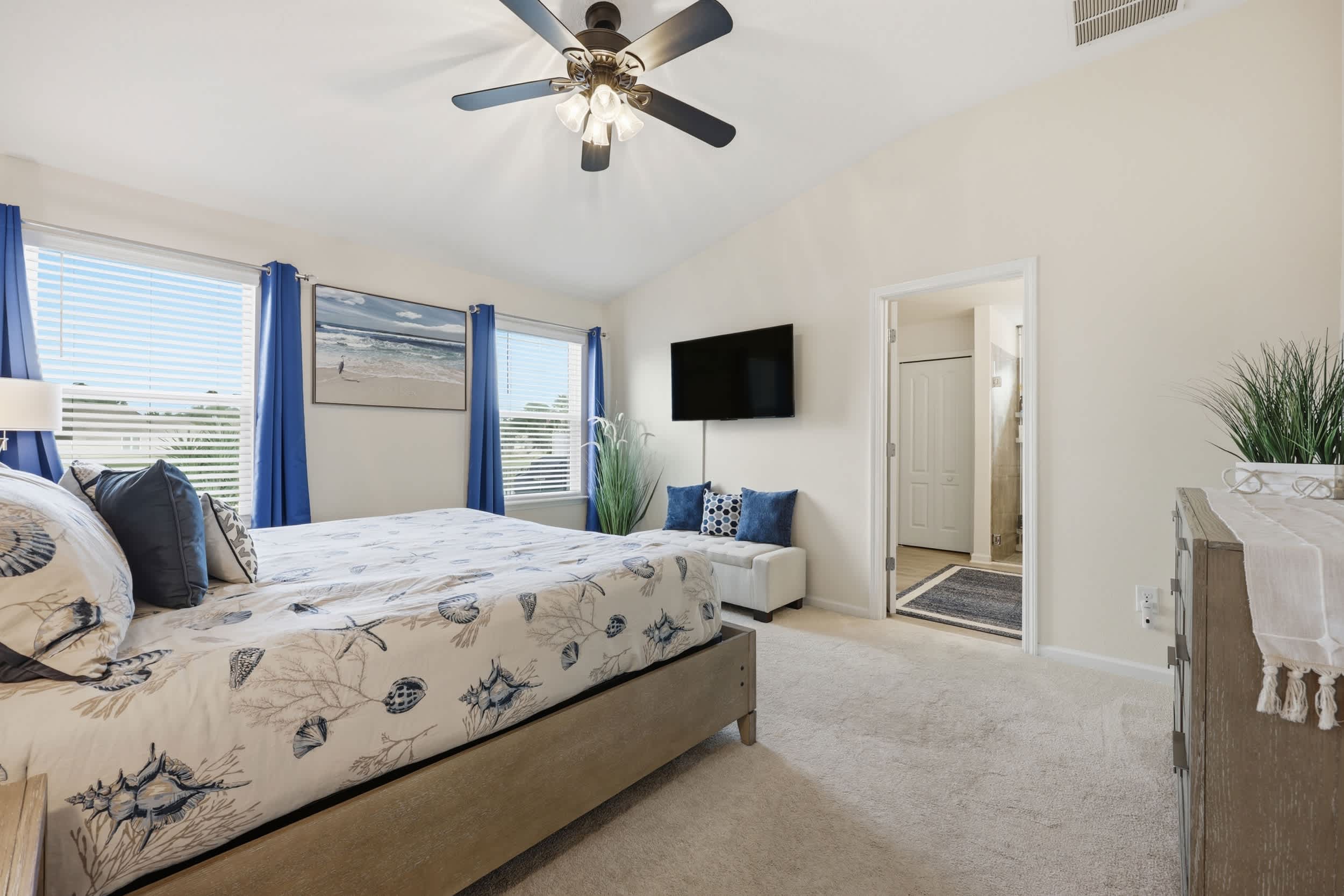 Bedroom #4 includes a queen size bed and a smart TV.