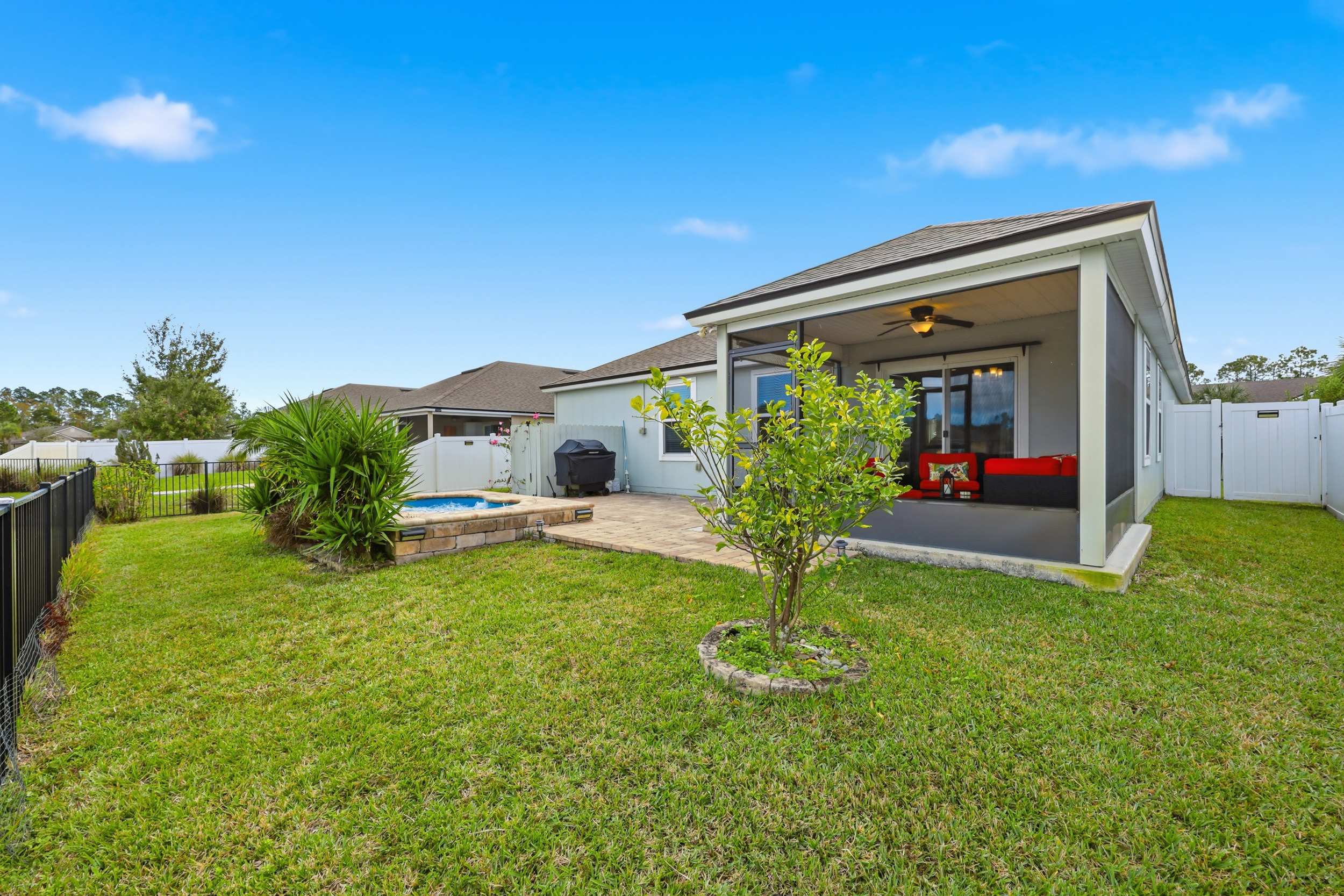 Step outside to the covered patio, where comfortable seating invites you to relax and enjoy the serene pond view with fountain. For ultimate outdoor indulgence, this home features an inground Jacuzzi for soaking under the stars and a BBQ grill for alfresco dining. Thoughtfully designed and perfectly located, Serenity by the Sea offers a calm and stylish home base for exploring all that St. Augustine and the nearby coast have to offer.
