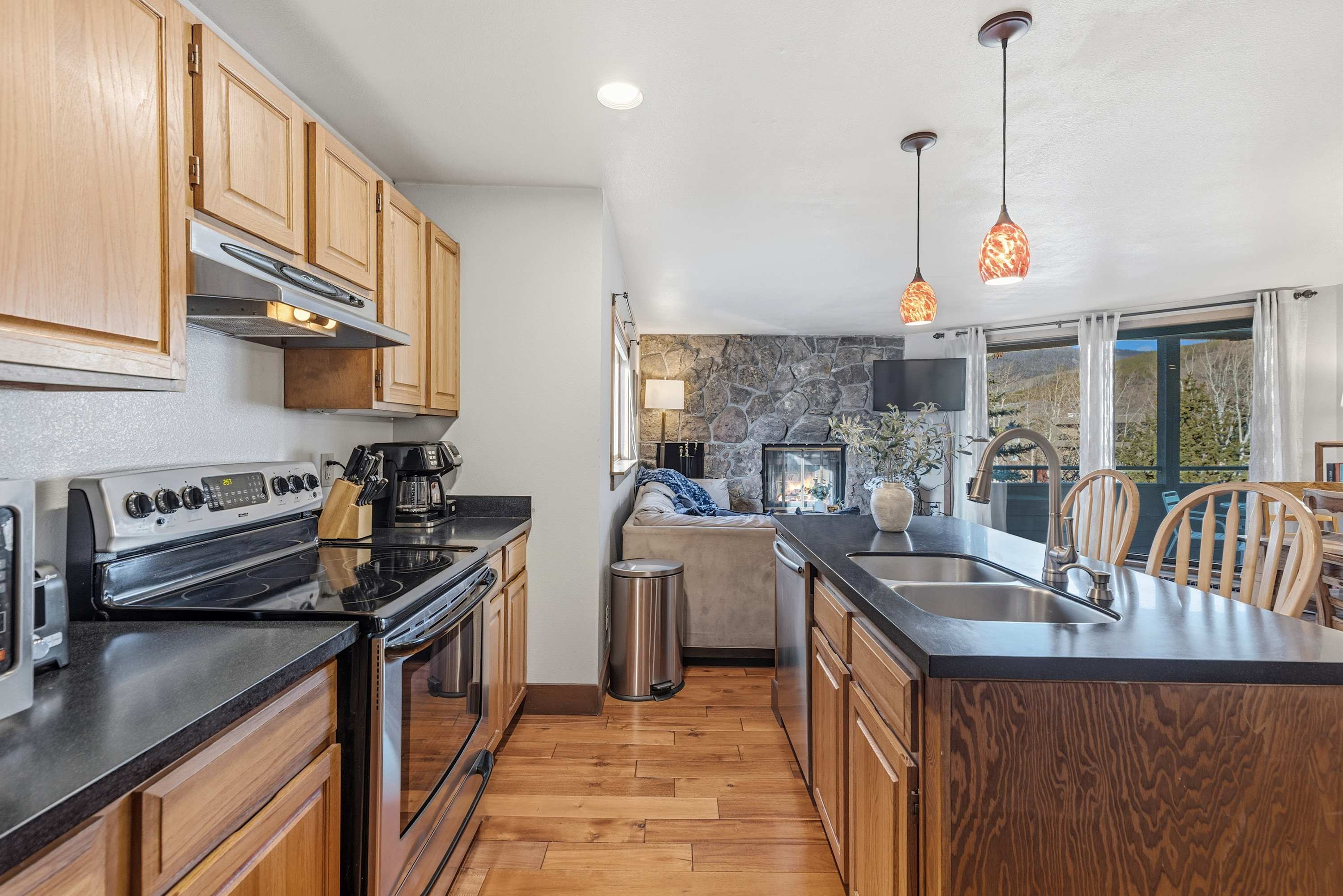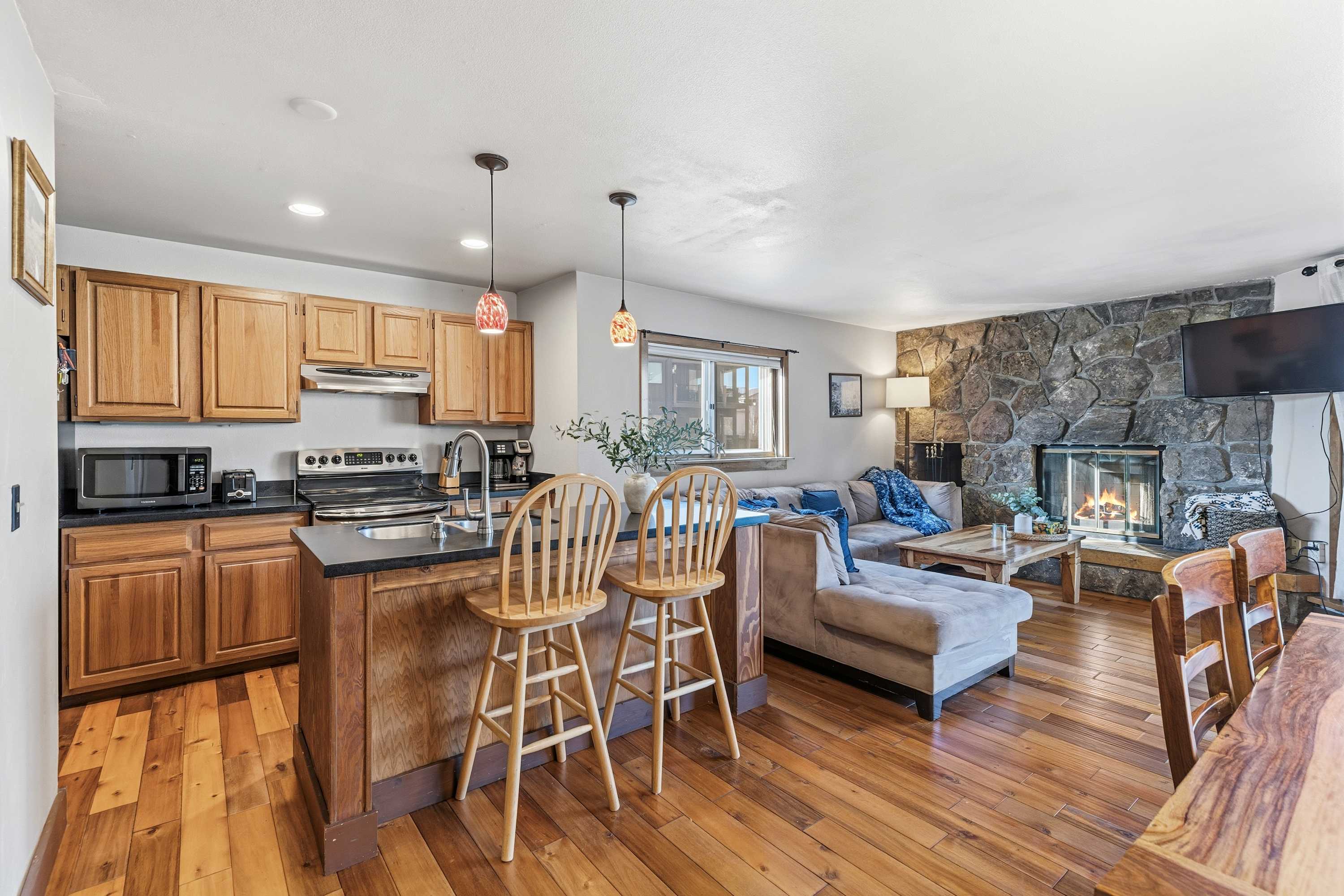 Settle into a relaxed, lakefront condo with mountain views—great for families or a small group. The third-floor setting (stairs required) offers a comfortable living and dining area that opens onto a balcony with outdoor seating. Two bedrooms with smart TVs make unwinding easy, and a laptop-friendly workspace keeps you connected when needed.
