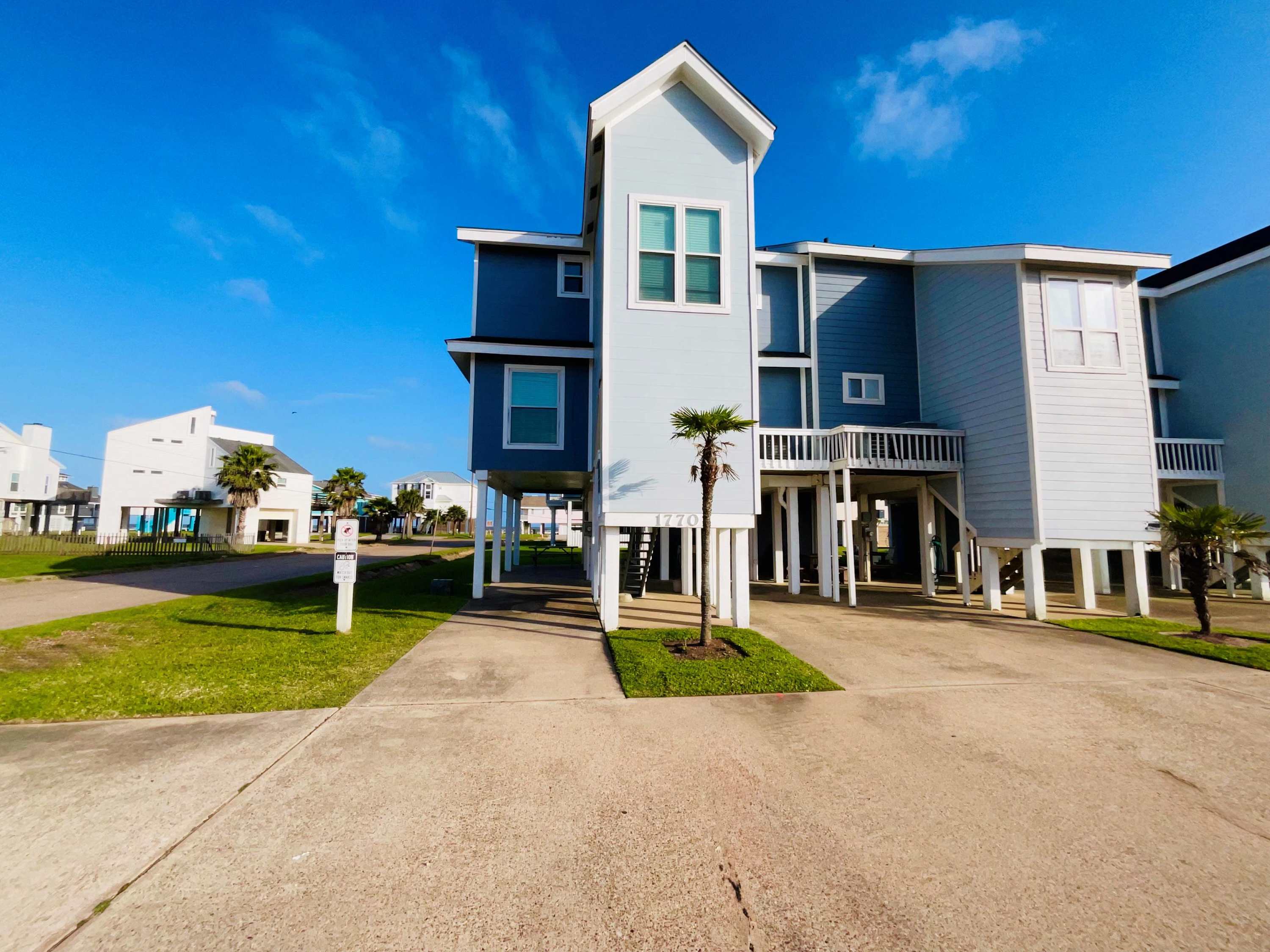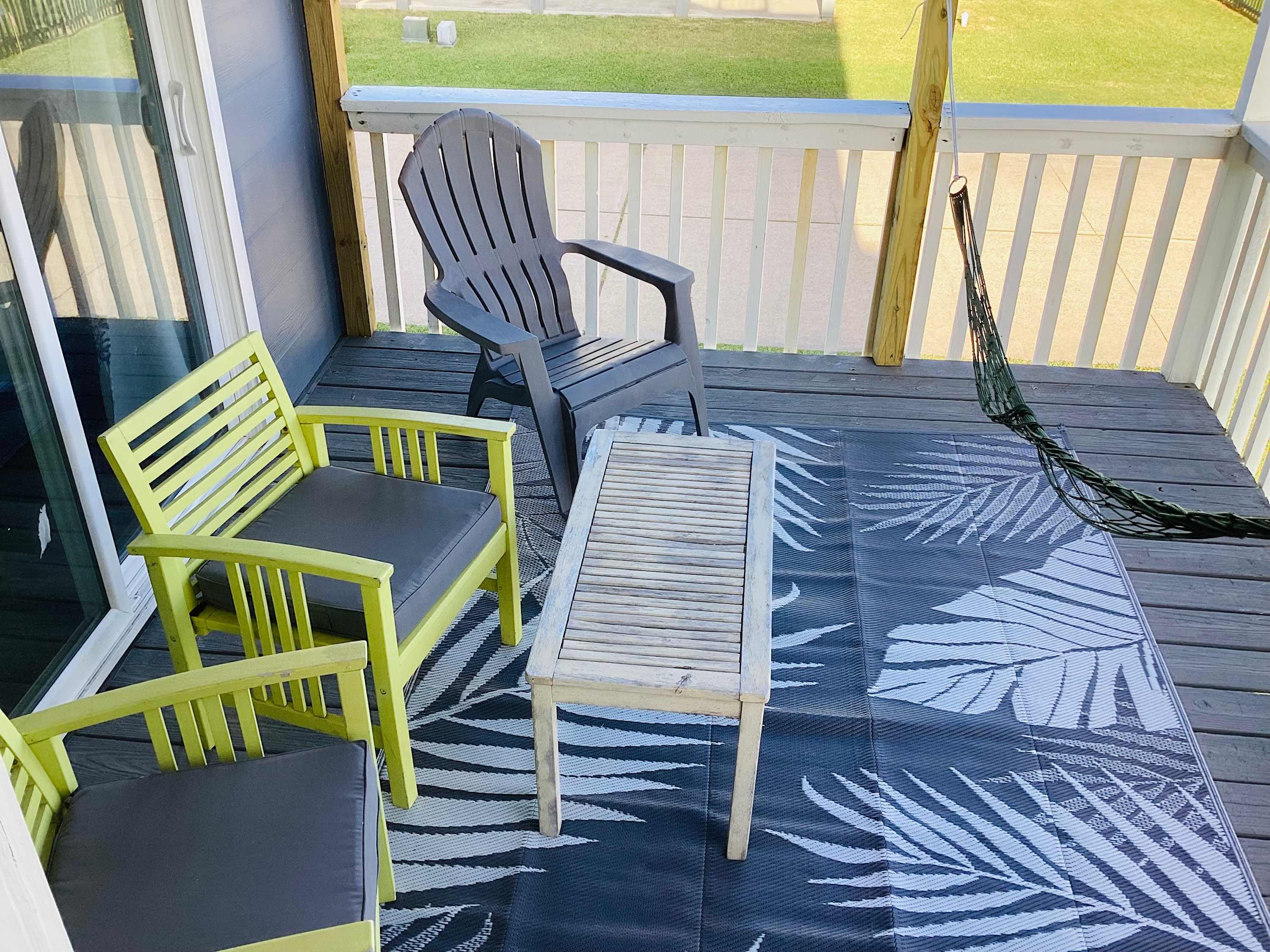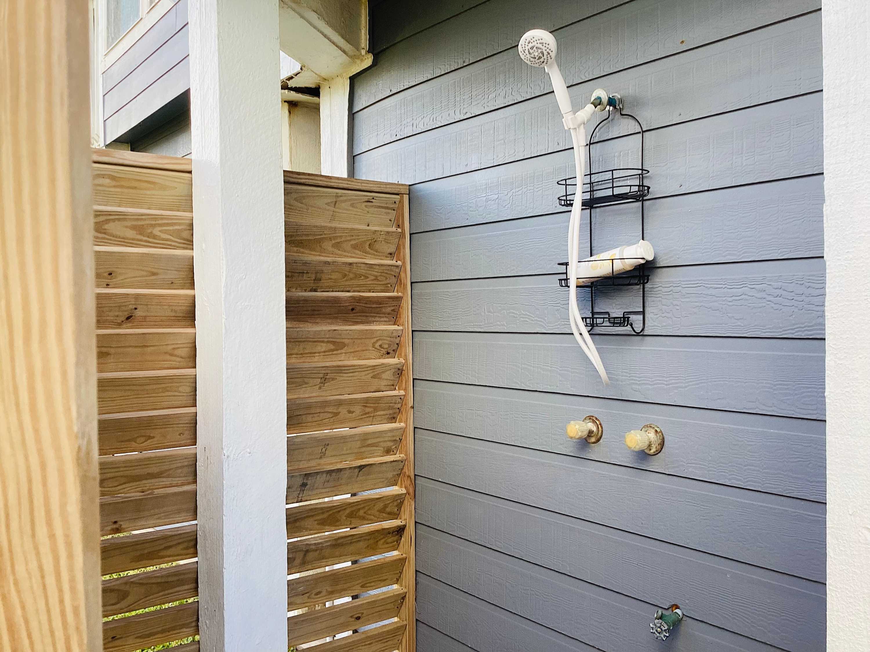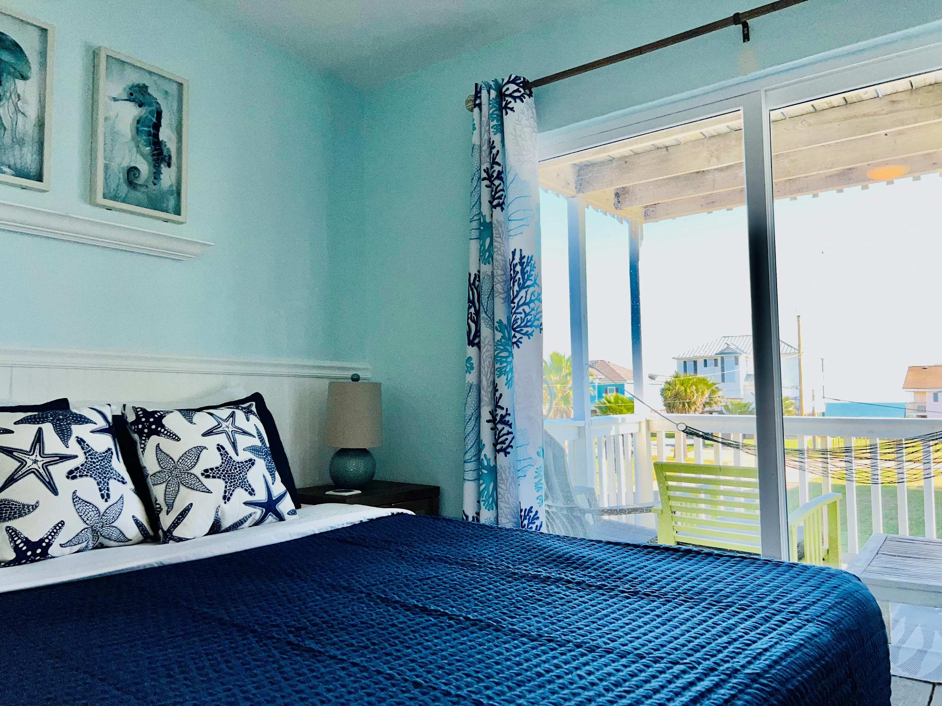 But the magic extends outdoors. Rinse off sandy toes in the outdoor shower on the first-floor patio, then enjoy casual al fresco meals at the picnic table. Head up to the second-floor balcony for refreshing breezes and ocean views—or climb to the third-floor balcony for an even more elevated perspective. Both decks are furnished with seating, giving you peaceful places to sip morning coffee, unwind at sunset, or simply soak in the salty air. With its spacious layout, coastal charm, and unbeatable proximity to the beach, Salty Solace is the perfect escape for families and friends looking to experience Galveston at its best.