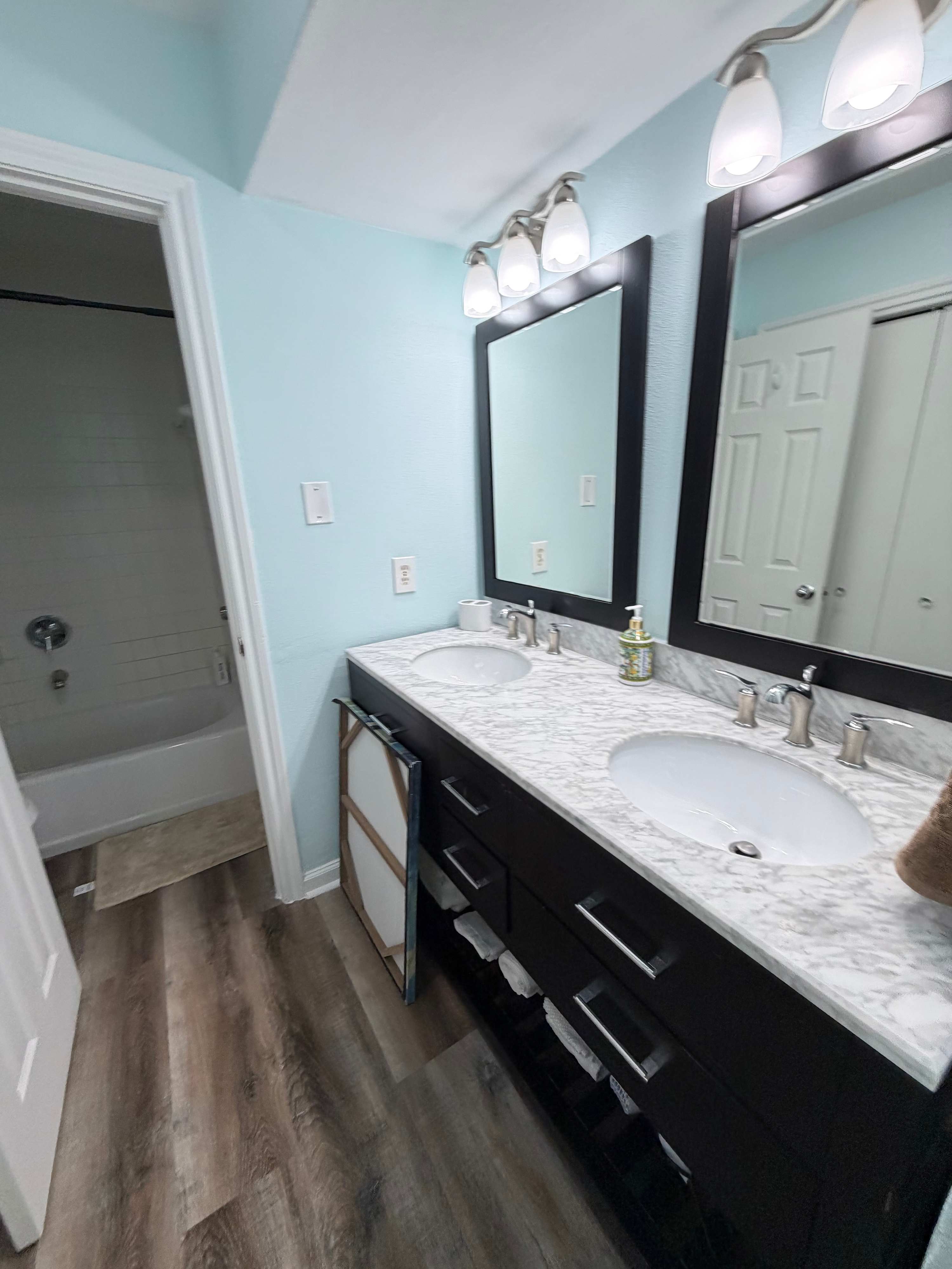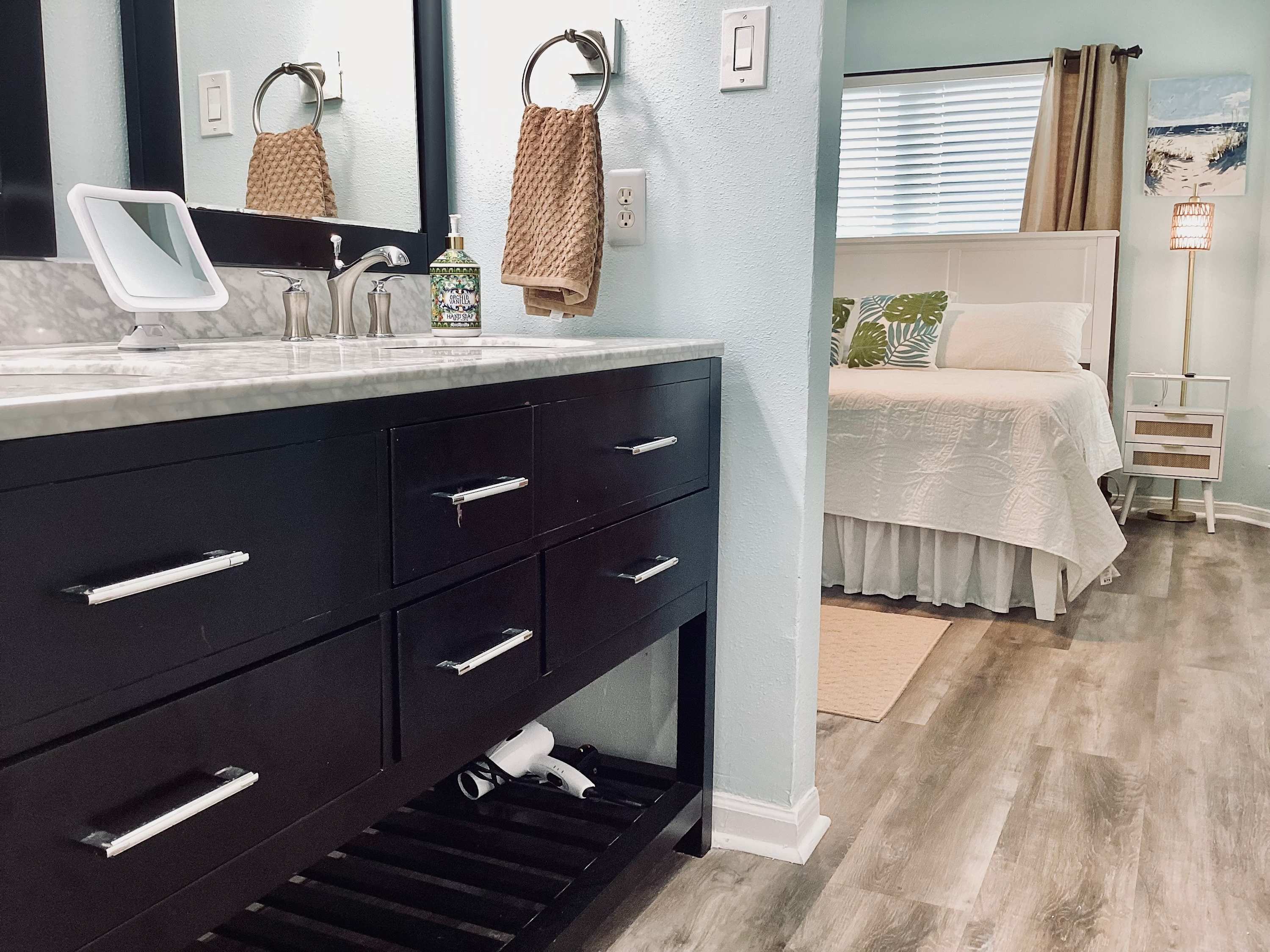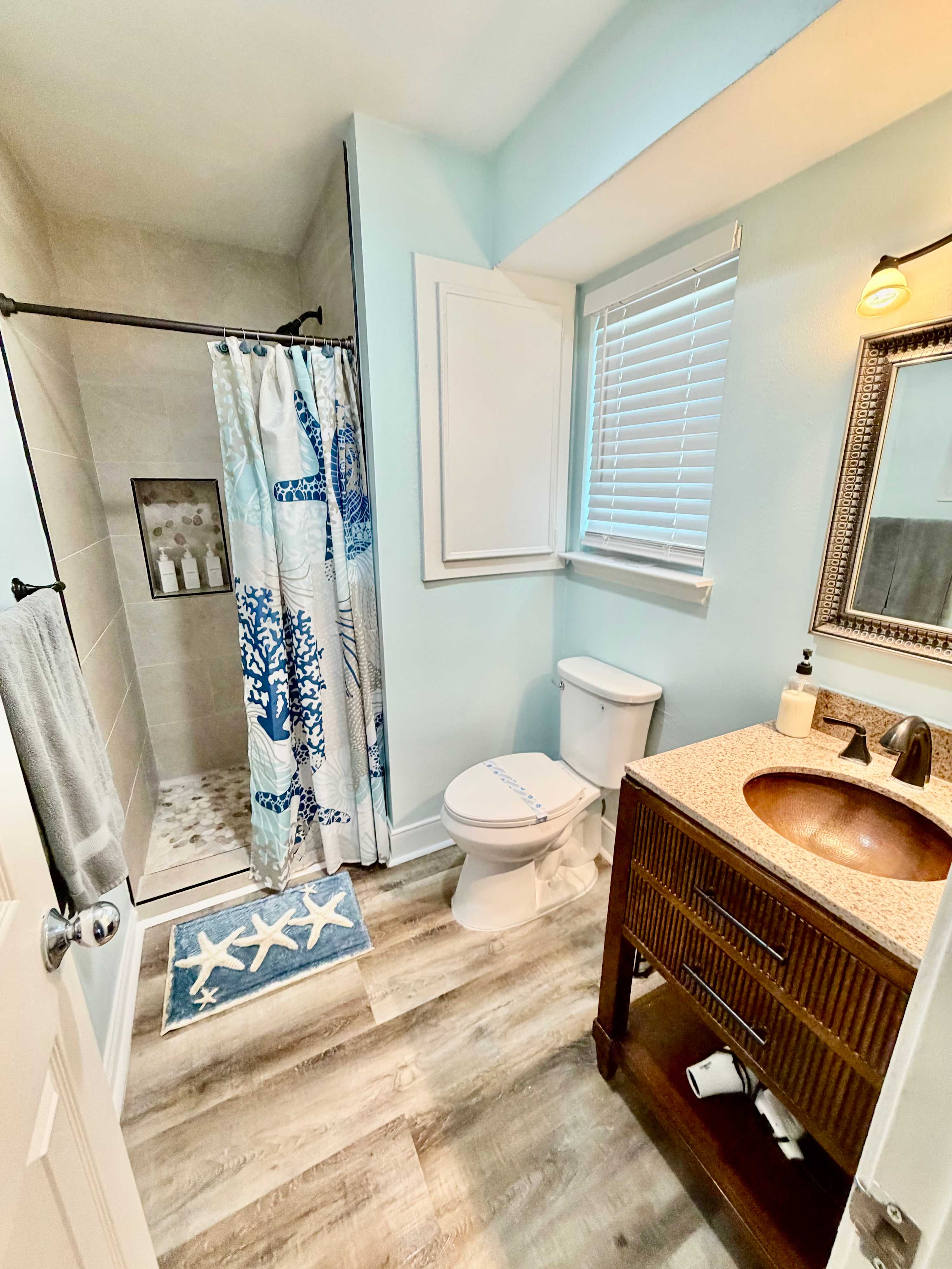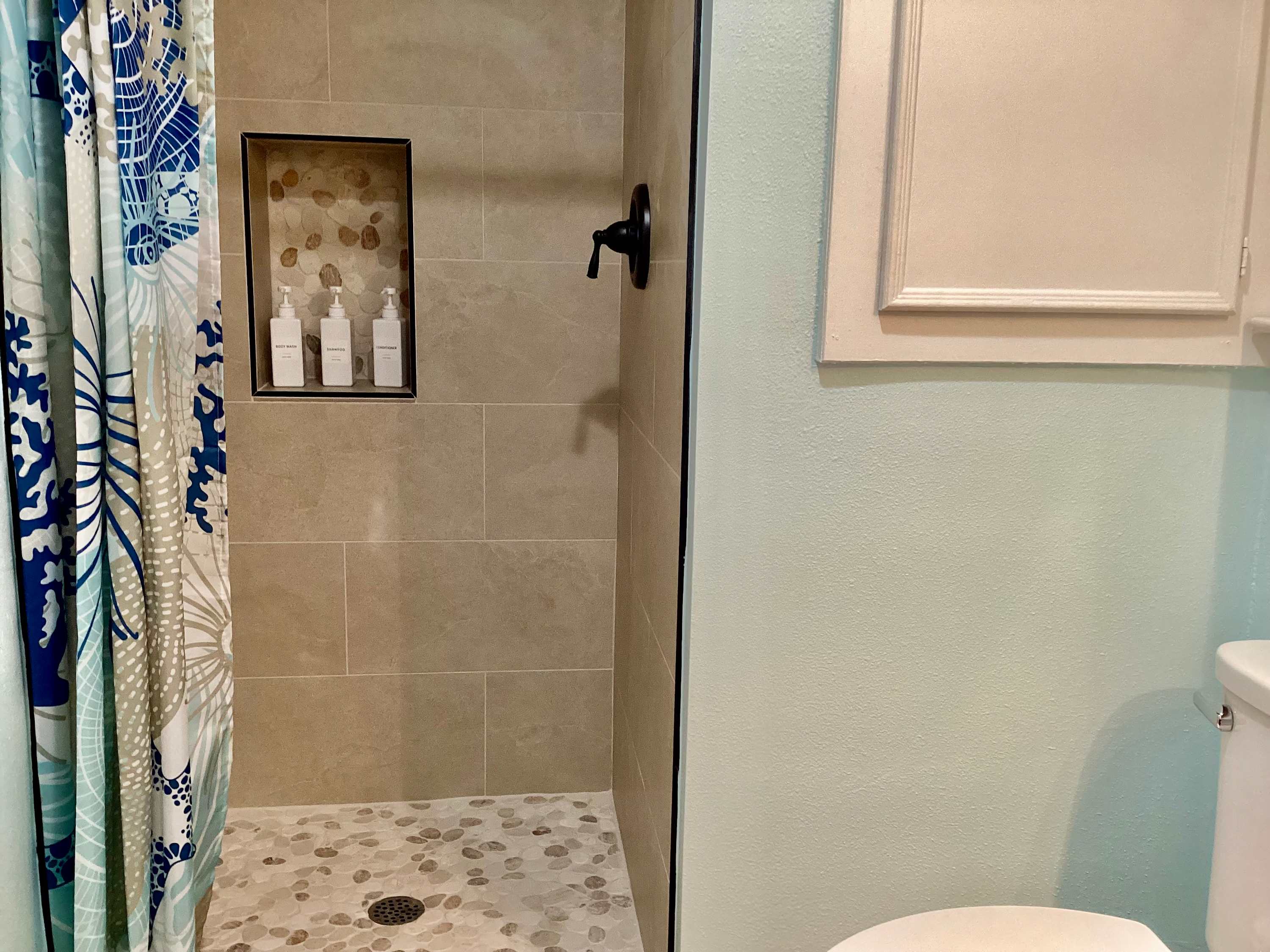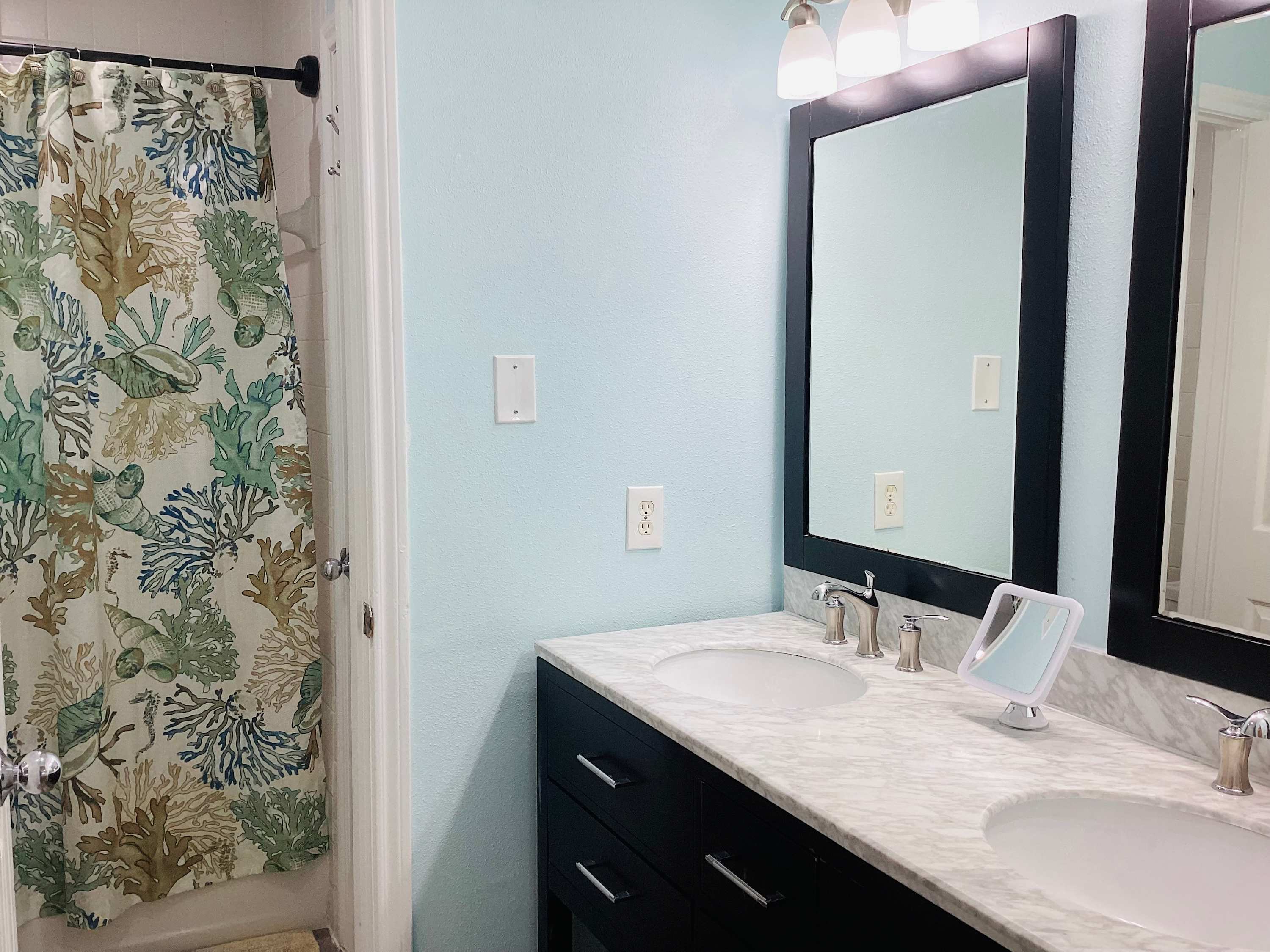 This home also includes 2 full guest bathrooms, both with a single vanity and a walk-in shower.