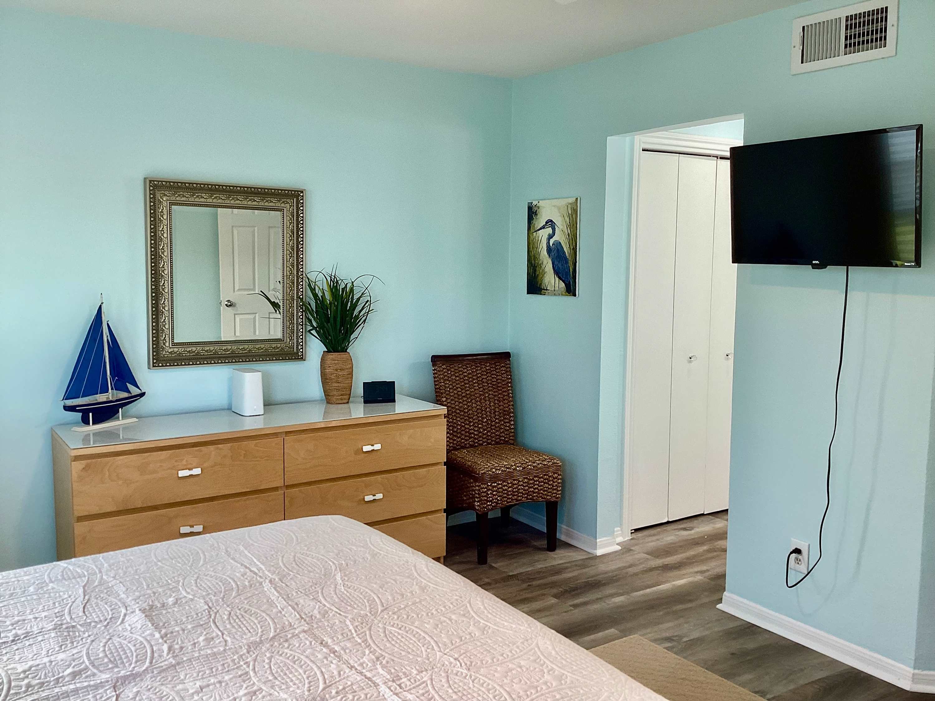 Bedroom #2 includes a queen size bed, a smart TV, and balcony access.