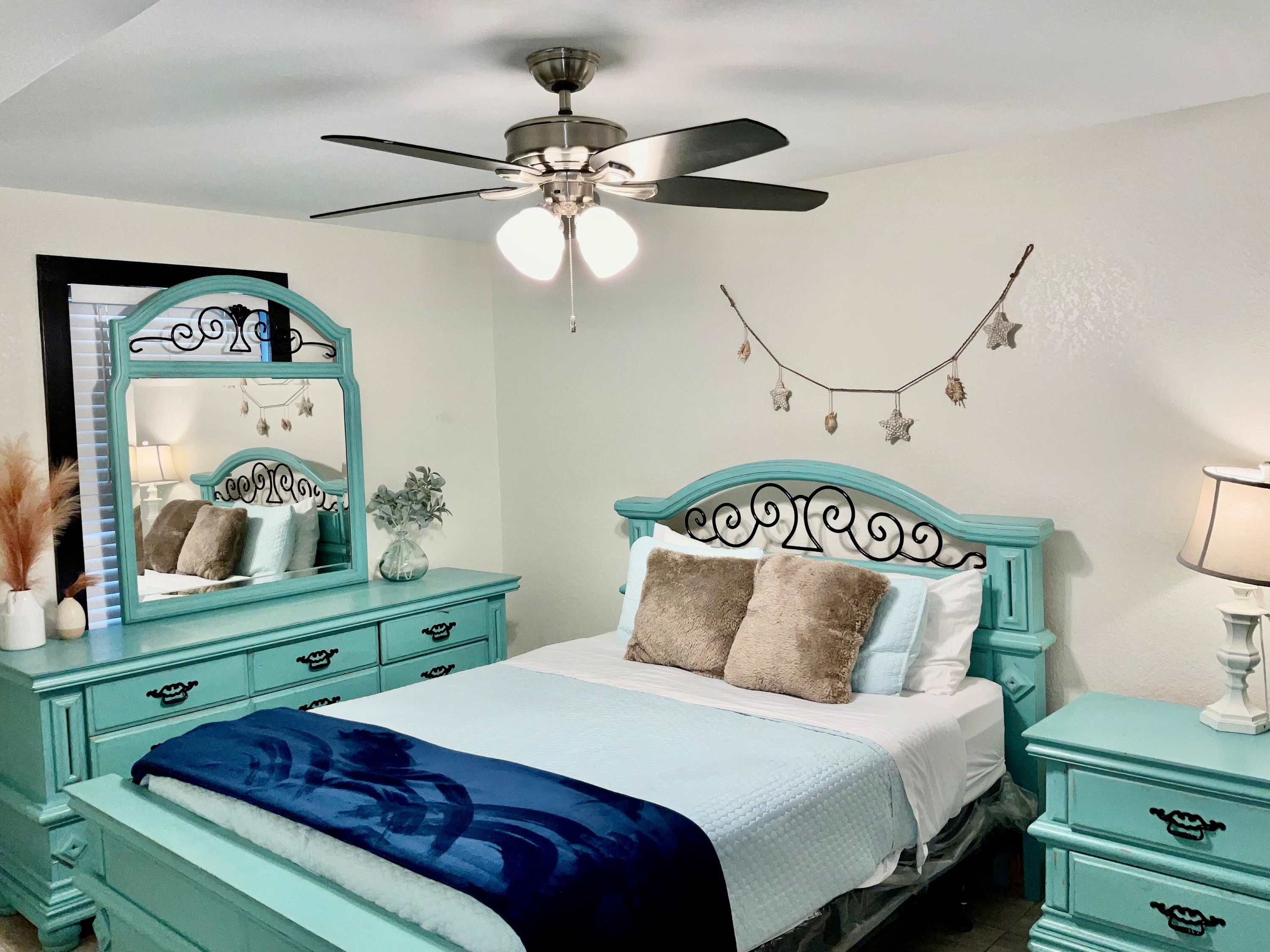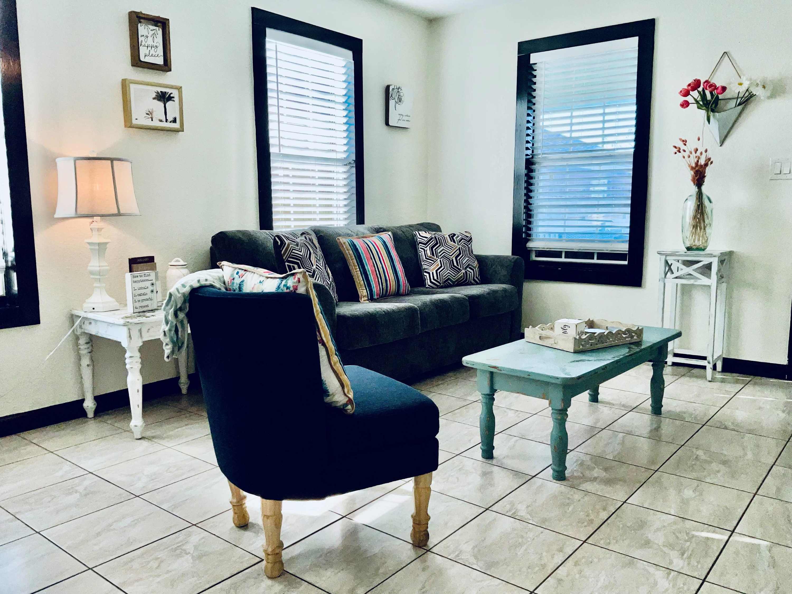 Outside, your private, fully fenced yard becomes an extension of your living space. Enjoy morning coffee or evening cocktails on the covered patio with a dining table perfect for al fresco meals. Or head to the second deck area, furnished for relaxing and soaking up the coastal breeze. With its chic décor, thoughtful outdoor spaces, and unbeatable location, this adorable two-bedroom retreat is the ideal home base for your Galveston getaway.