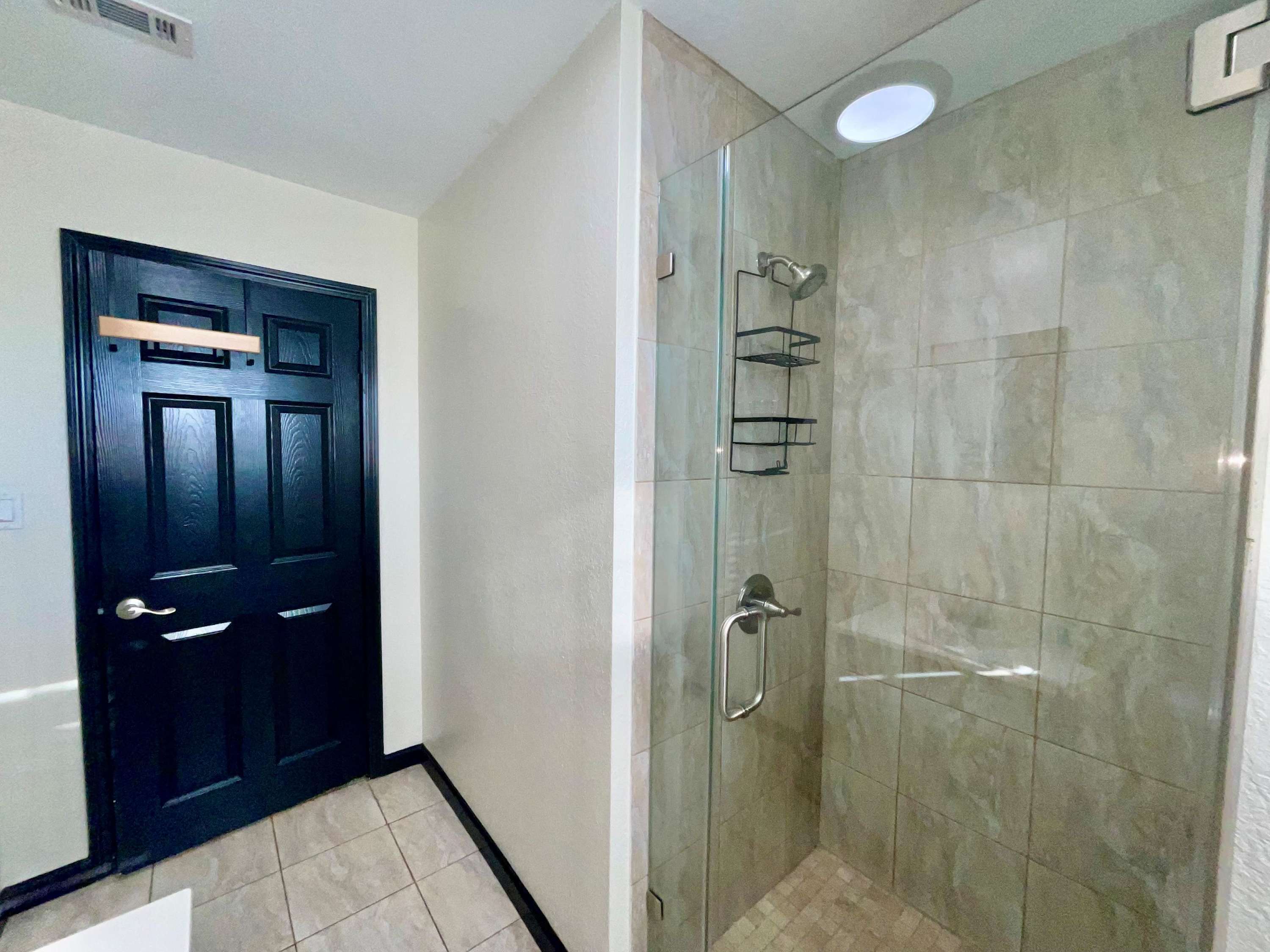 This home also includes a full guest bathroom with a single vanity and a walk-in shower.