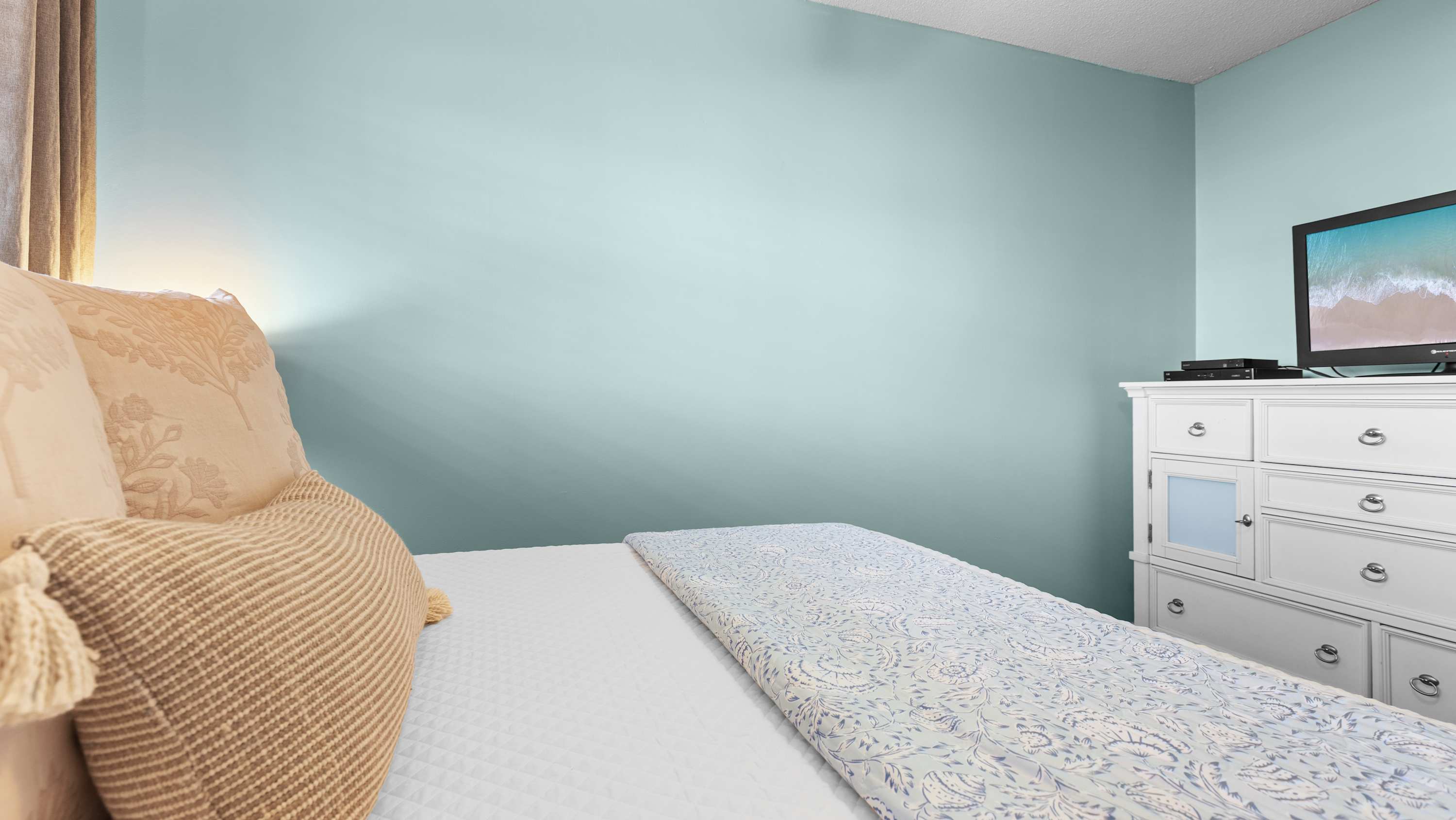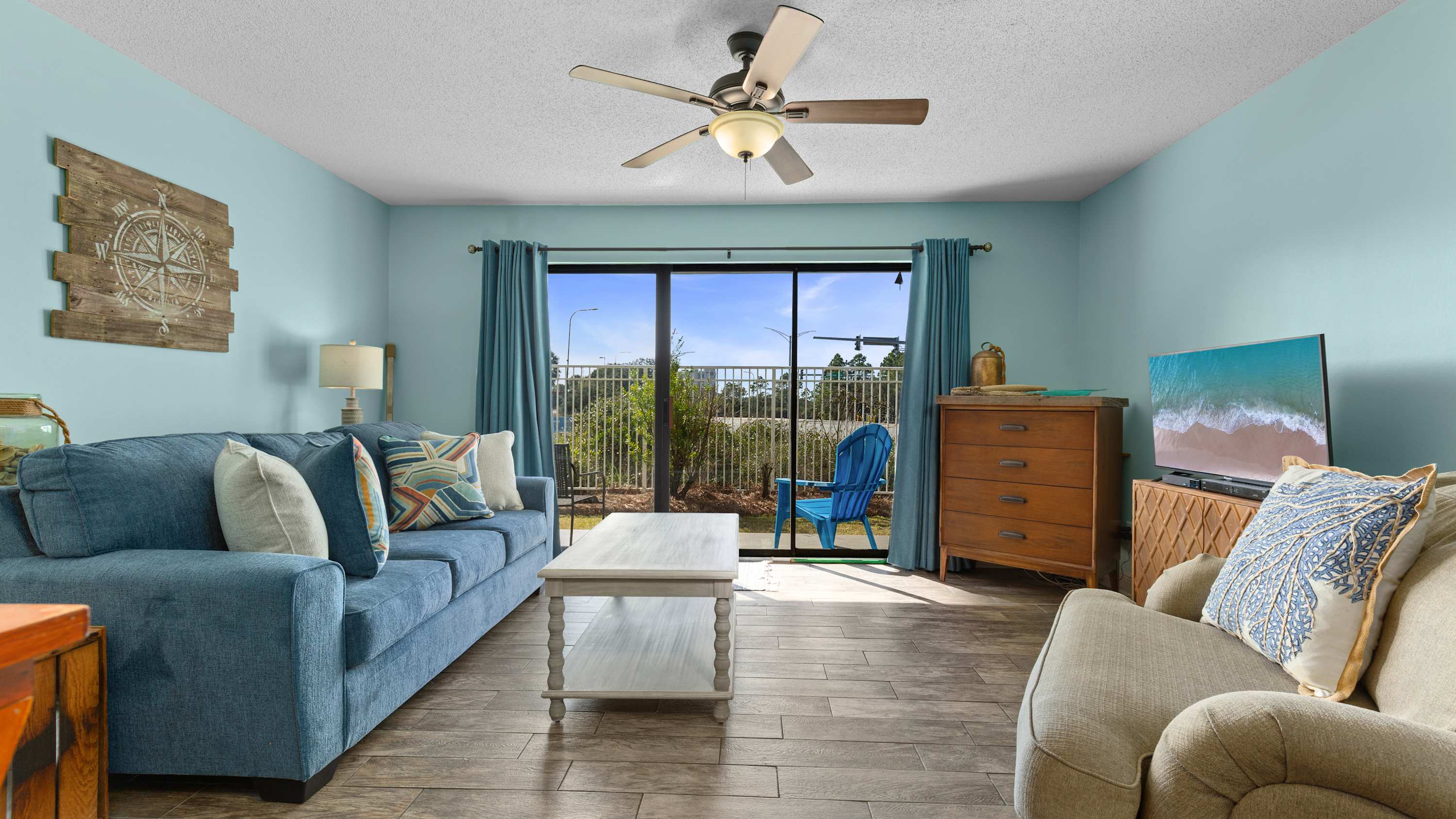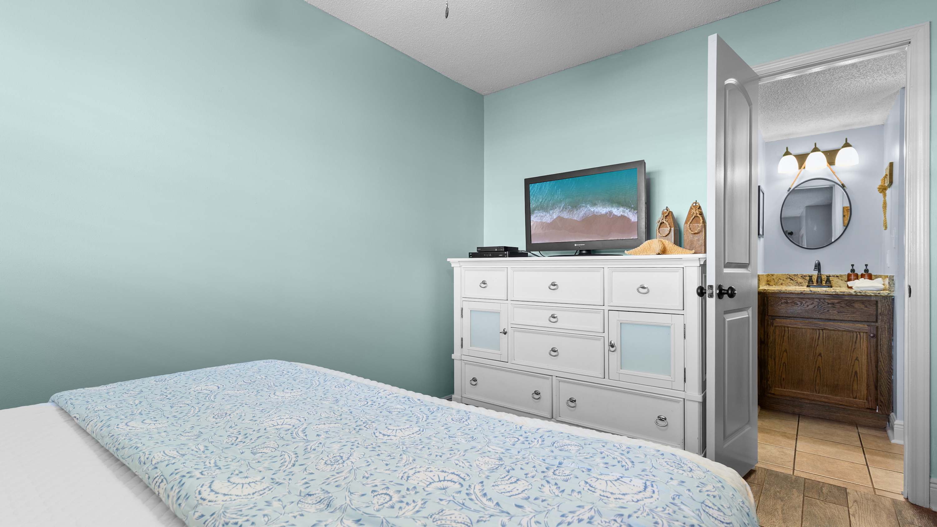 Just off the living room, you’ve got a spacious balcony that overlooks a community green space and gives you a peep at the nearby coastline. Settle in with a book, crack open a drink, or take a quick snooze before you hit the beach again!