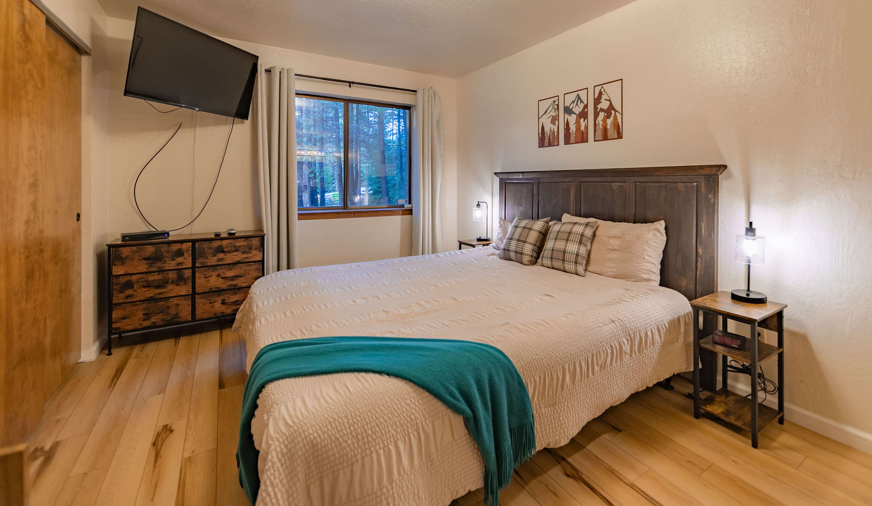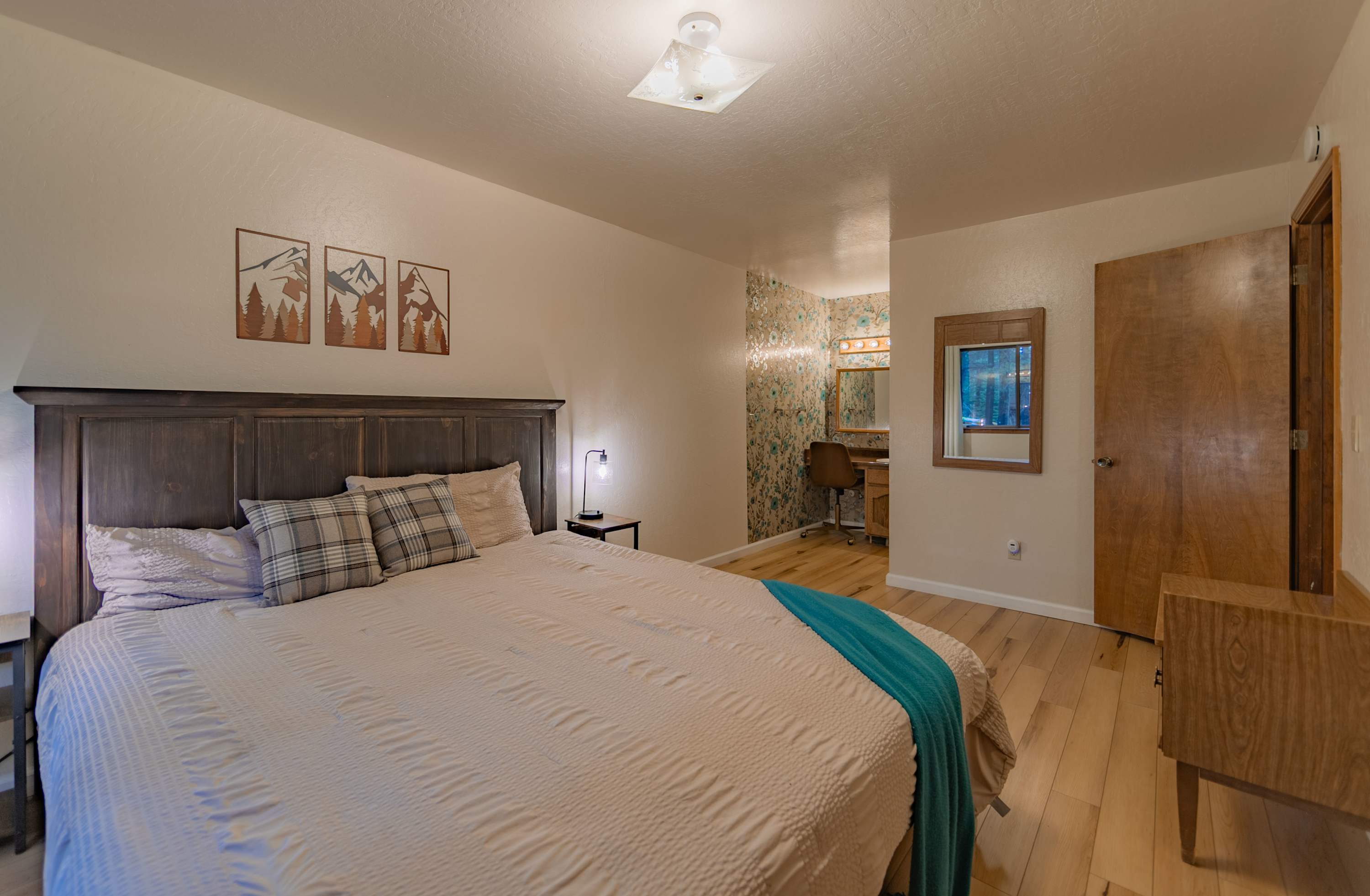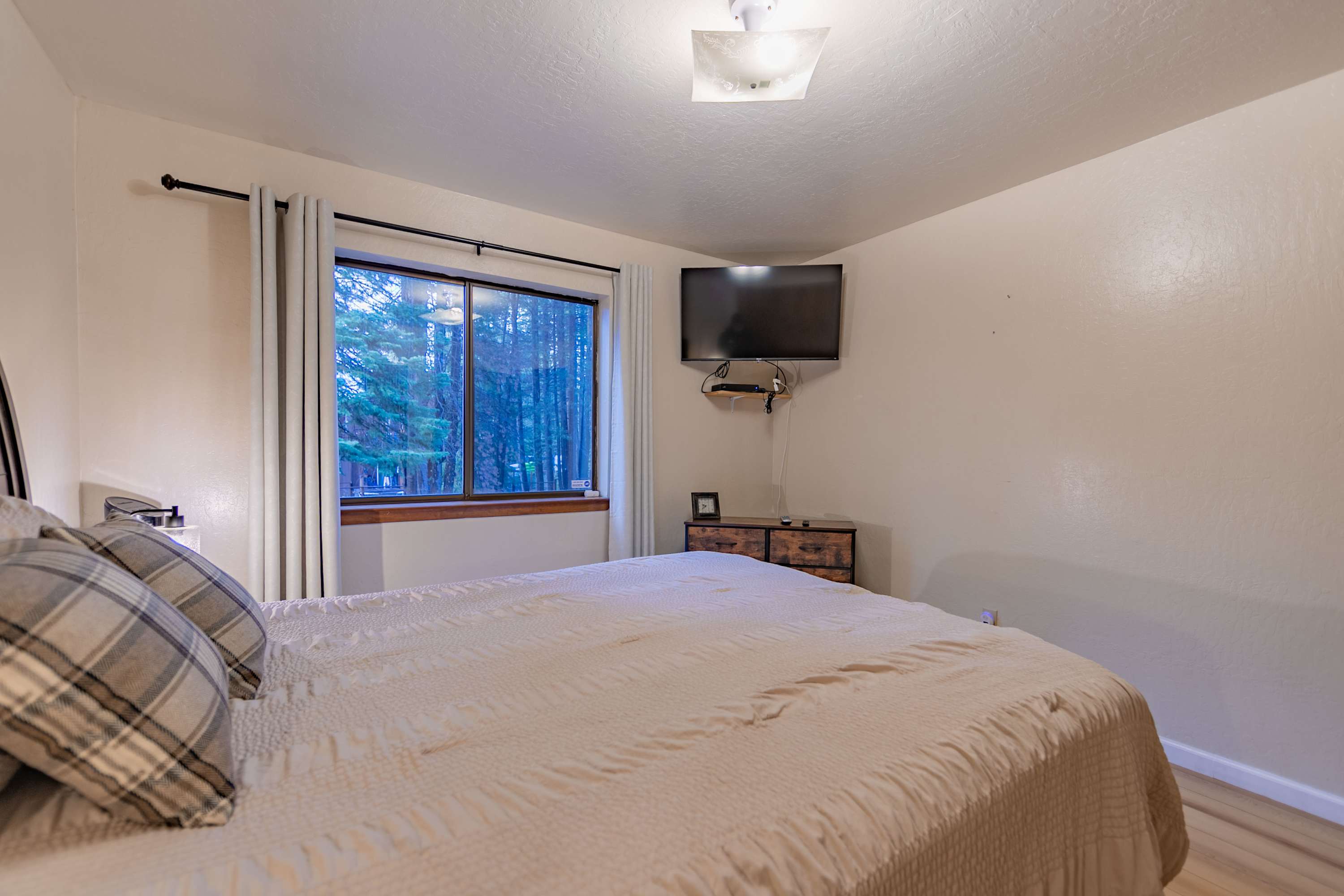 Sharing meals comes naturally at the dining table for six, where you can enjoy great food, conversation, and views of the forest surroundings. With its cozy atmosphere, classic Tahoe character, and thoughtful layout, this cabin-style retreat gives you all the comfort and charm you need for a memorable South Lake Tahoe getaway.