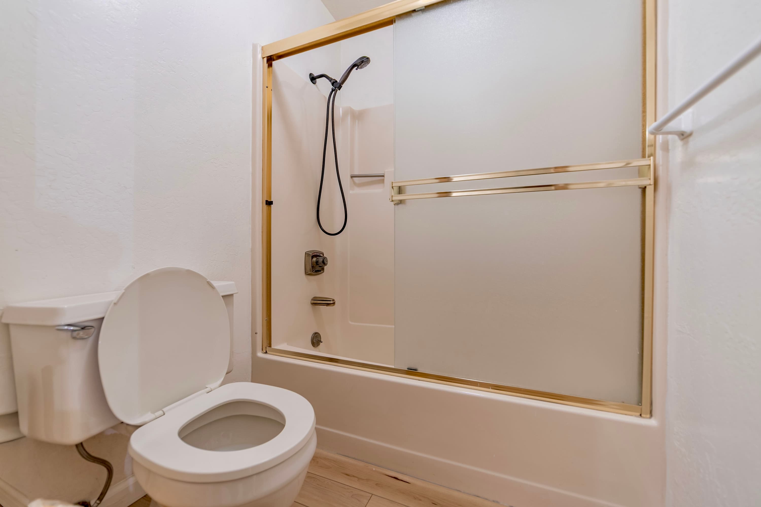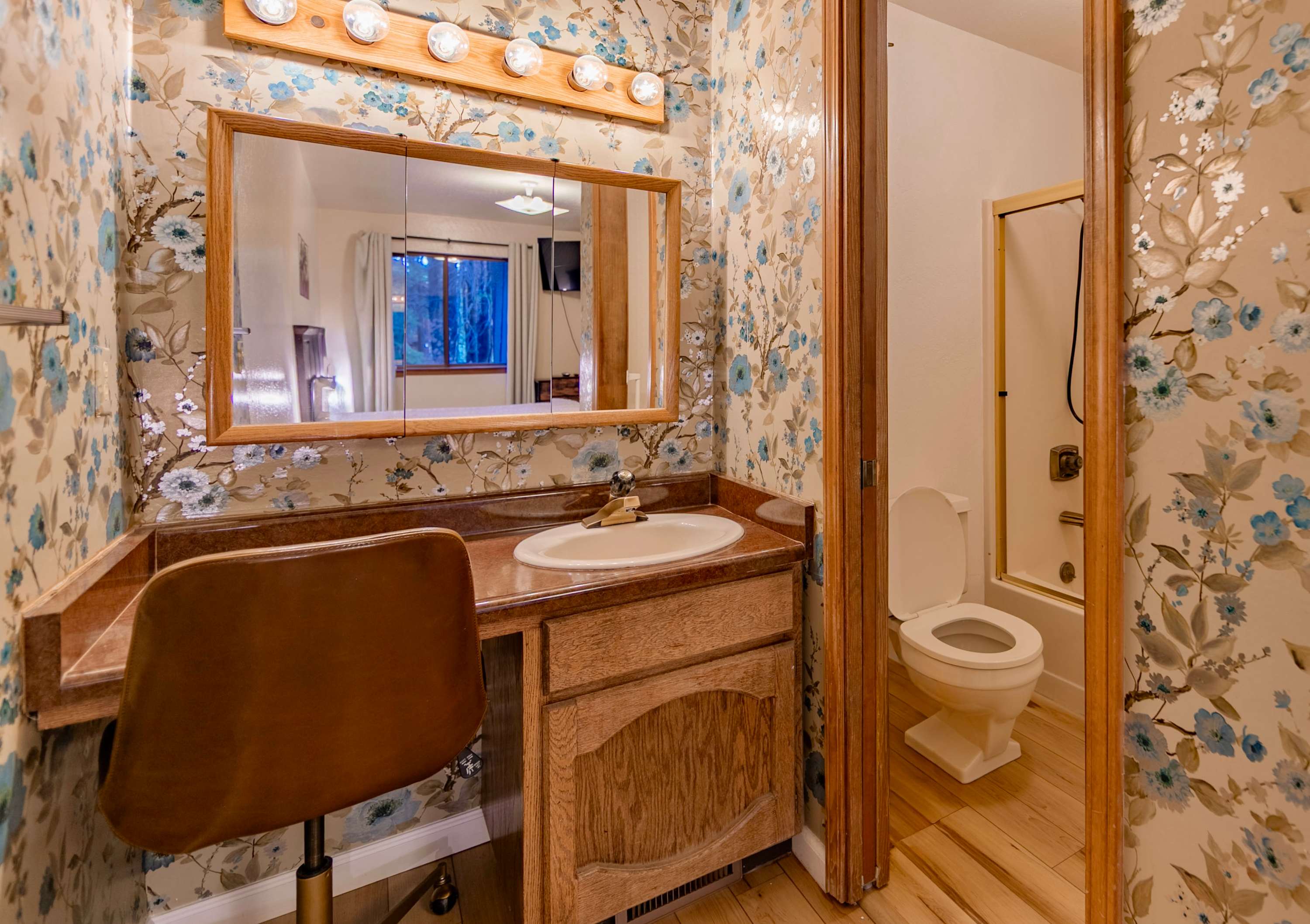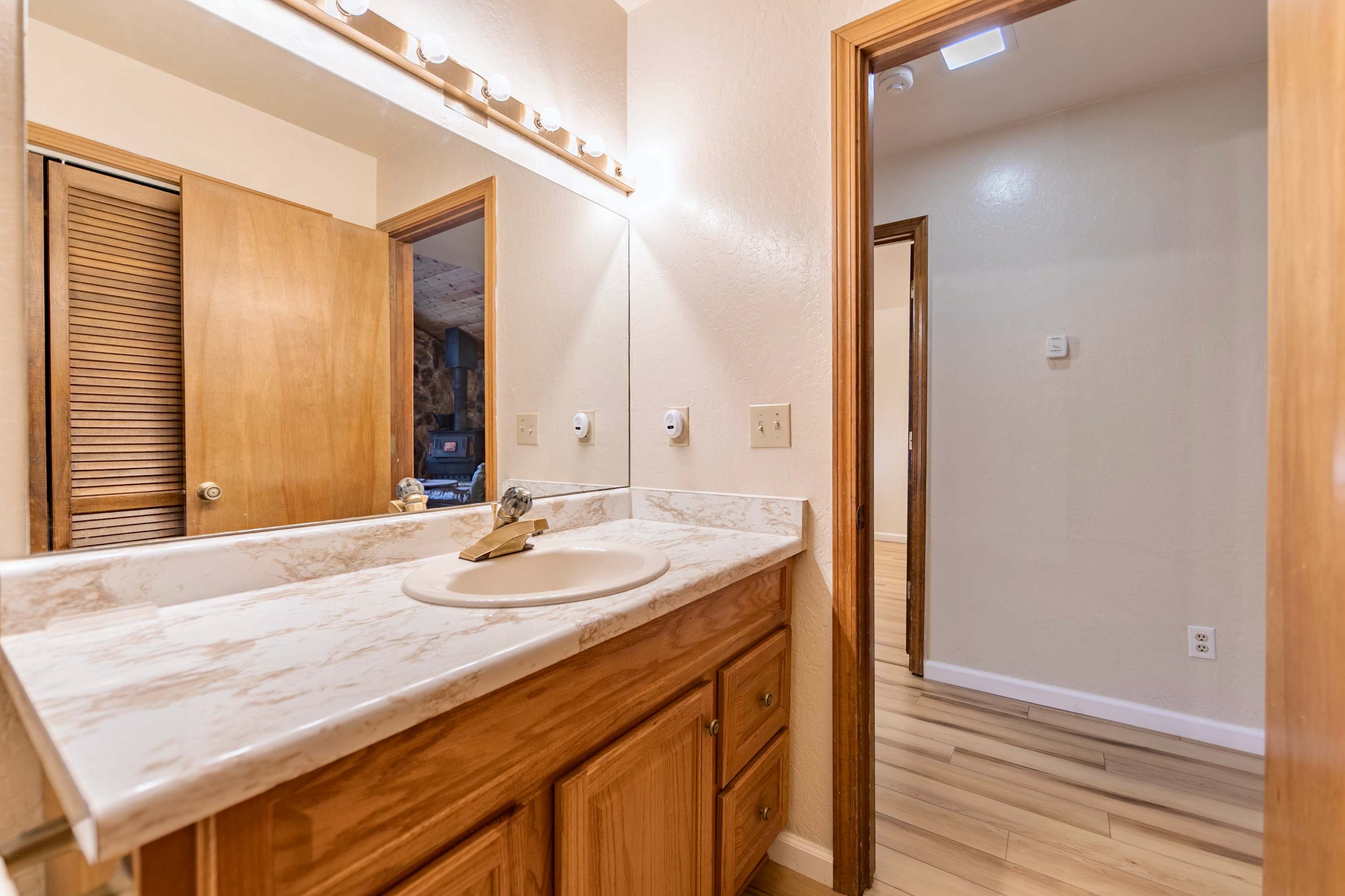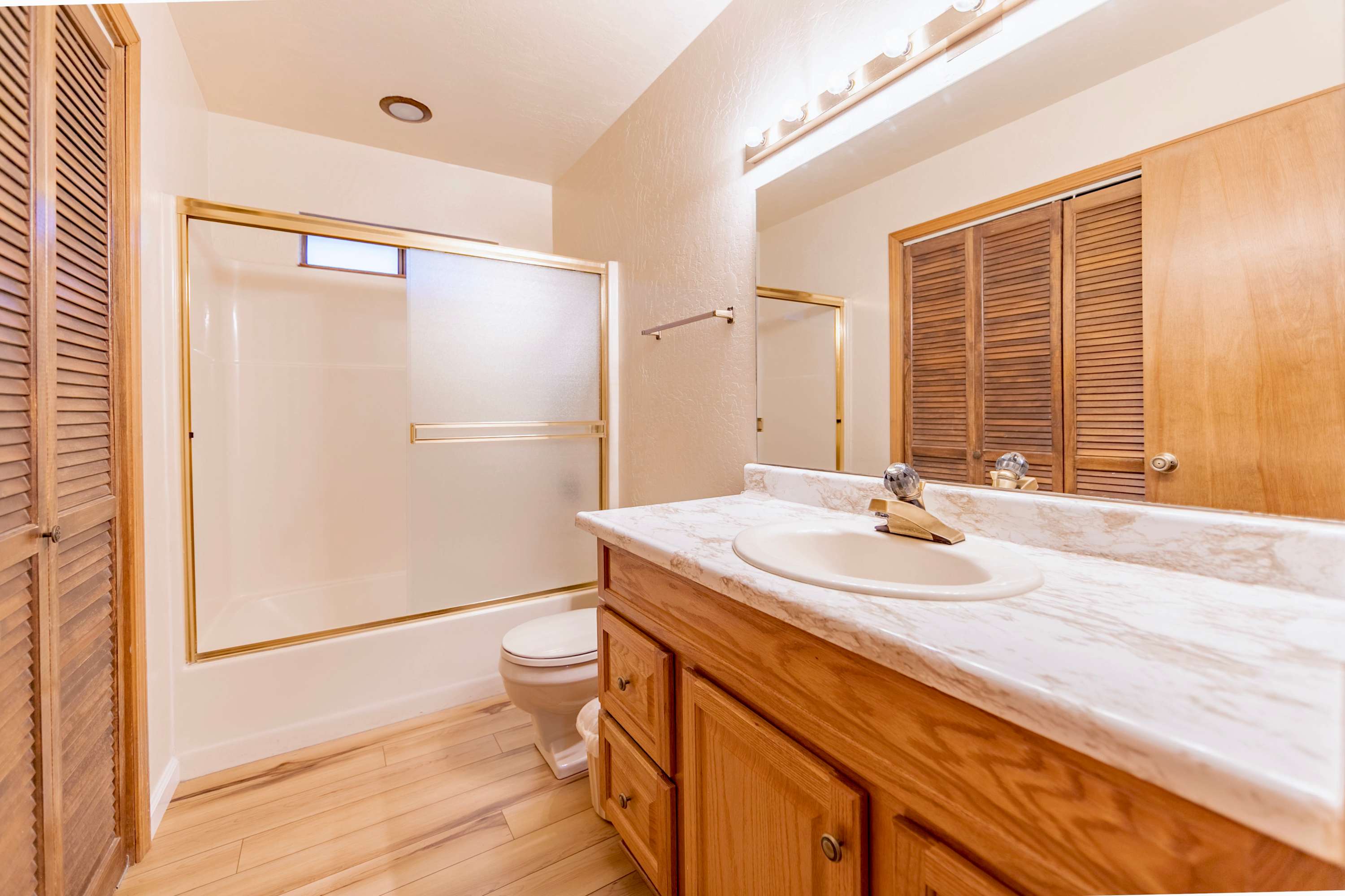 This home also includes a full guest bathroom with a single vanity and a shower/tub combo.