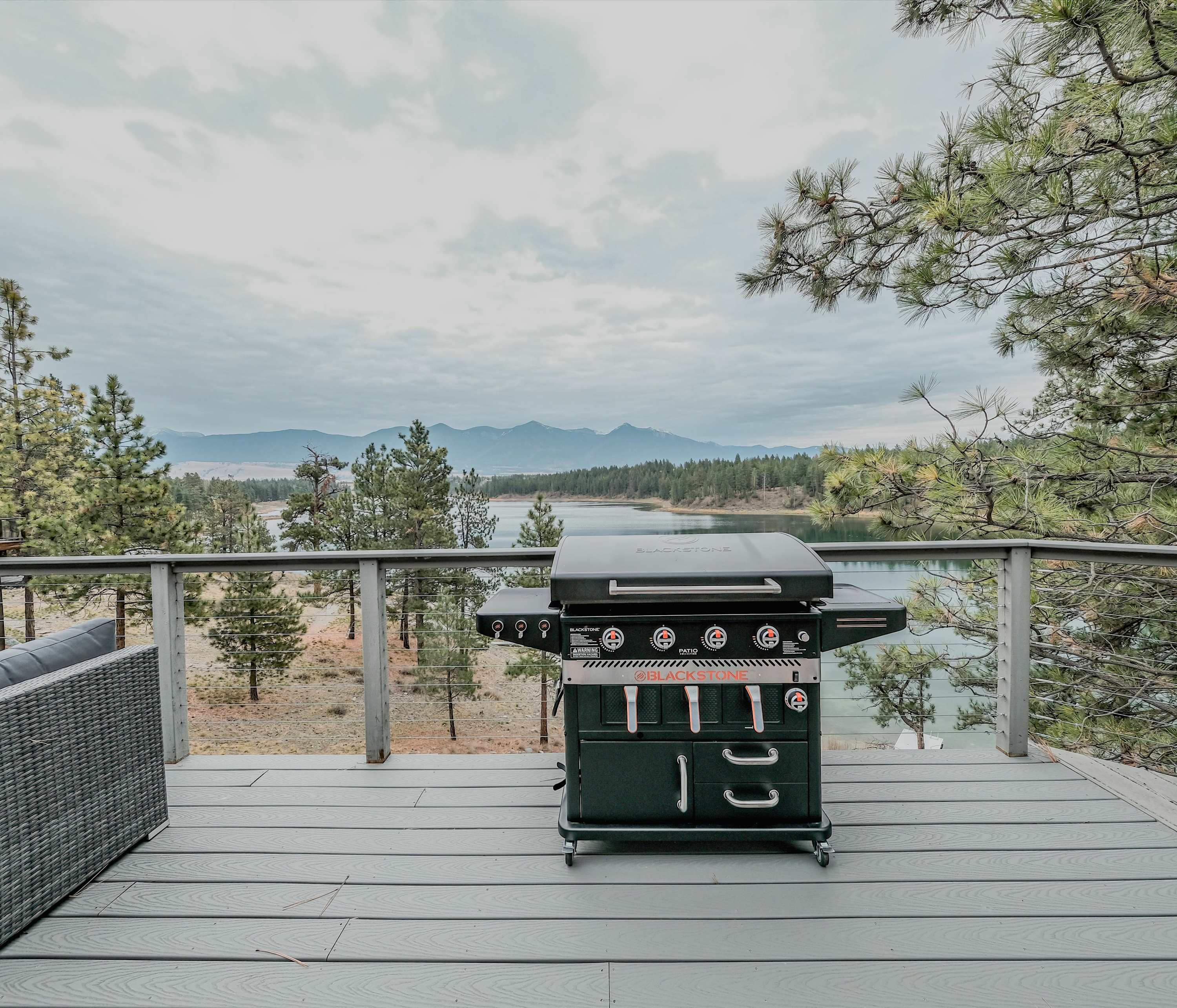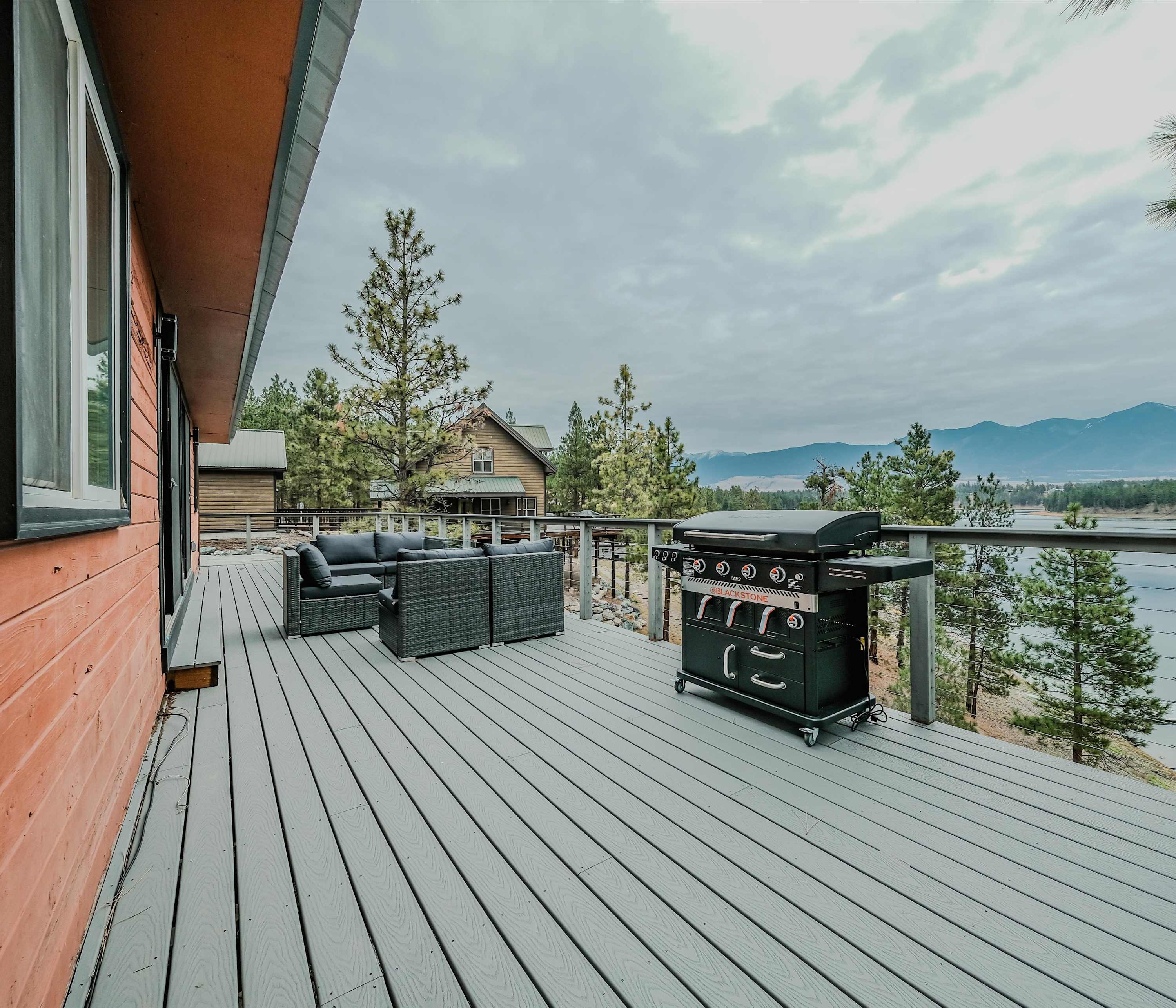 As you arrive, drop your bags inside and immediately head out to the deck. This will easily become your favorite gathering spot, featuring comfortable seating and panoramic views of the lake and mountains. Then wander down to the private dock to sneak a peek at your post for exceptional fishing or relishing tranquil moments on the water.
