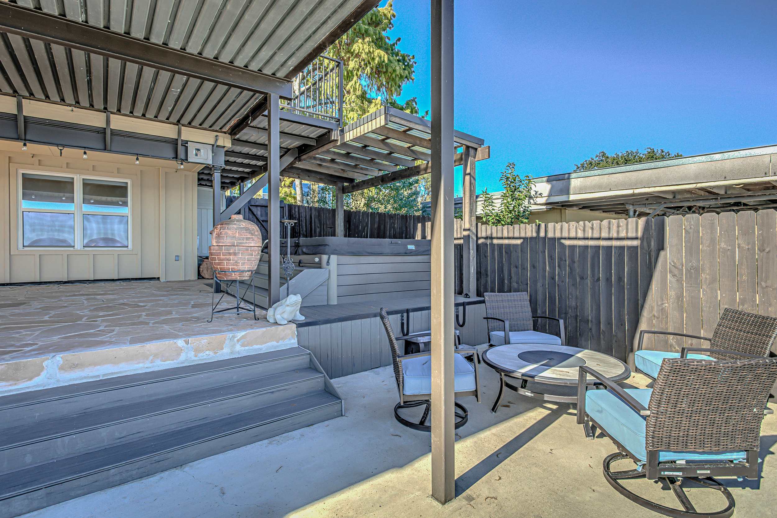 • Fire pit, chiminea, and outdoor seating for relaxed hangouts