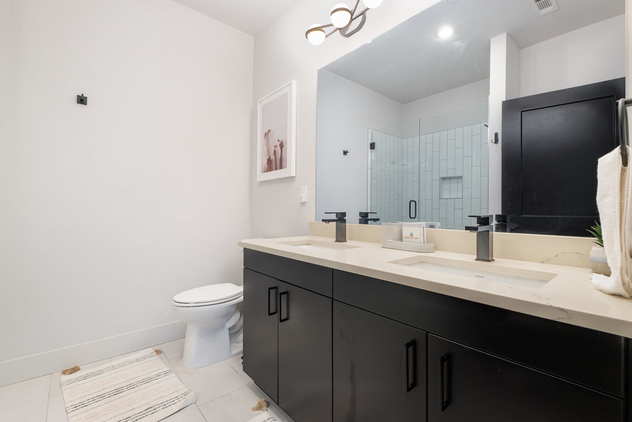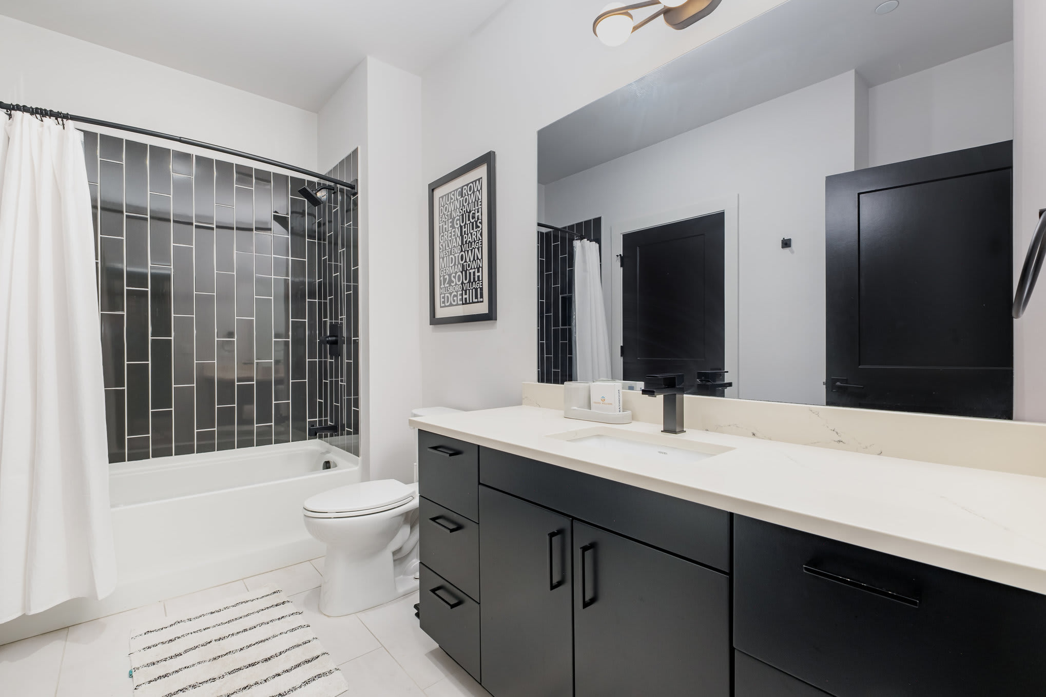 • Bathroom 2 (hall/guest): Single vanity with ample counter space and a shower/tub combo