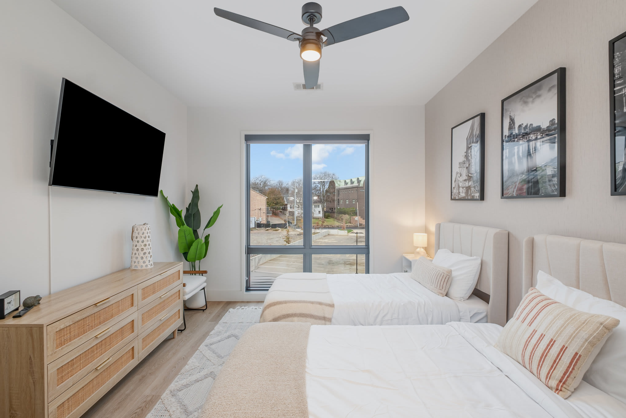 • Bedroom 2: Two twin beds and smart TV