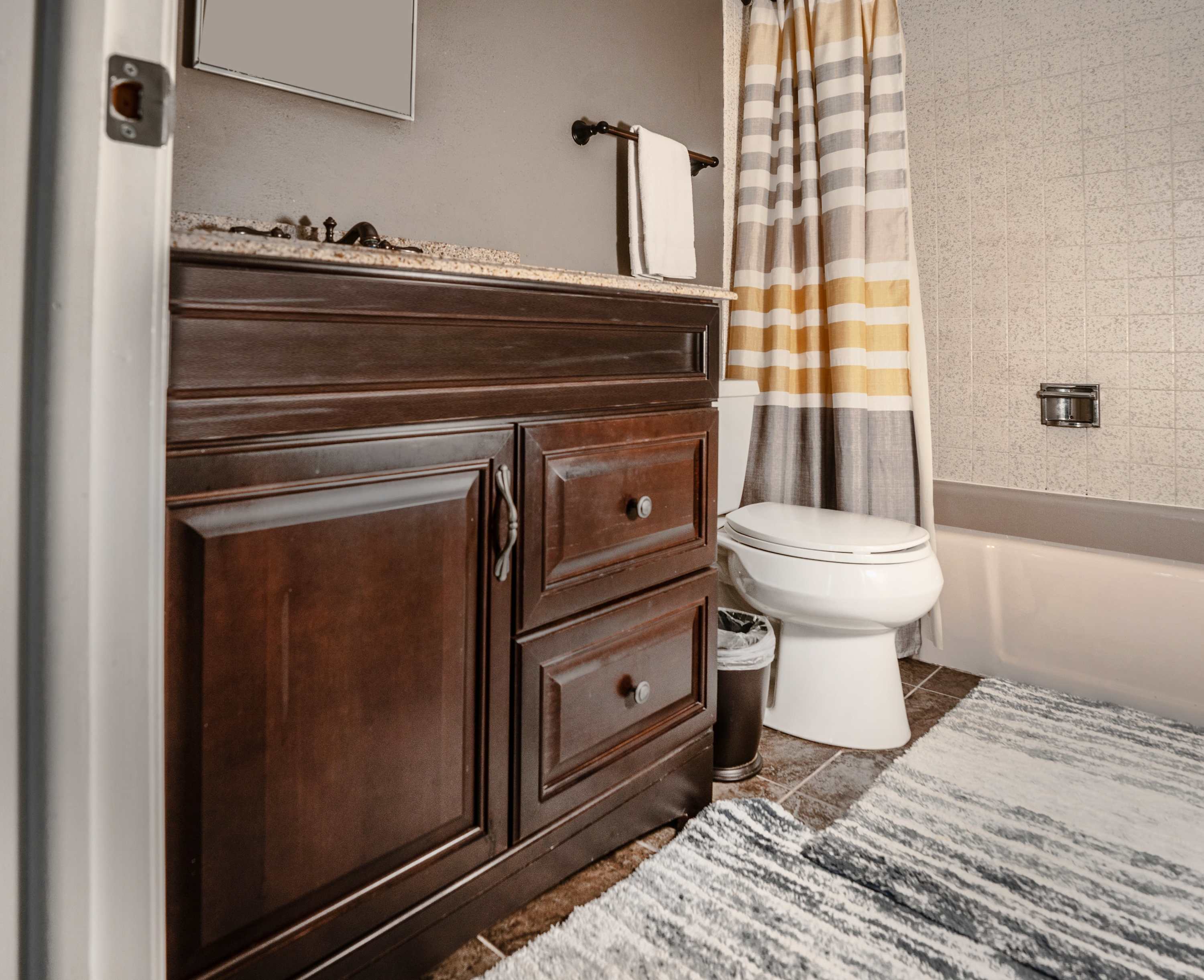 This home also includes a full guest bathroom with a single vanity and a shower/tub combo.