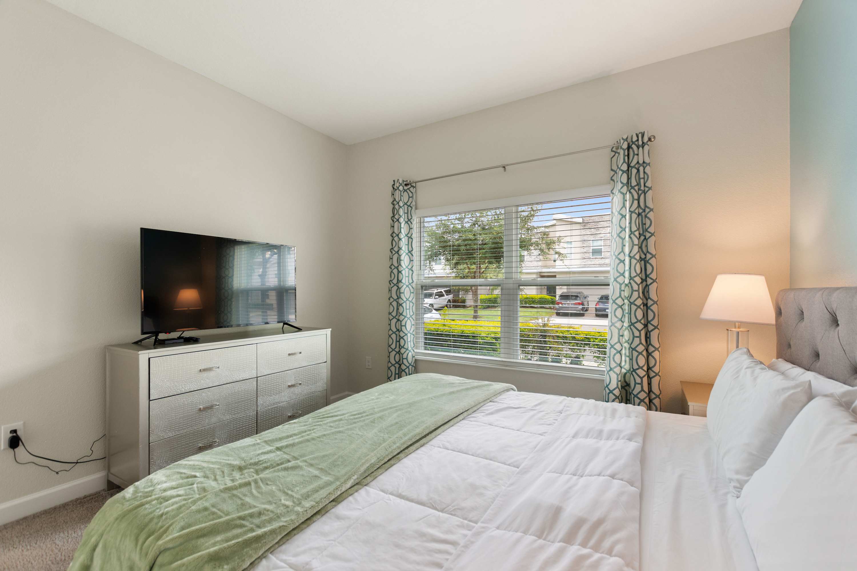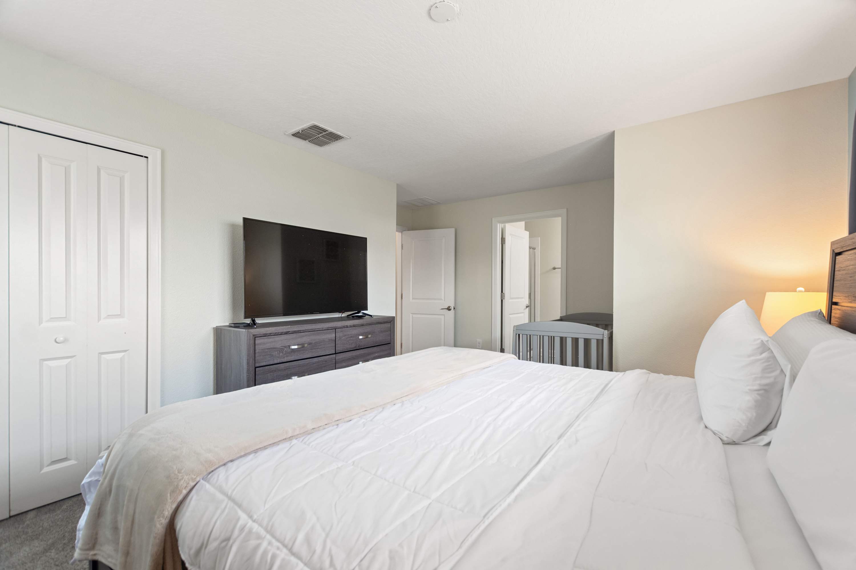 Bedroom #2 includes a king size bed and a smart TV also equipped with cable.