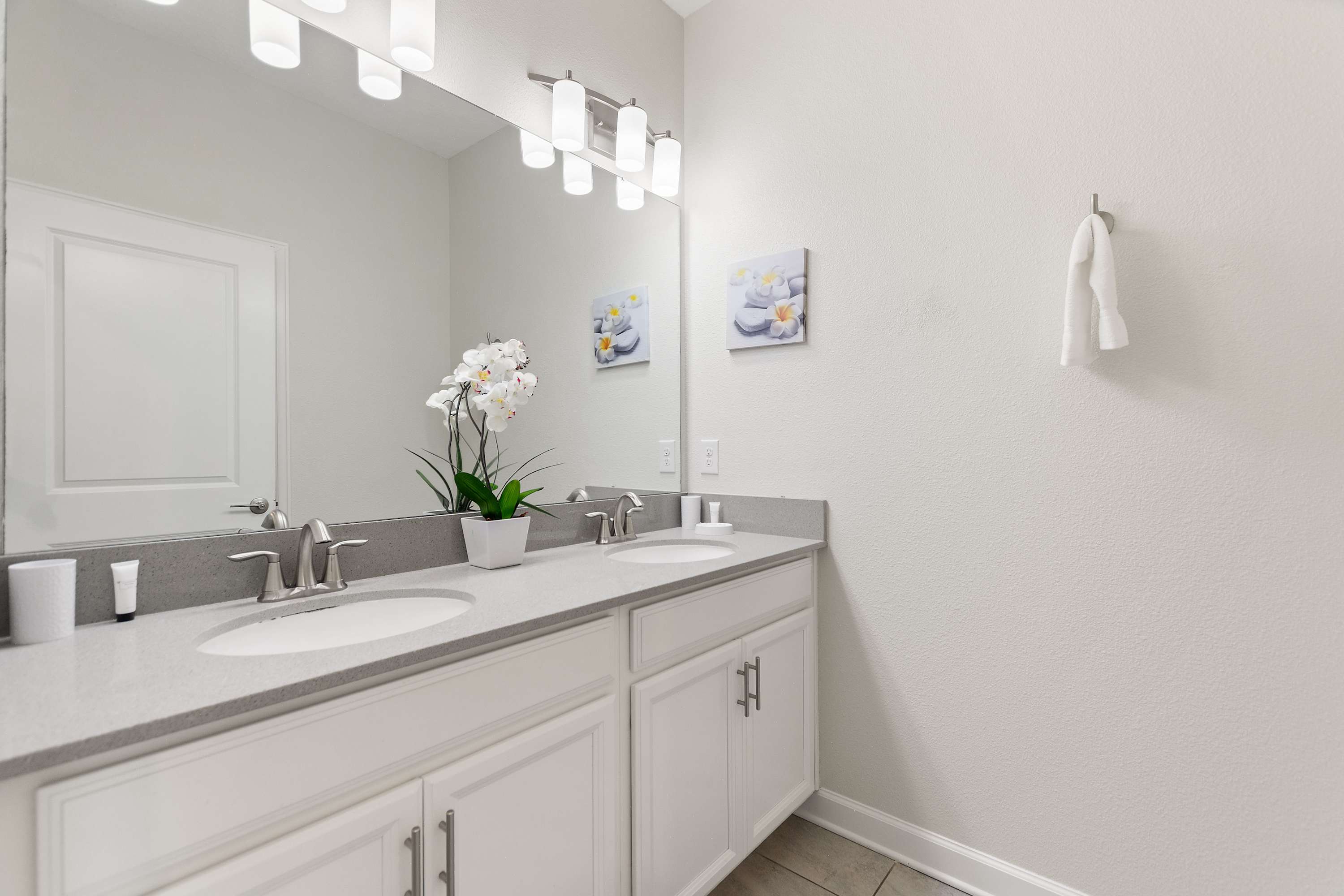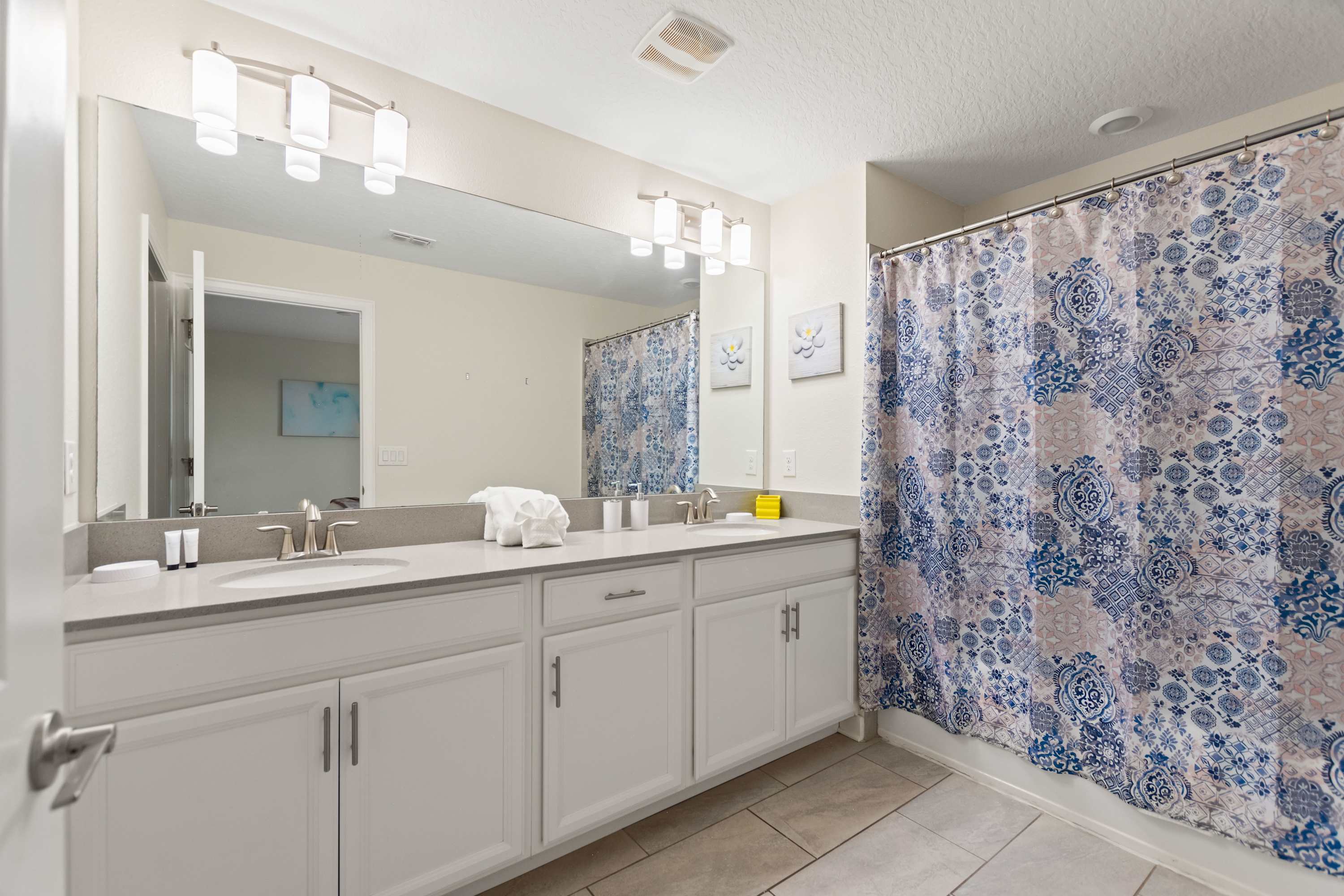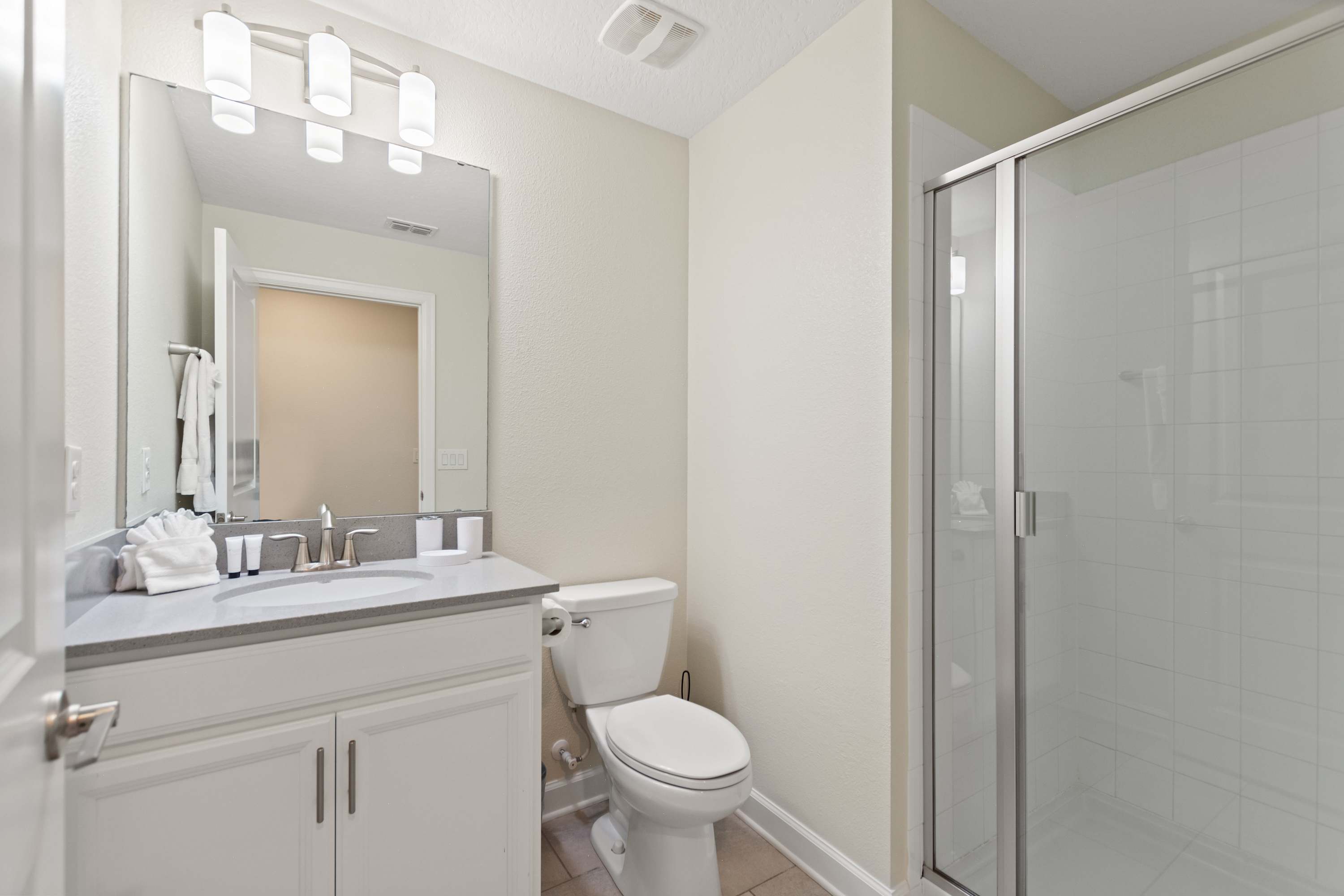 This home also includes 2 additional full guest bathrooms, one with a dual vanity and a walk-in shower, and one with a single vanity and a walk-in shower.