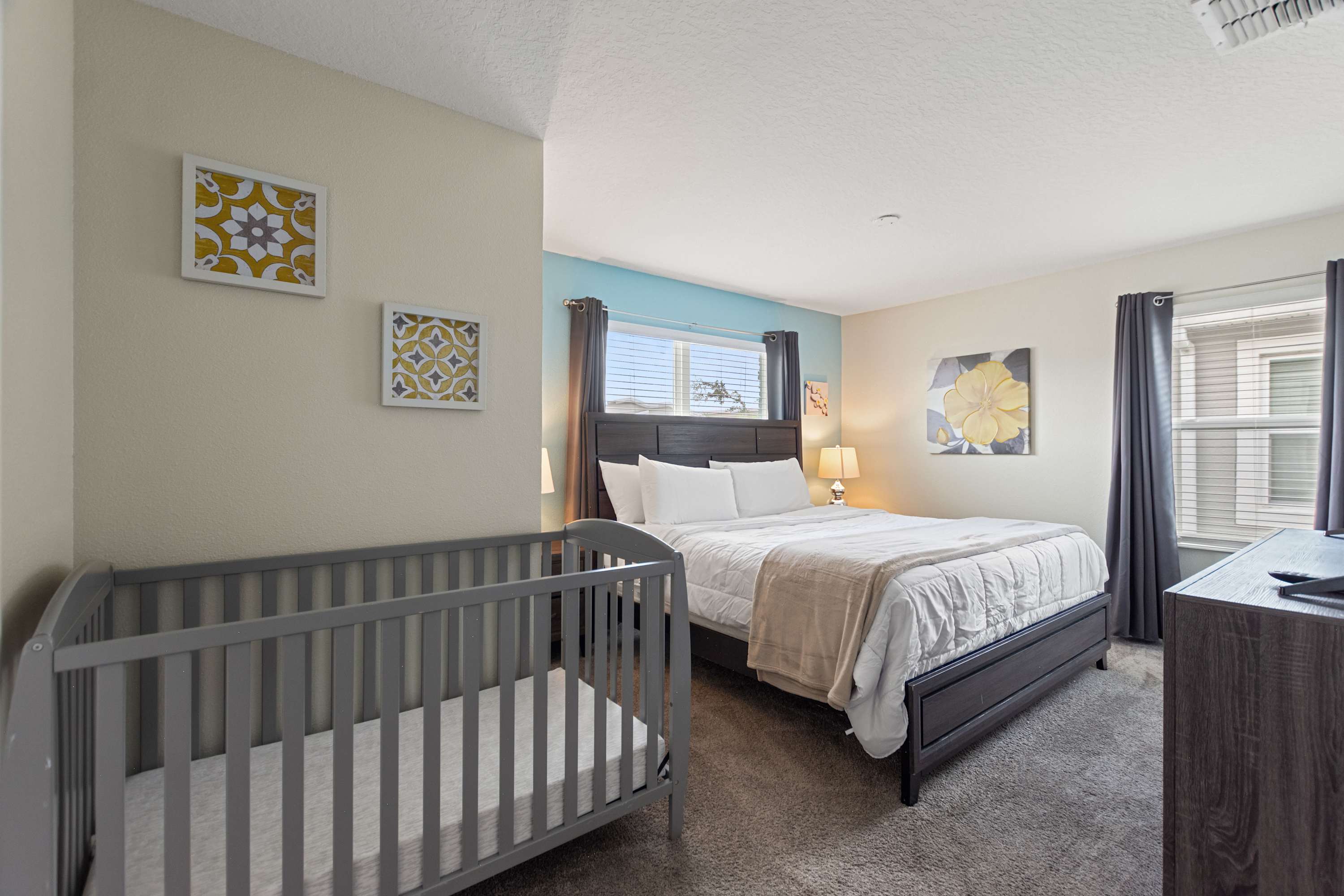 • Children’s dinnerware and crib provided.