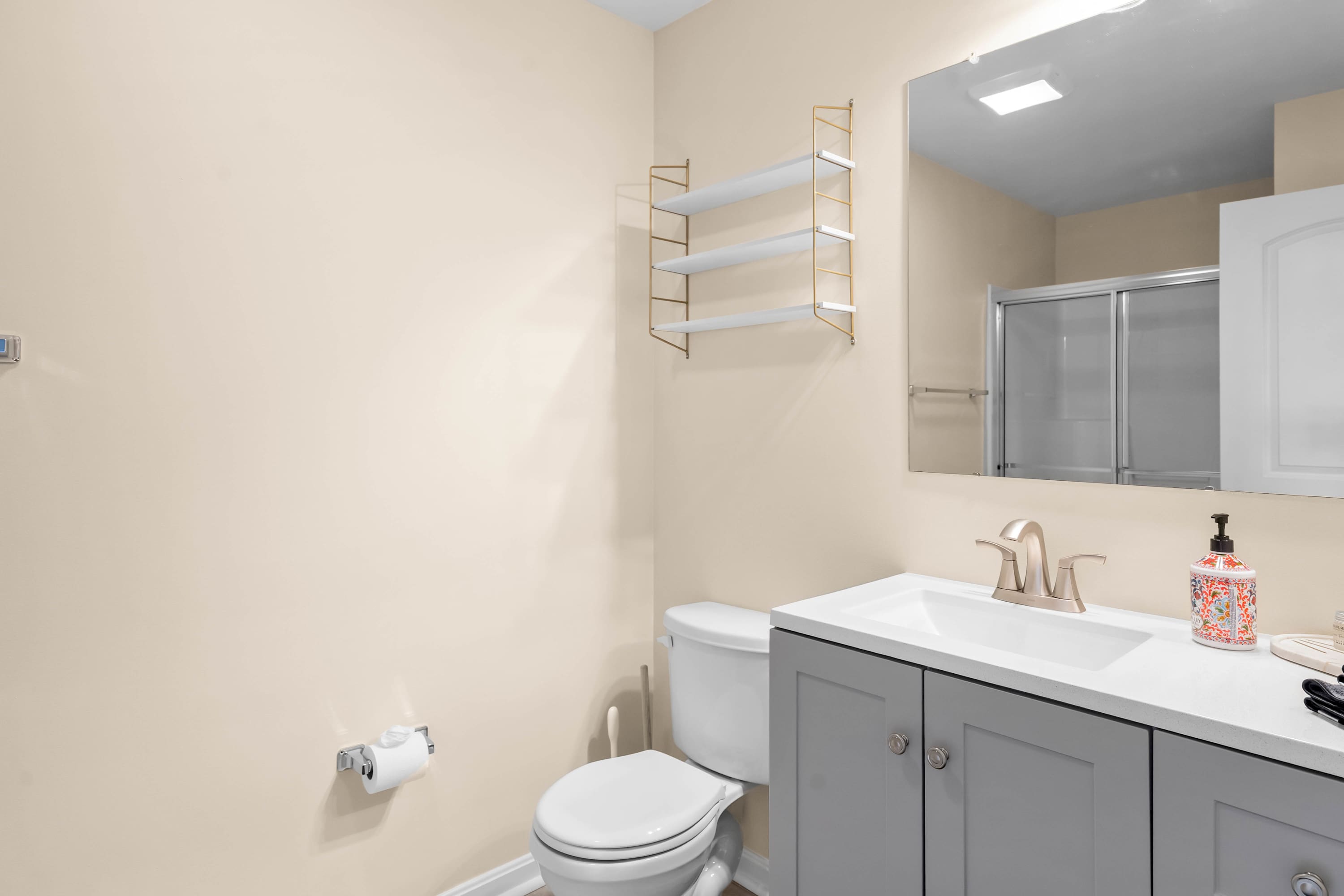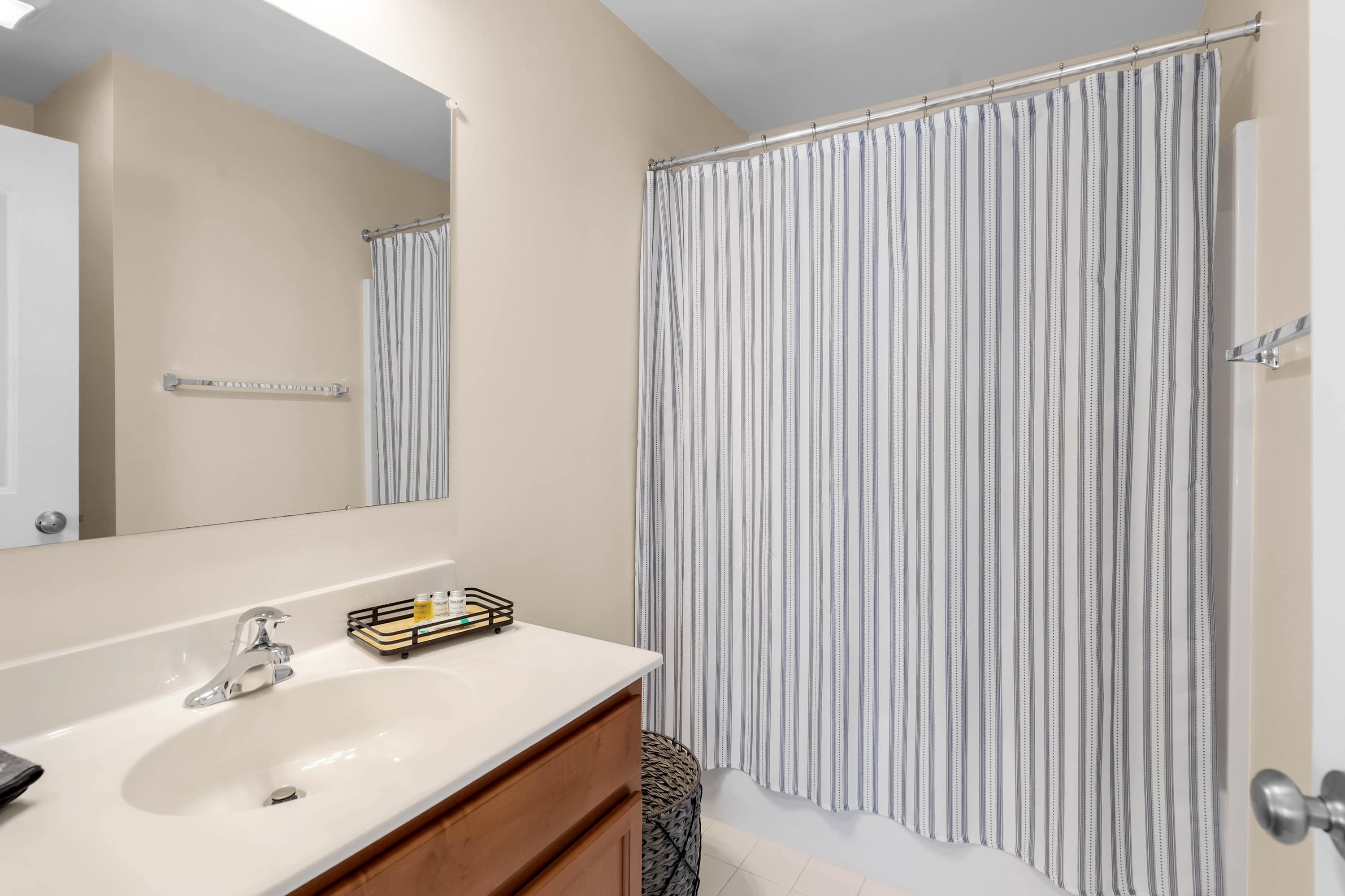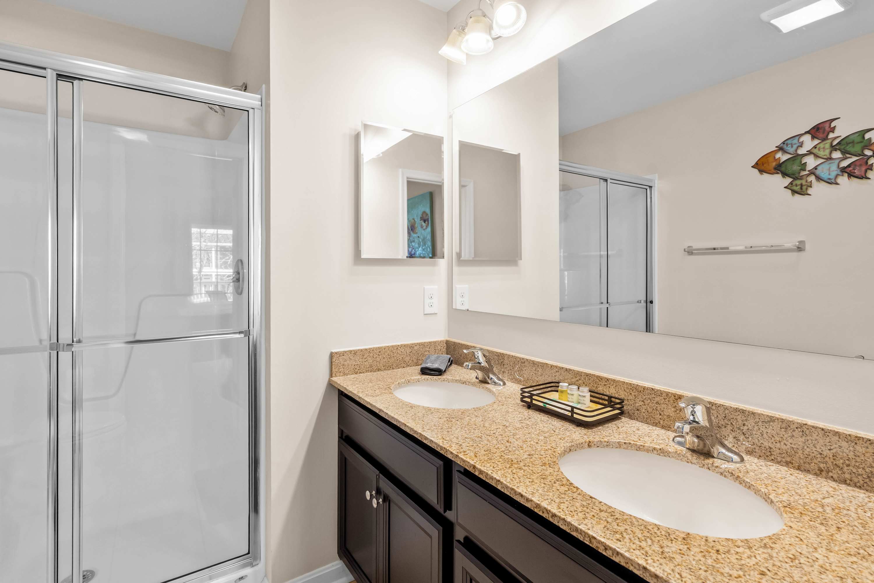 Bedroom #3 includes 2 queen size beds and an ensuite bathroom with a single vanity and a shower/tub combo.
